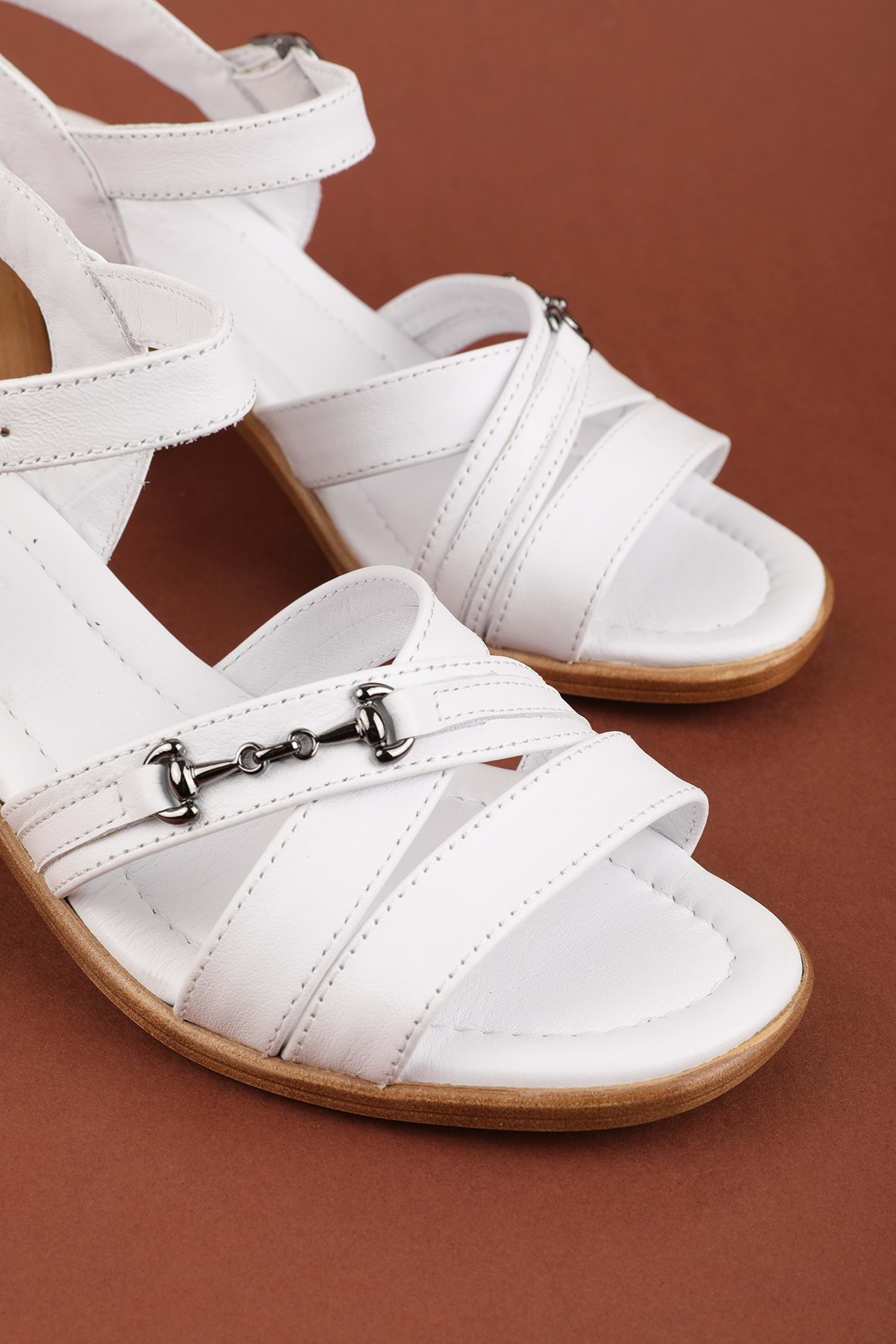 Gondol Hakiki Deri Topuklu Klasik Günlük Sandalet ez.2220bc - Beyaz - 38