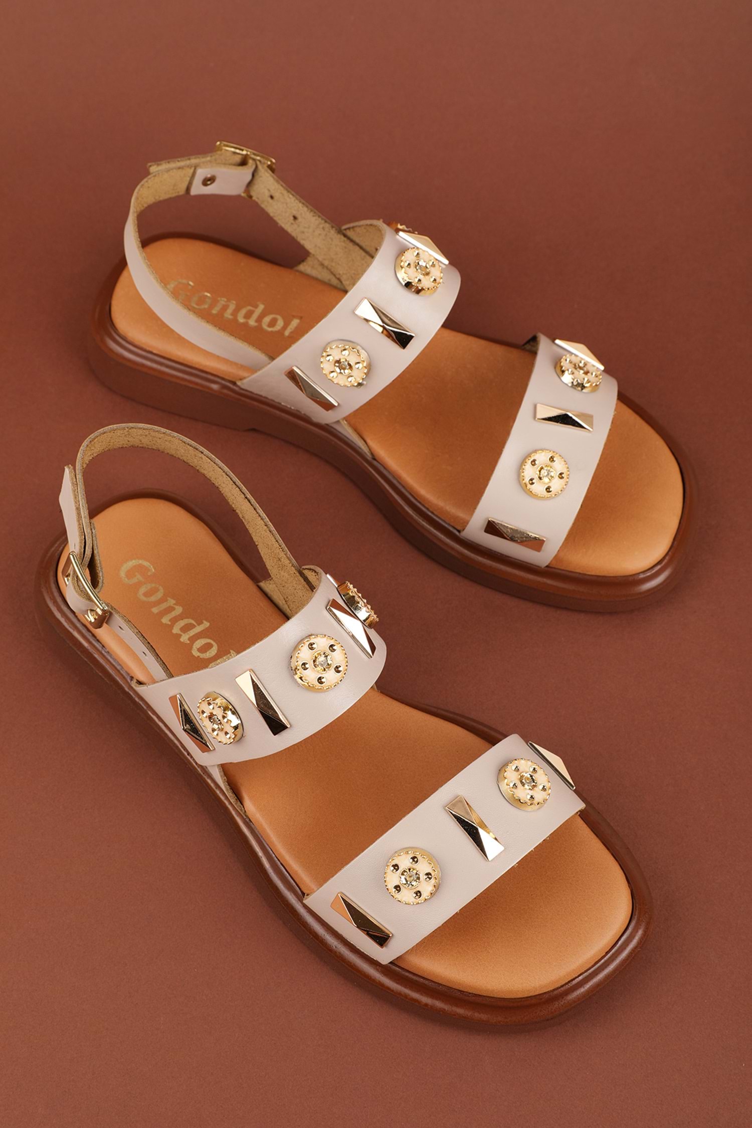 Gondol Hakiki Deri Vaketa Tarzı Günlük Sandalet crm.252 - Vizon - 38