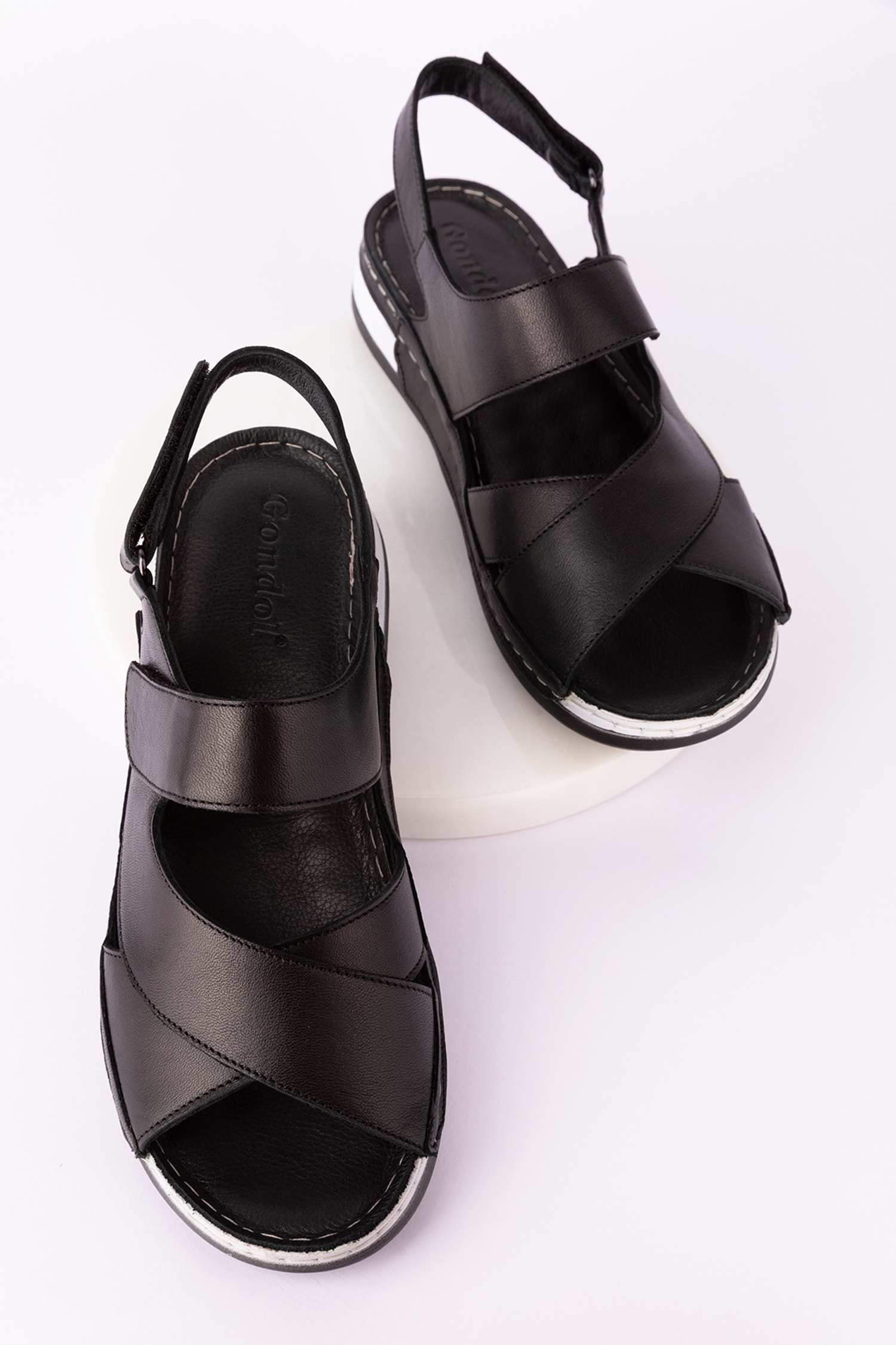 Gondol Kadın Hakiki Deri Anatomik Taban Sandalet iz.4601 - Siyah - 41