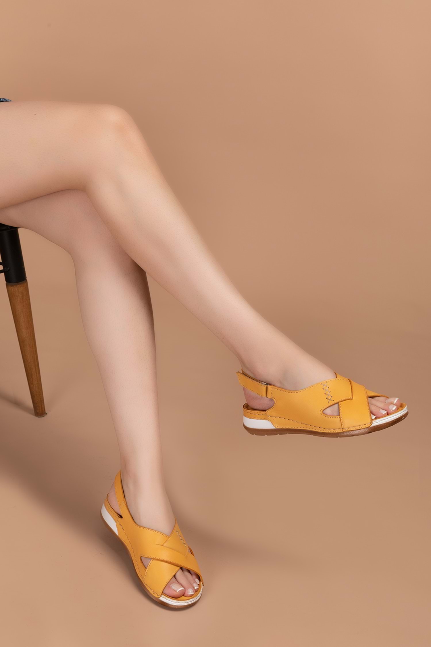 Gondol Kadın Hakiki Deri Anatomik Taban Sandalet iz.4605 - Sarı - 36