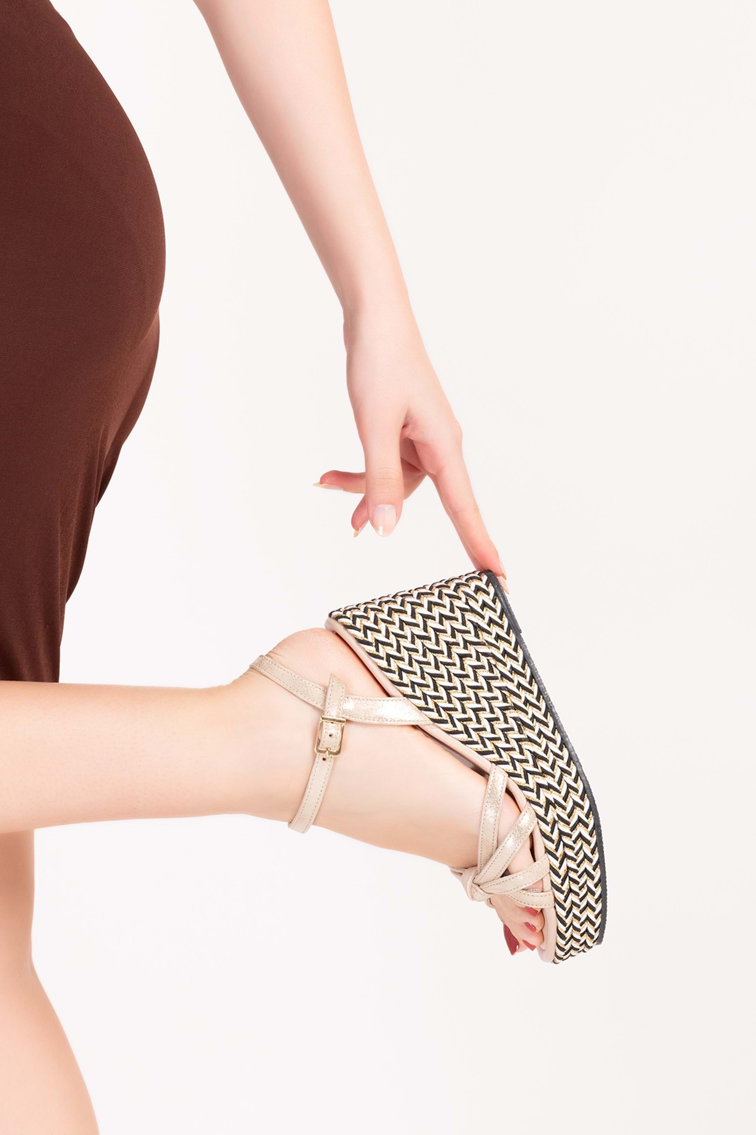 Gondol Kadın Hakiki Deri Dolgu Topuk Hasır Taban Platform Sandalet ell.1314 - Dore - 34