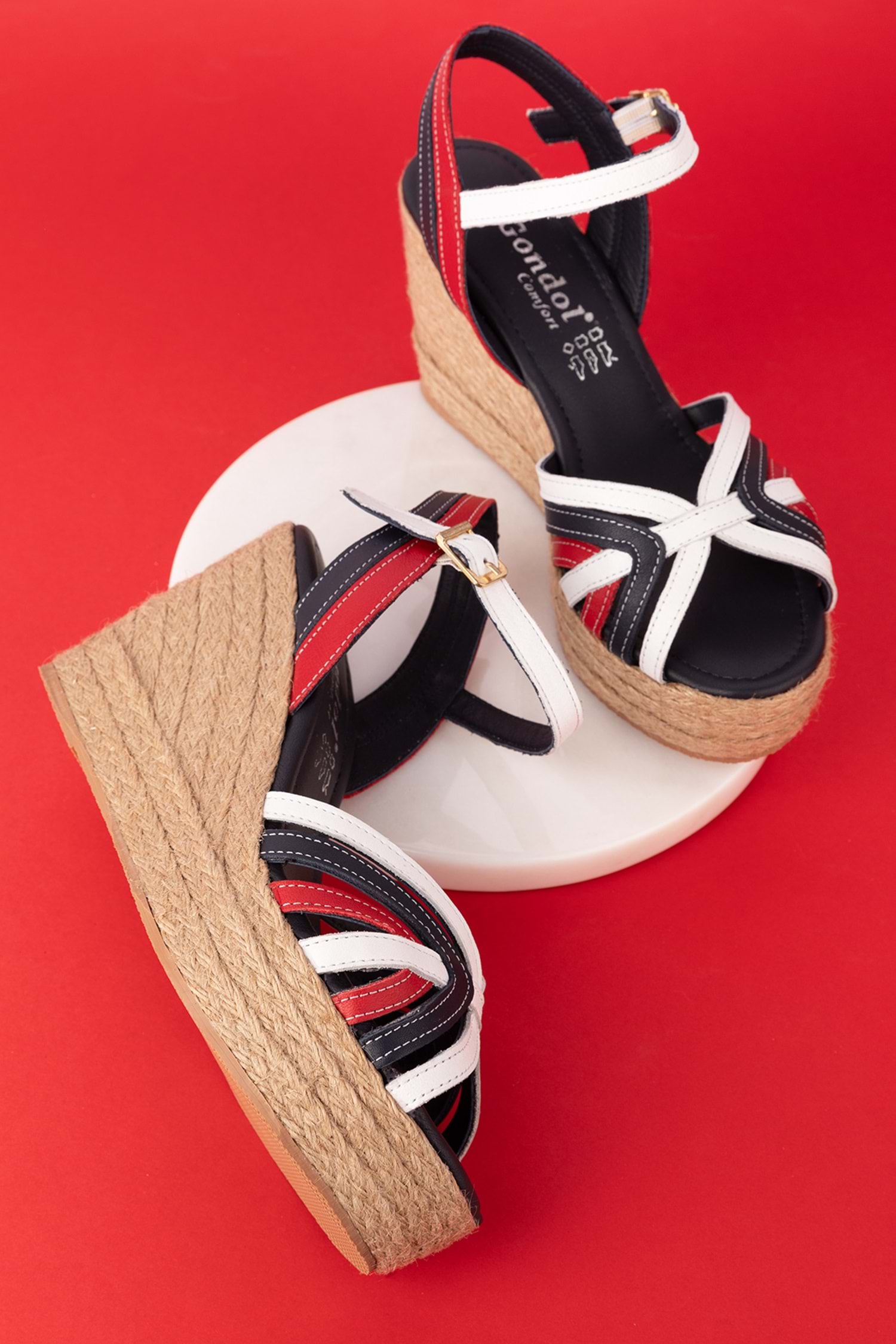 Gondol Kadın Hakiki Deri Dolgu Topuk Platform Sandalet ell.4389 - Tommy - 42