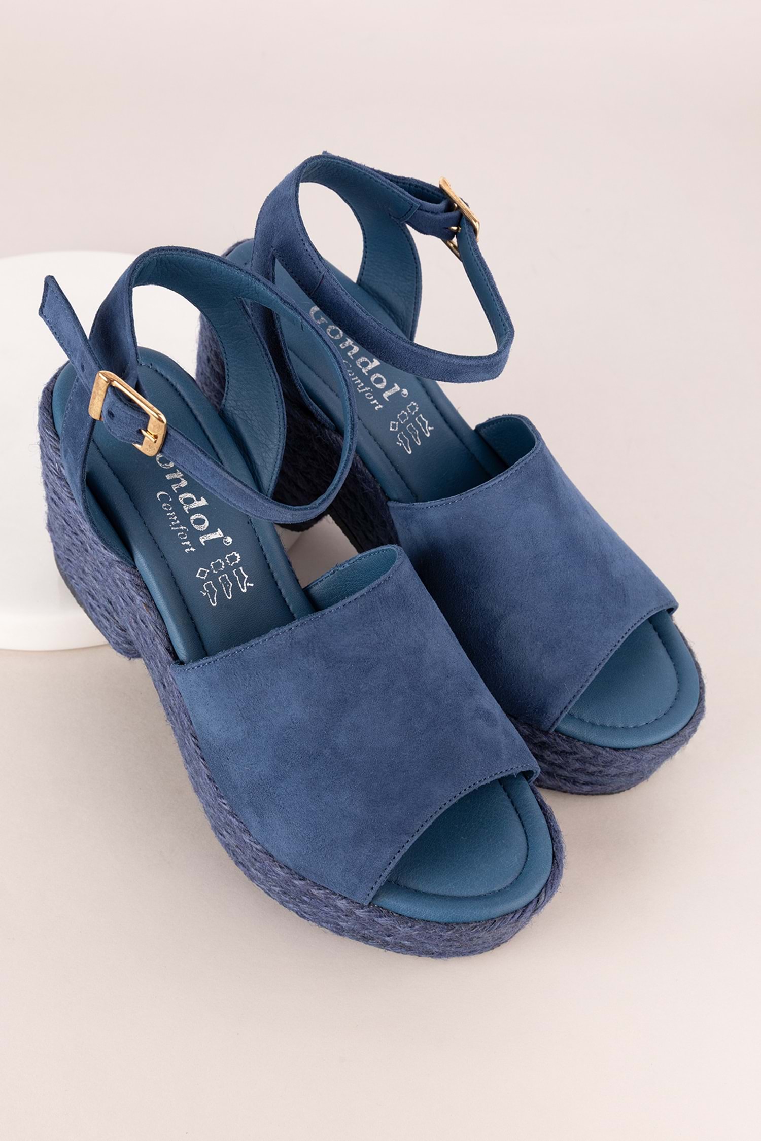 Gondol Kadın Hakiki Deri Dolgu Topuk Platform Sandalet ell.6998 - Mavi Süet - 42