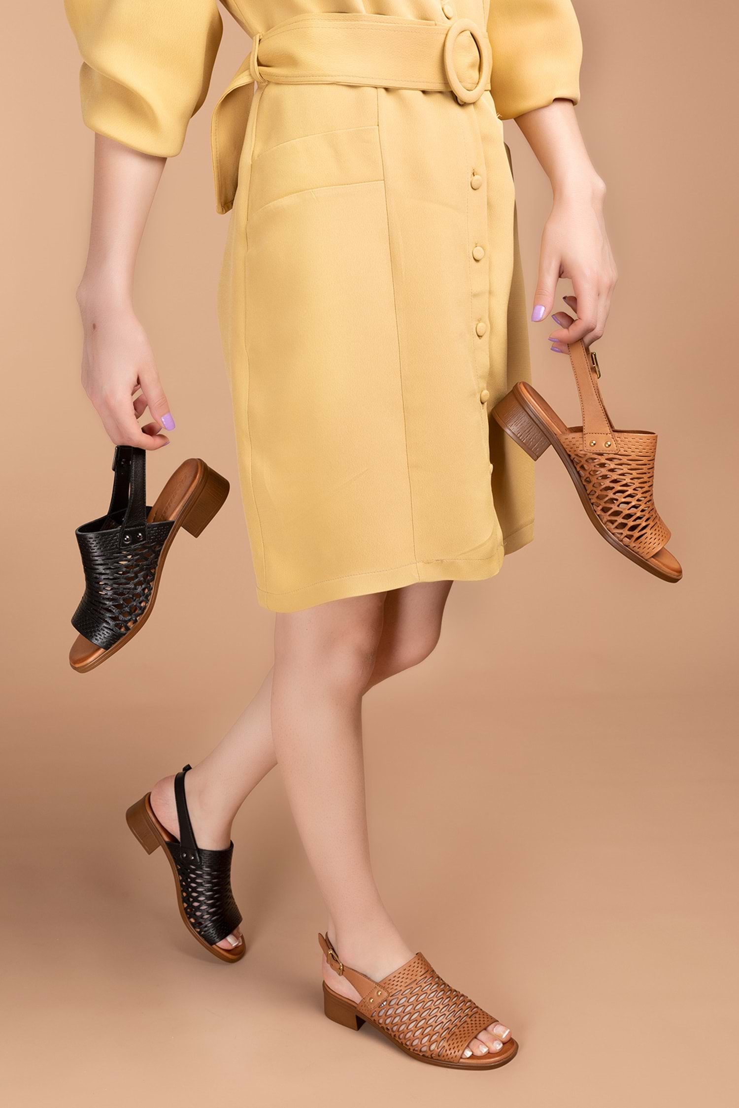 Gondol Kadın Hakiki Deri Lazer Kesim Topuklu Sandalet iz.6001 - Taba - 40