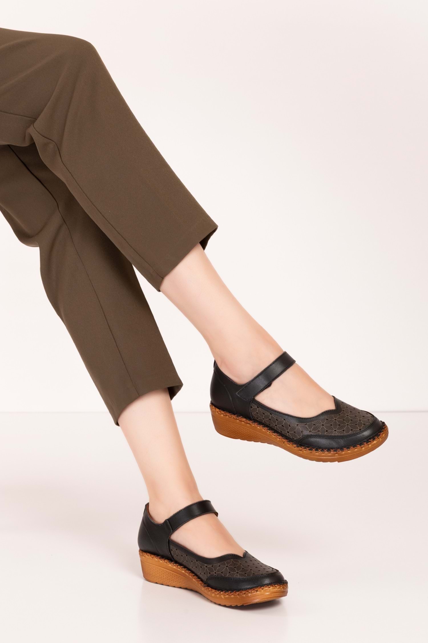 Gondol Kadın Hakiki Deri Önü Kapalı Rahat Sandalet pyt.5100 - Siyah - 40