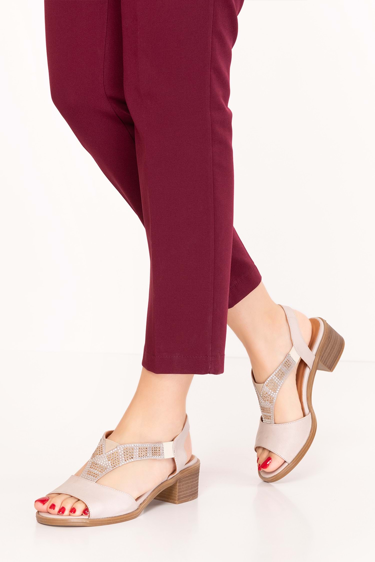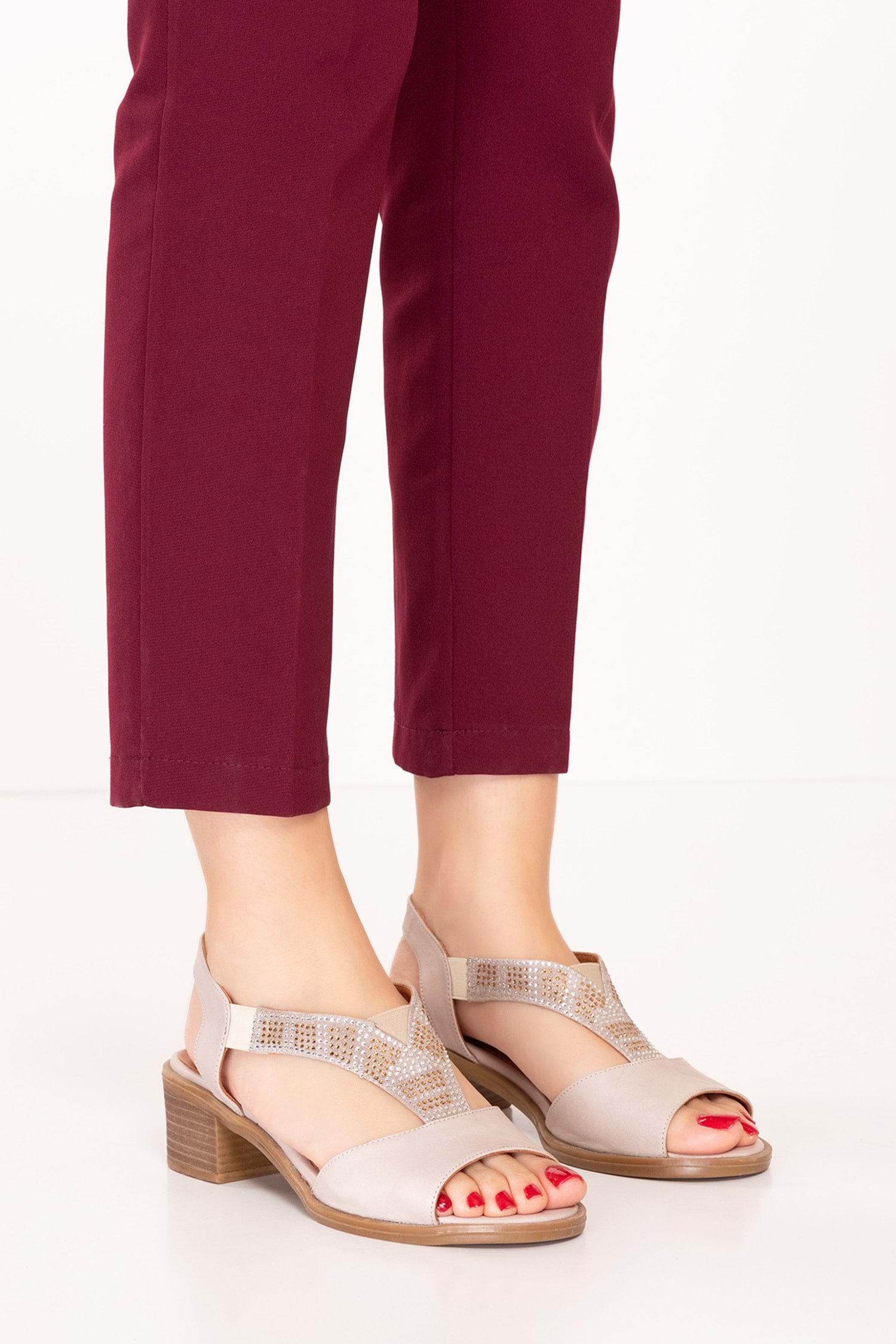 Gondol Kadın Hakiki Deri Orta Topuklu Günlük Şık Sandalet anl.2690 - Gri - 37