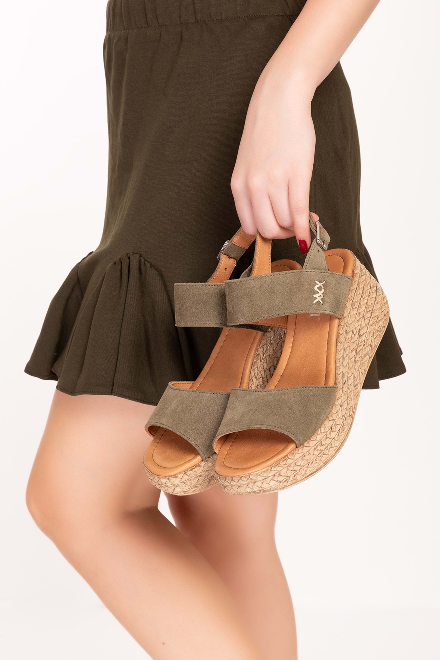 Gondol Kadın Hakiki Deri Platform Tabanlı Sandalet anl.3246 - Haki Süet - 40