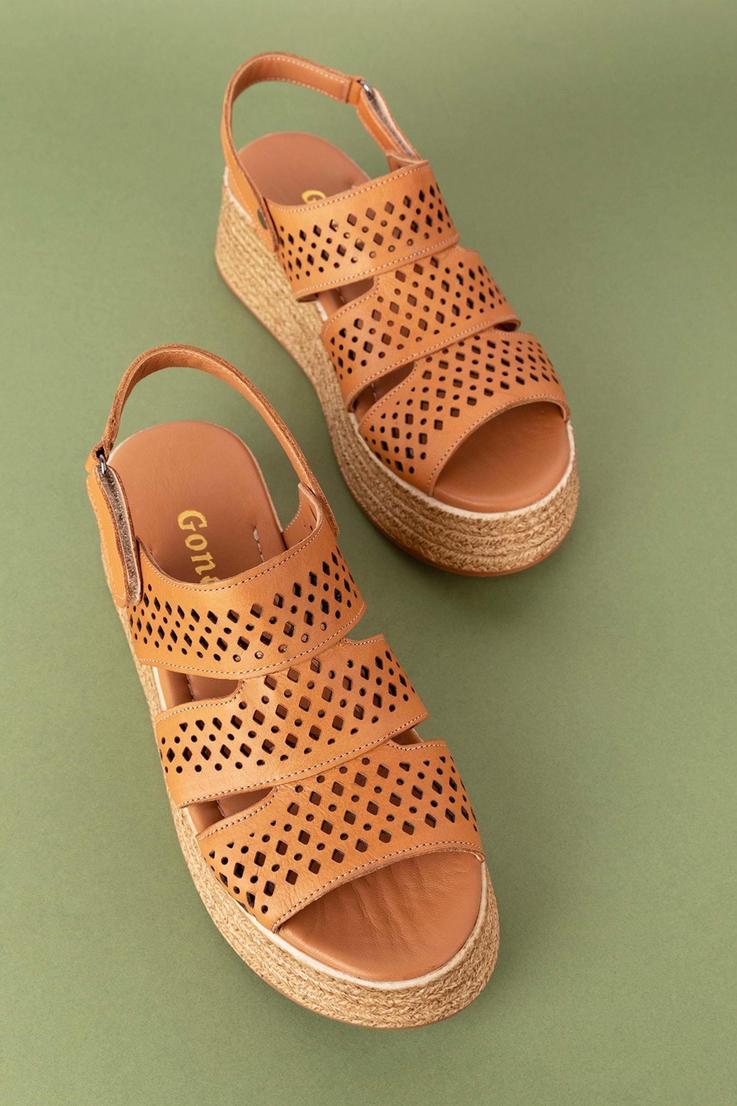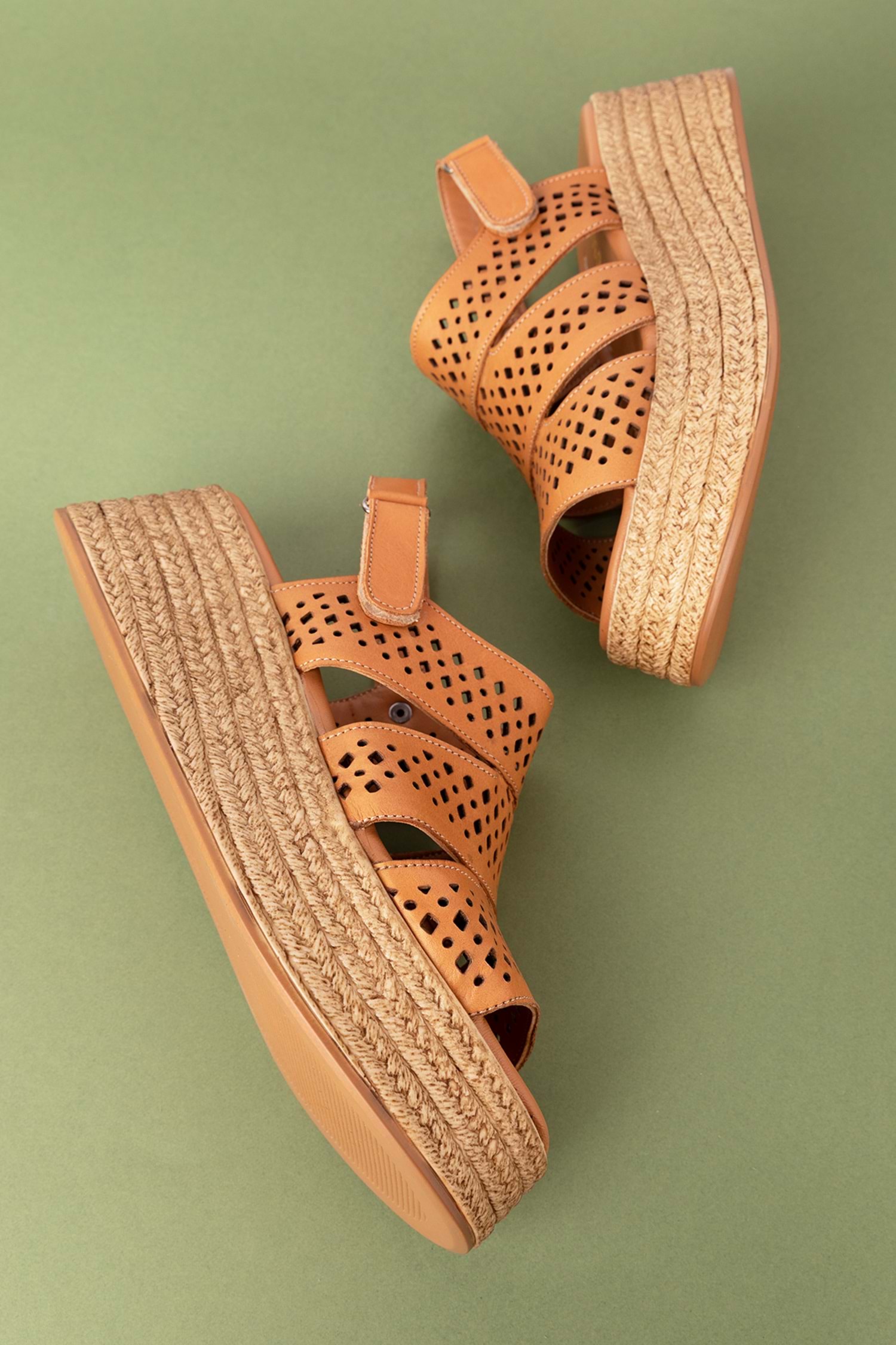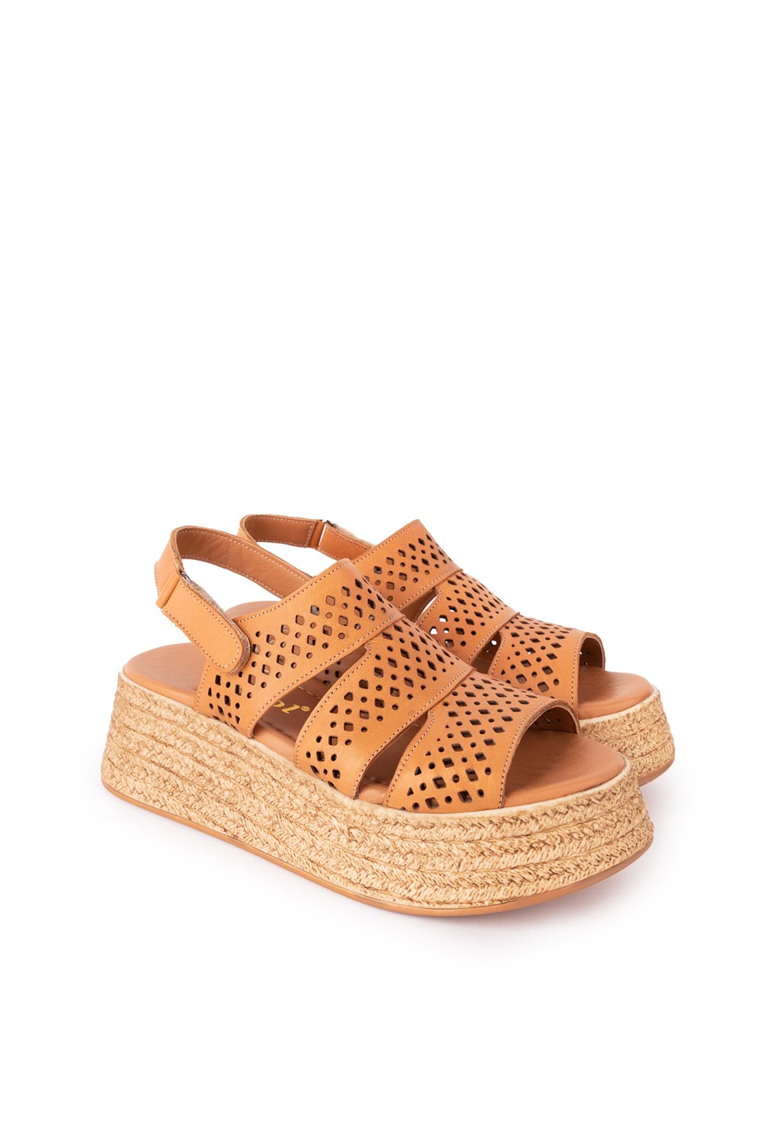 Gondol Kadın Hakiki Deri Platform Tabanlı Sandalet mlk.2054 - Taba - 42