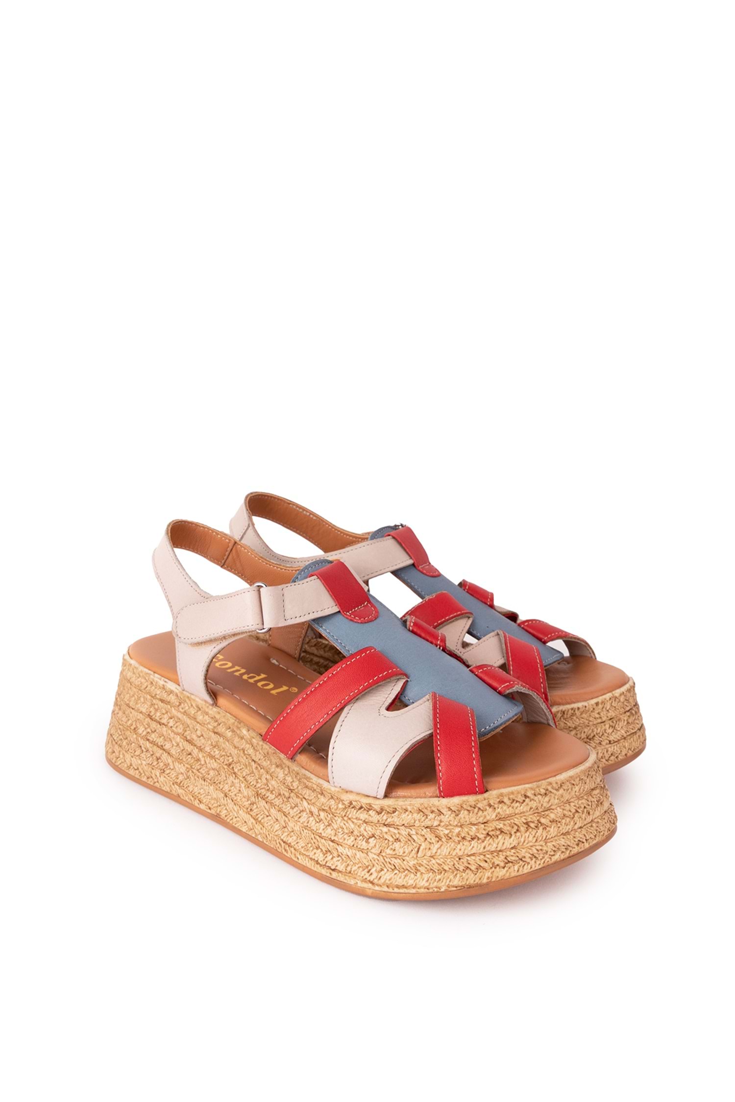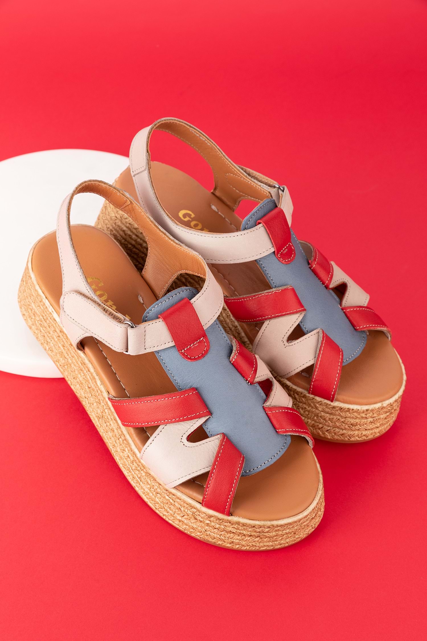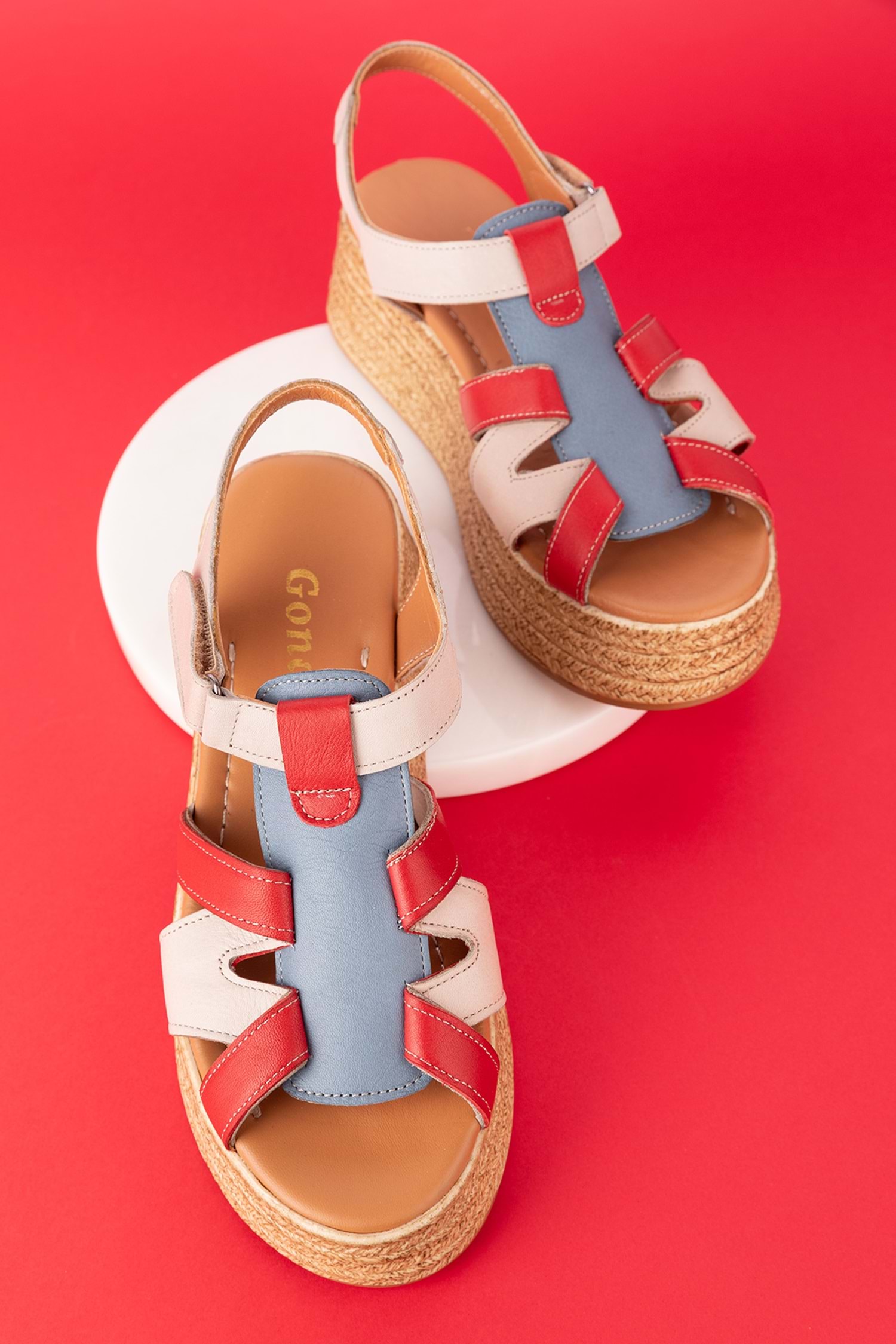 Gondol Kadın Hakiki Deri Platform Tabanlı Sandalet mlk.5204 - Mavi - 42