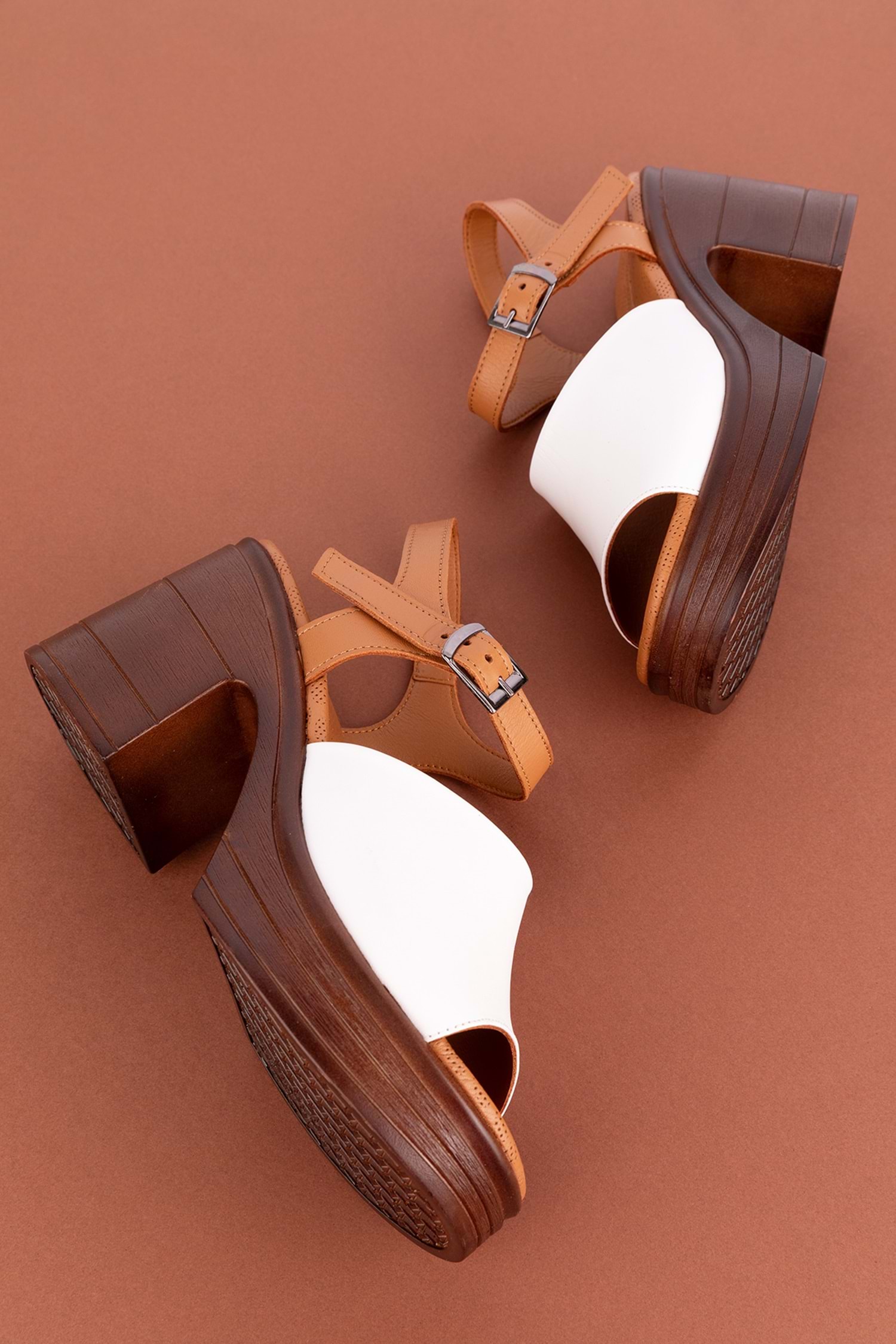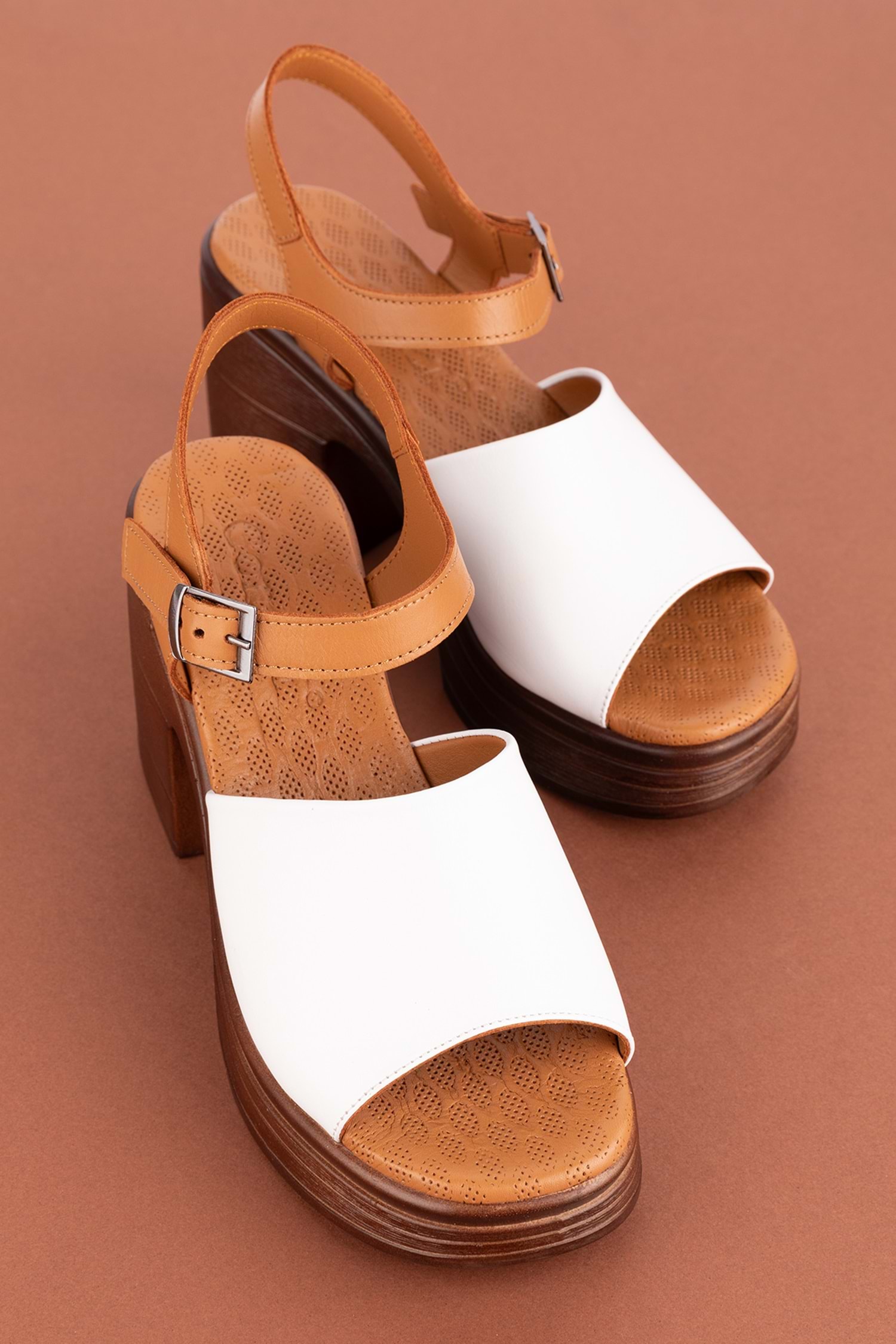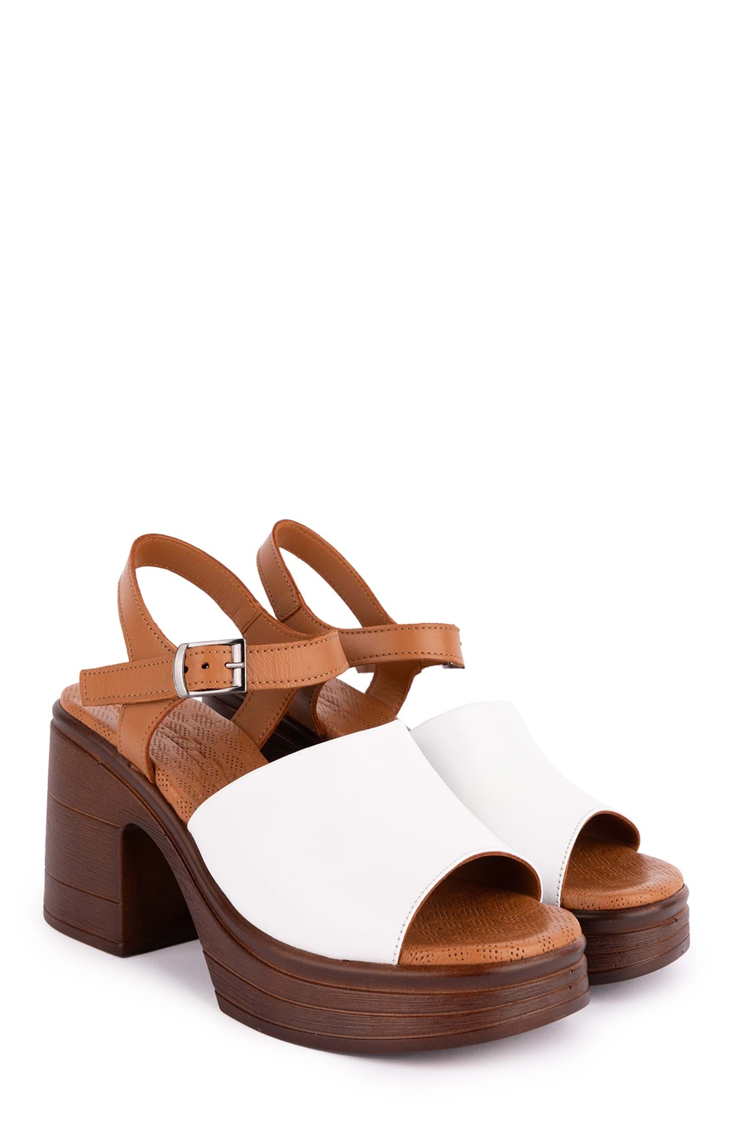 Gondol Kadın Hakiki Deri Platform Topuklu Sandalet msa.34 - Beyaz - 36