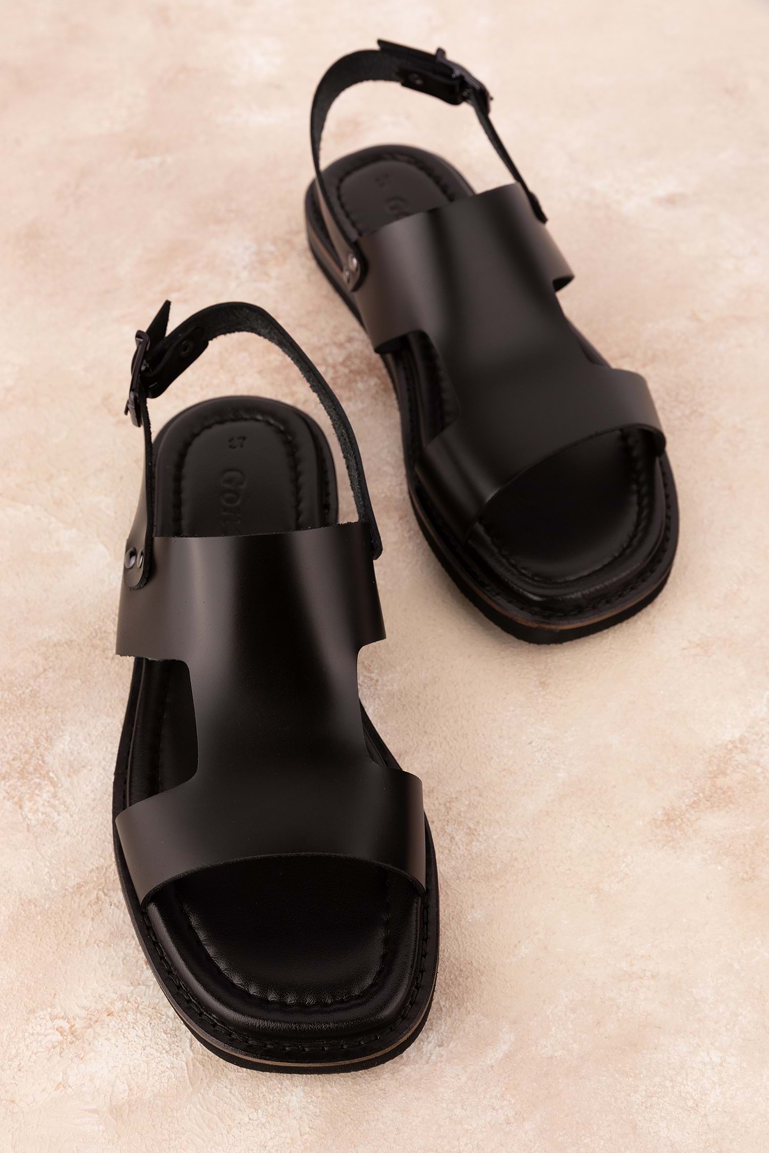Gondol Kadın Hakiki Deri Renkli Kombin Vaketa Sandalet ayh.407 - Siyah - 40