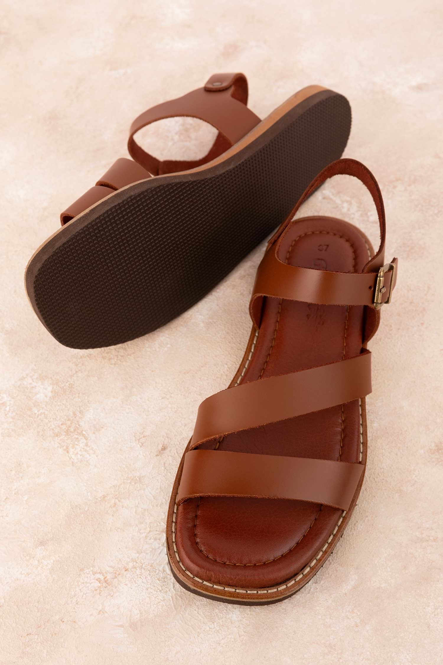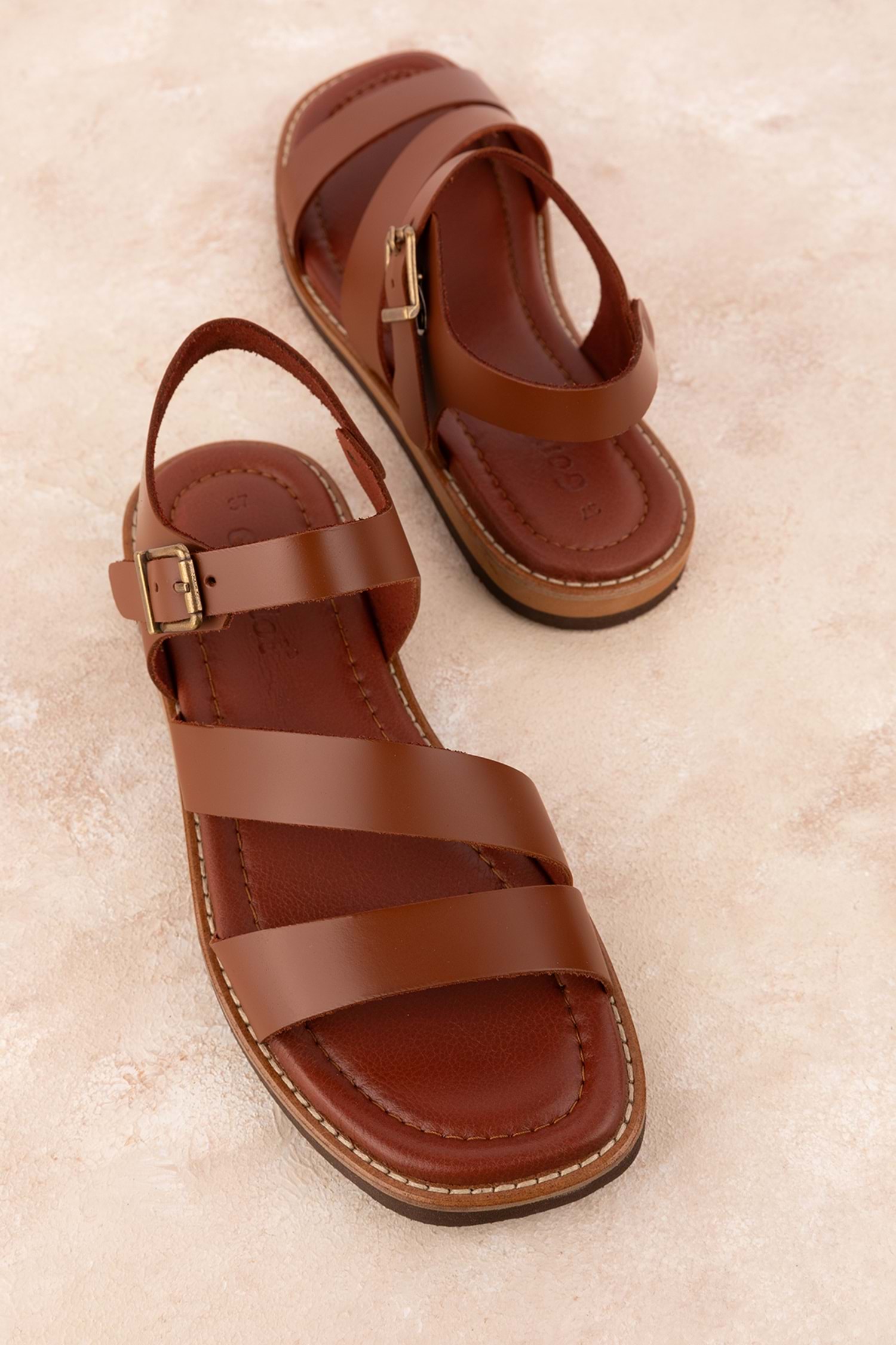 Gondol Kadın Hakiki Deri Renkli Kombin Vaketa Sandalet ayh.410 - Taba - 40