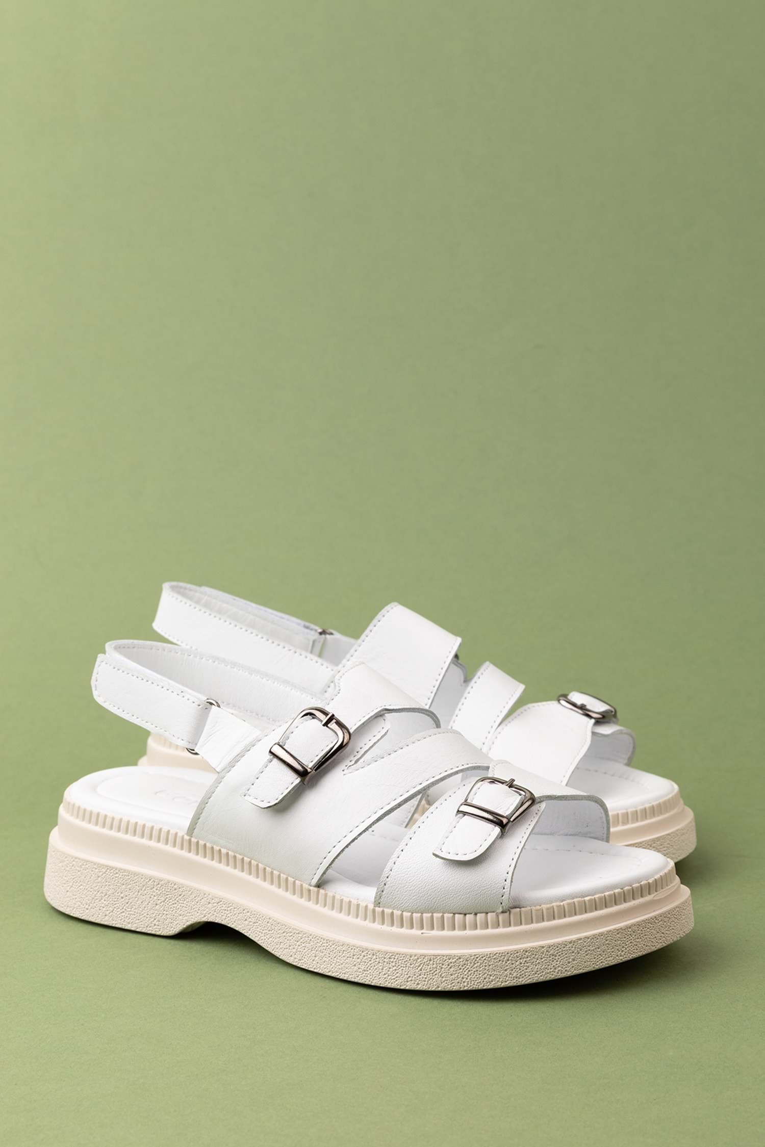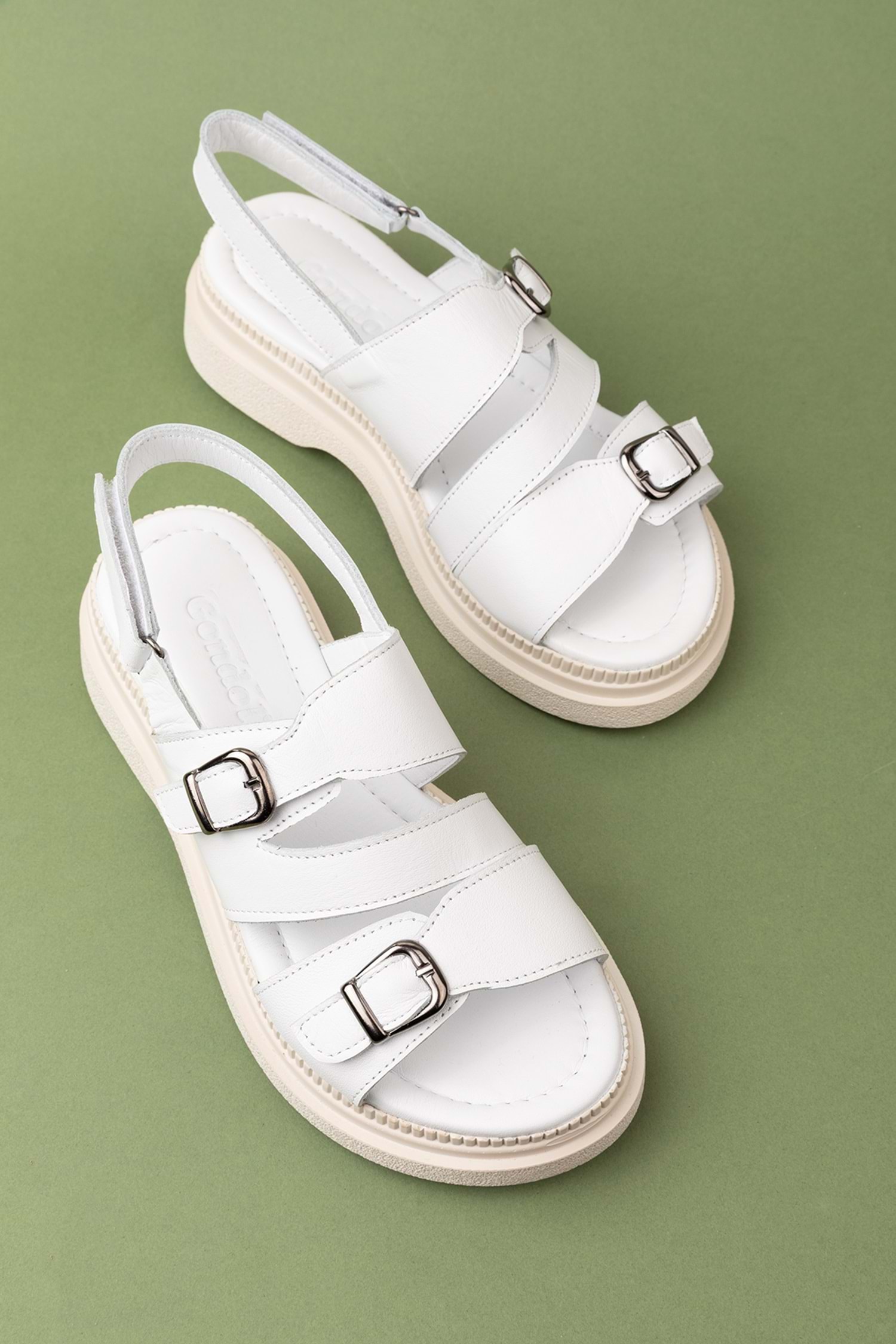 Gondol Kadın Hakiki Deri Şık Gümlük Rahat Sandalet ez.6122 - Beyaz - 36