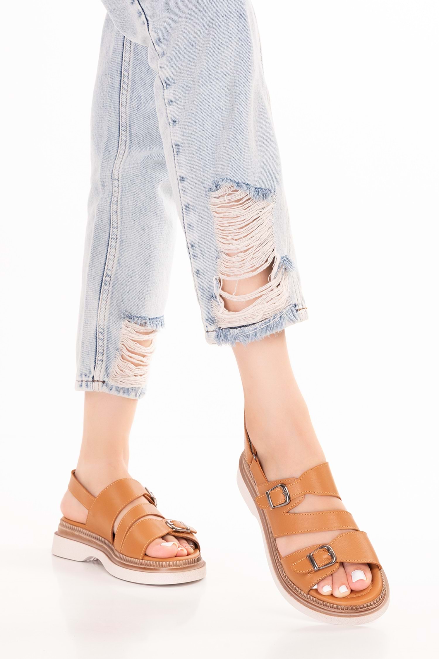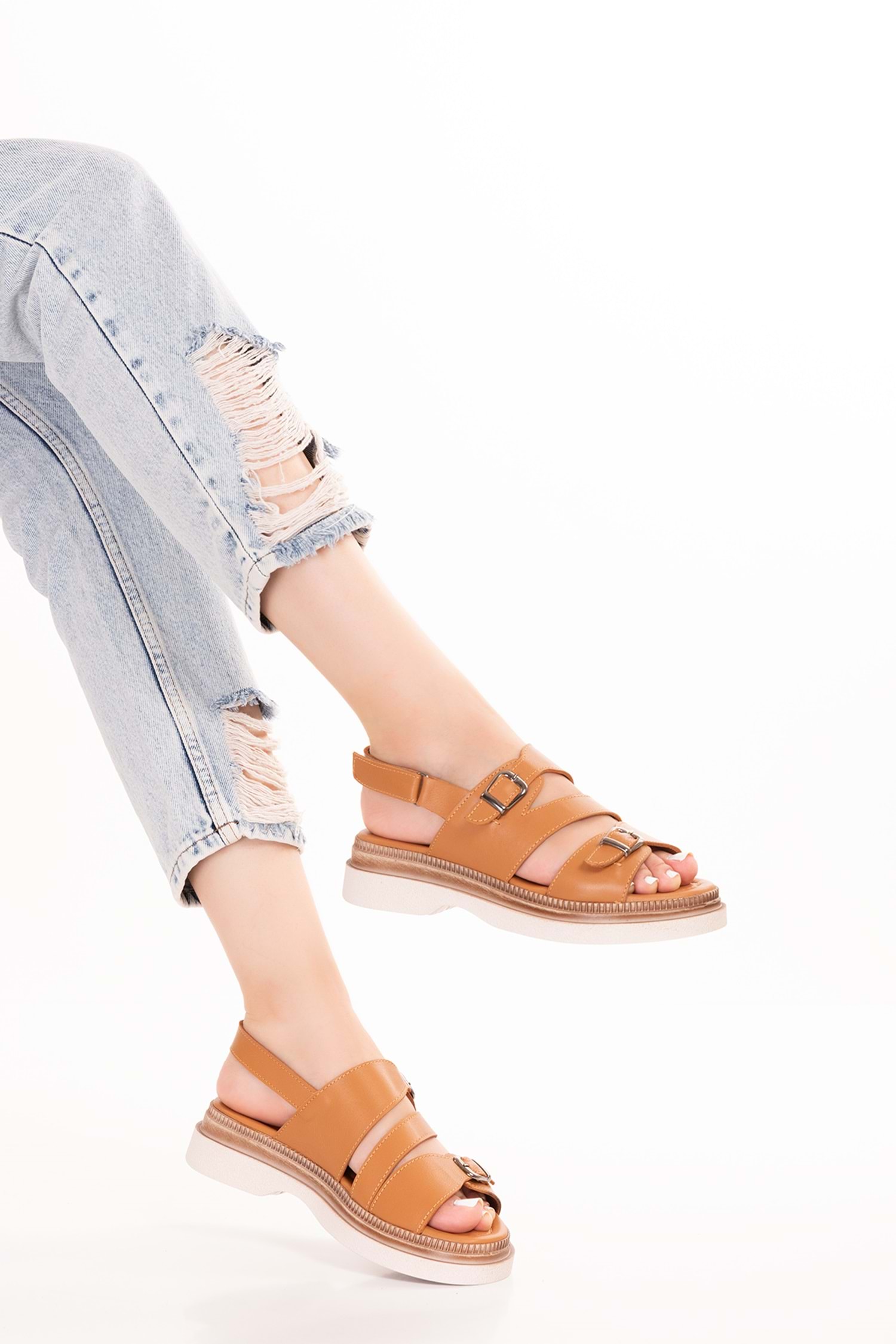 Gondol Kadın Hakiki Deri Şık Gümlük Rahat Sandalet ez.6122 - Taba - 40