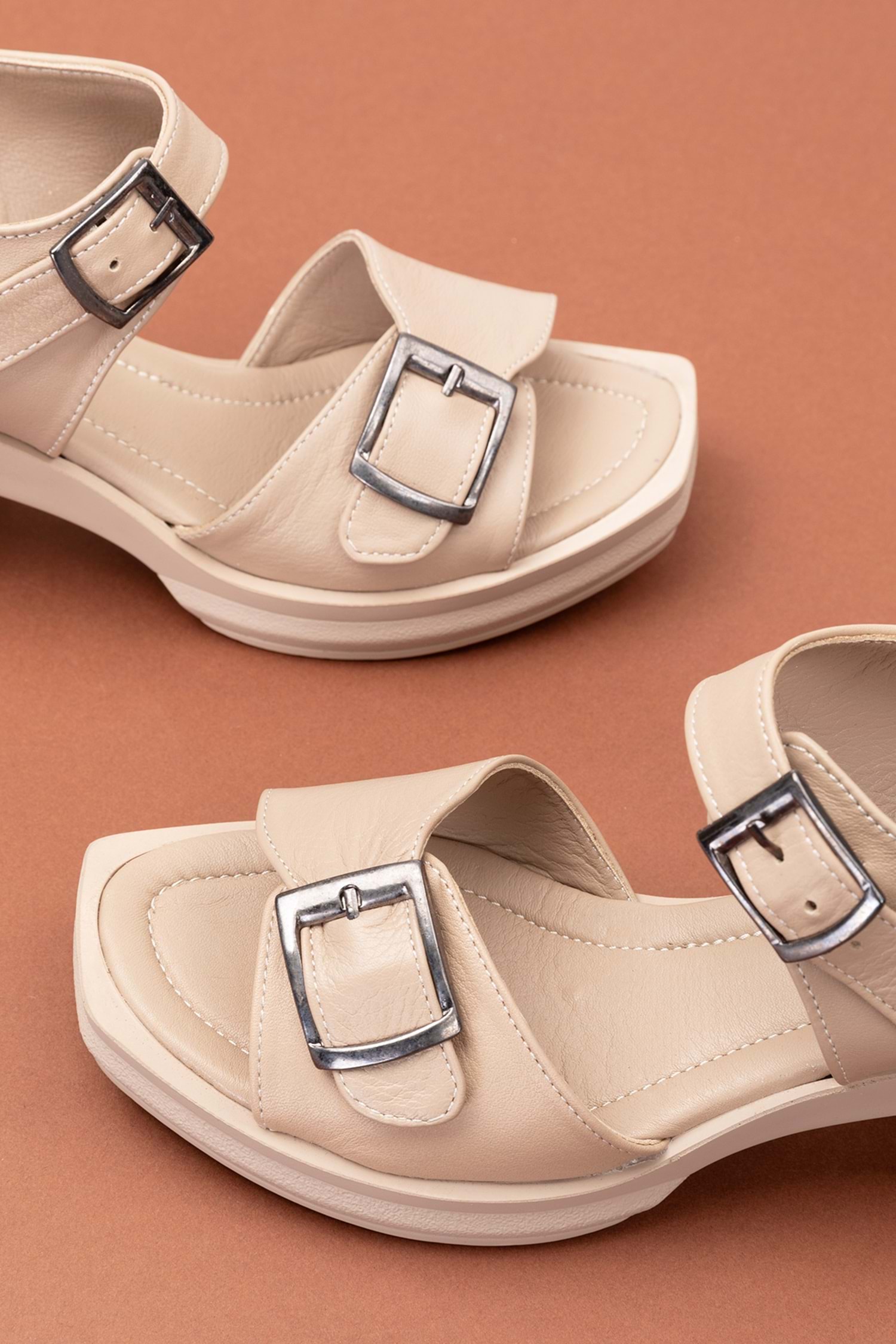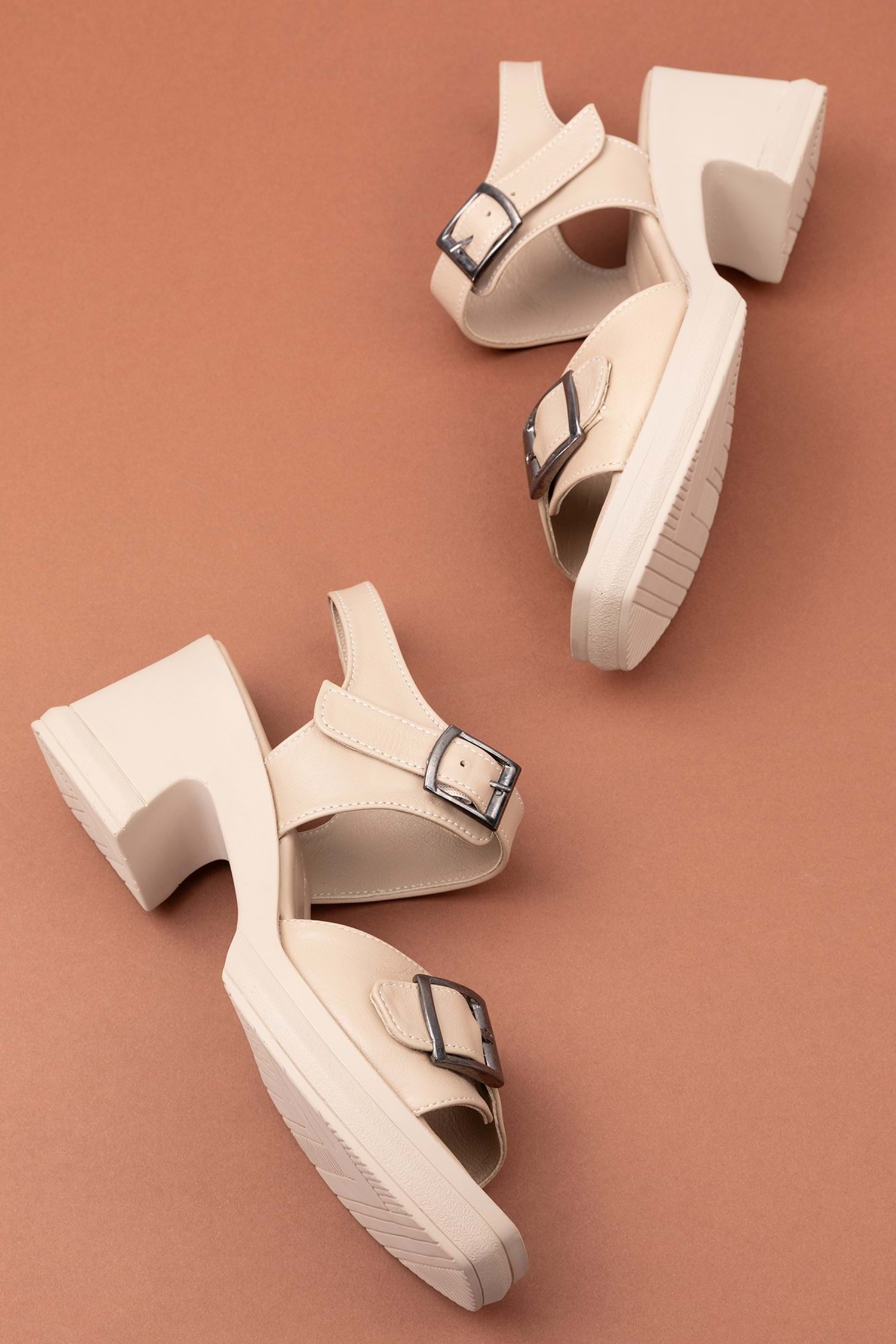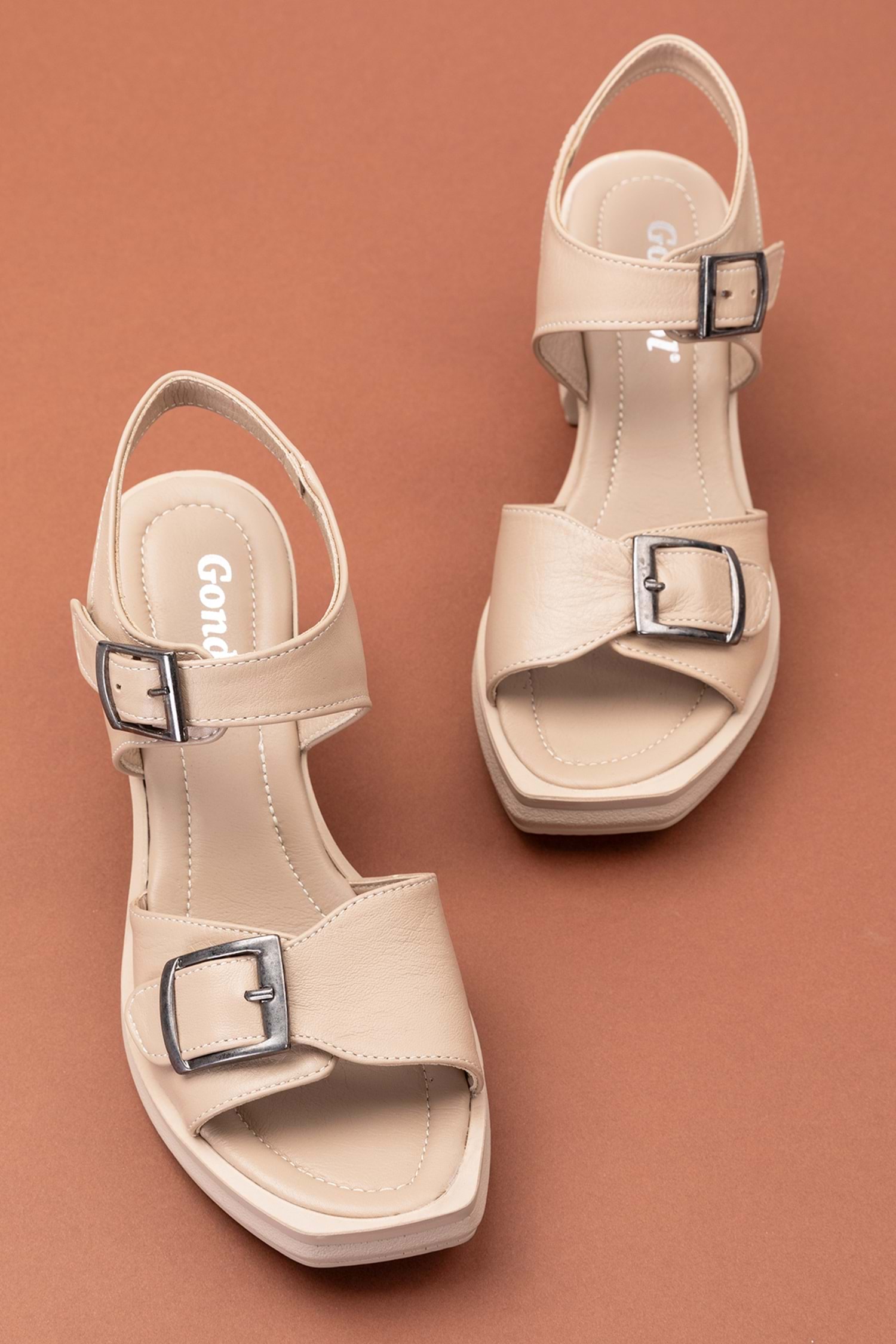 Gondol Kadın Hakiki Deri Şık Topuklu Sandalet ez.5007 - Vizon - 40