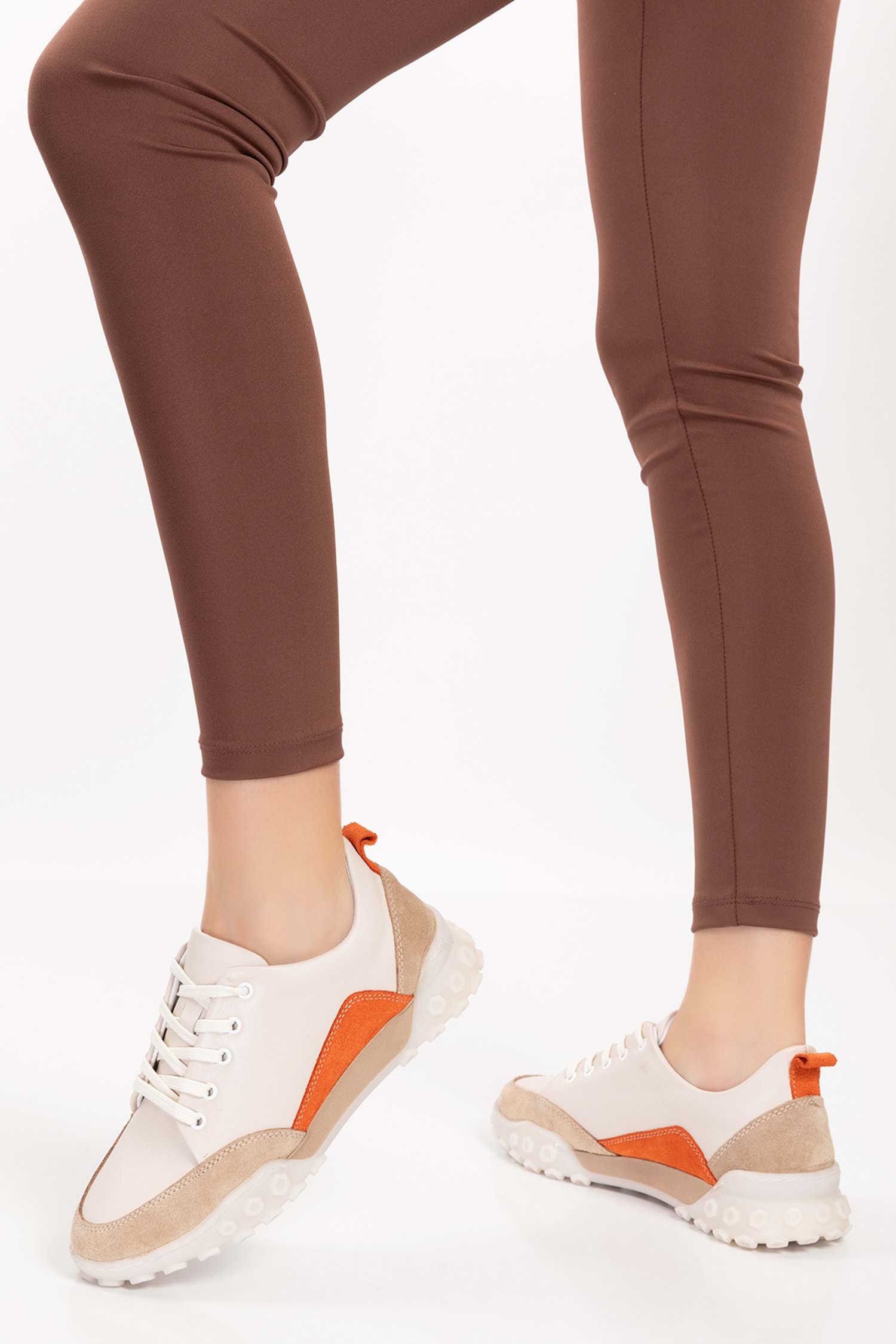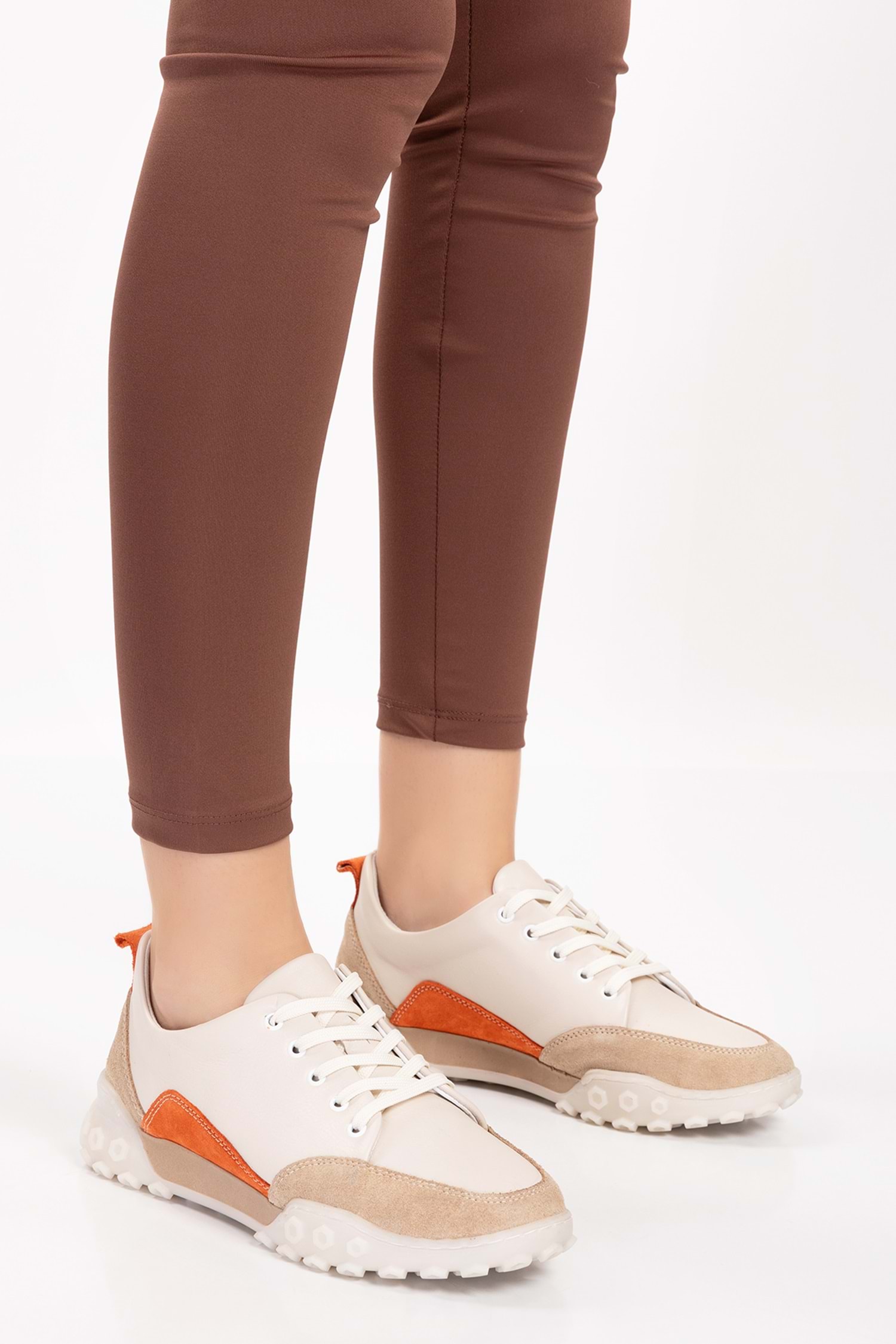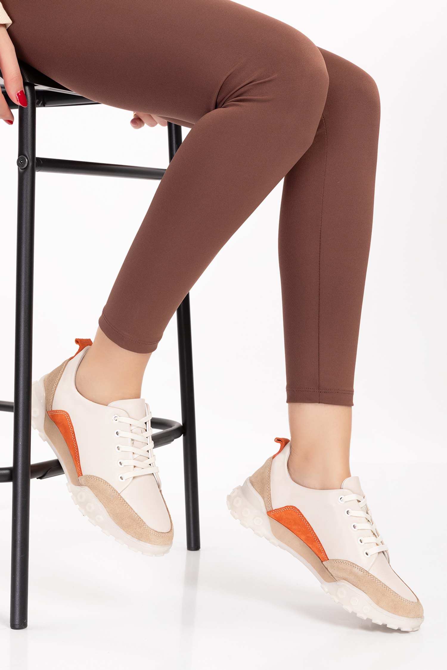 Gondol Hakiki Deri Kalın Rahat Günlük Spor Ayakkabı yt.2403 - Bej - 40