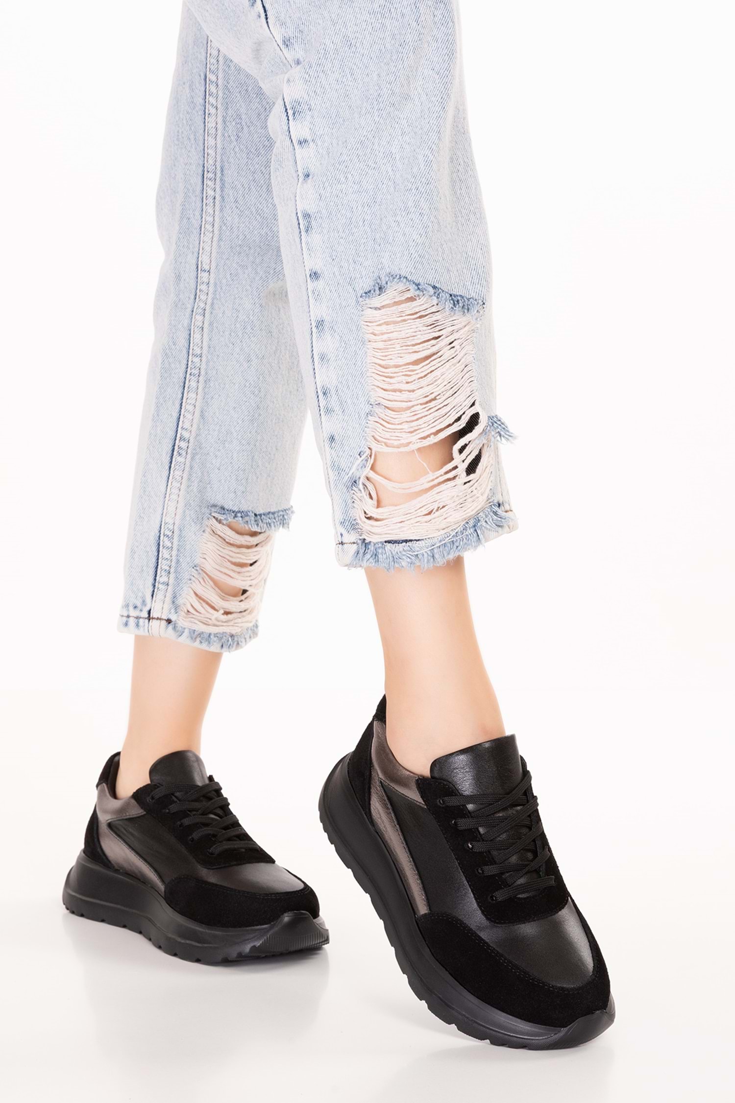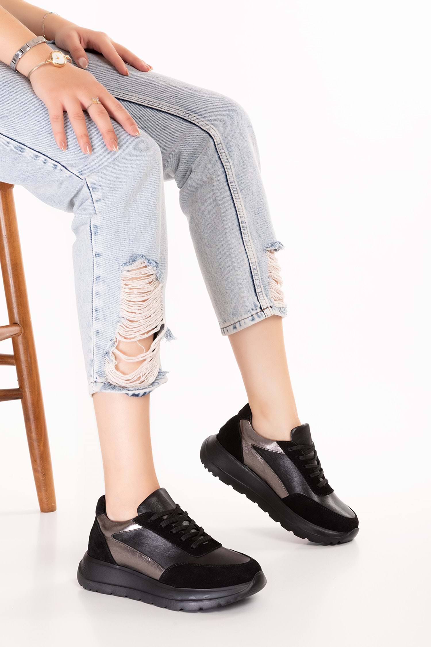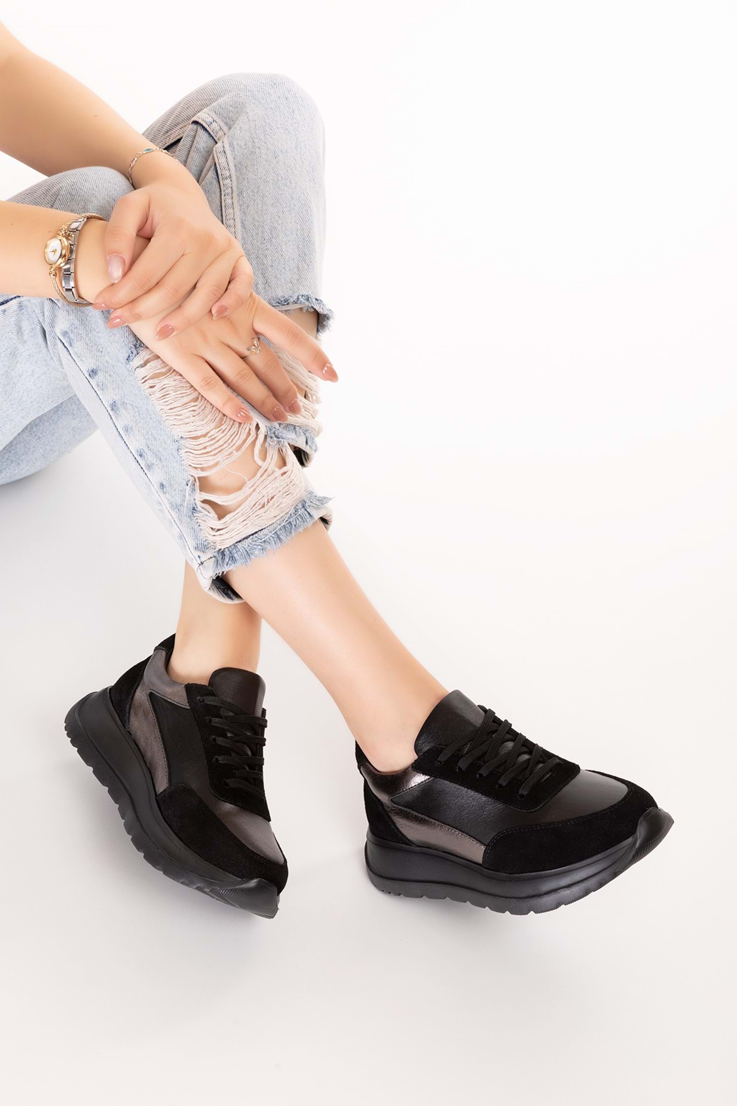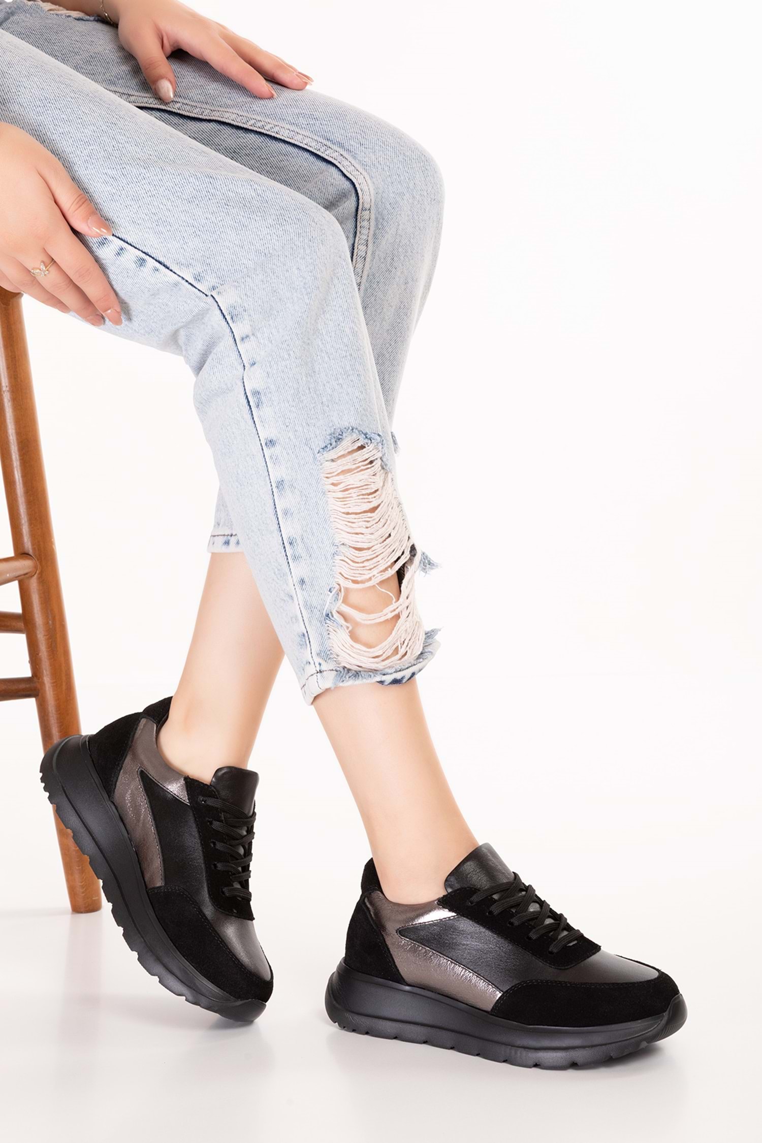 Hakiki Deri Kadın Hafif Spor Ayakkabıı – Hafif Tabanı Modern Çizgilerle Birleştirip Tasarlandı