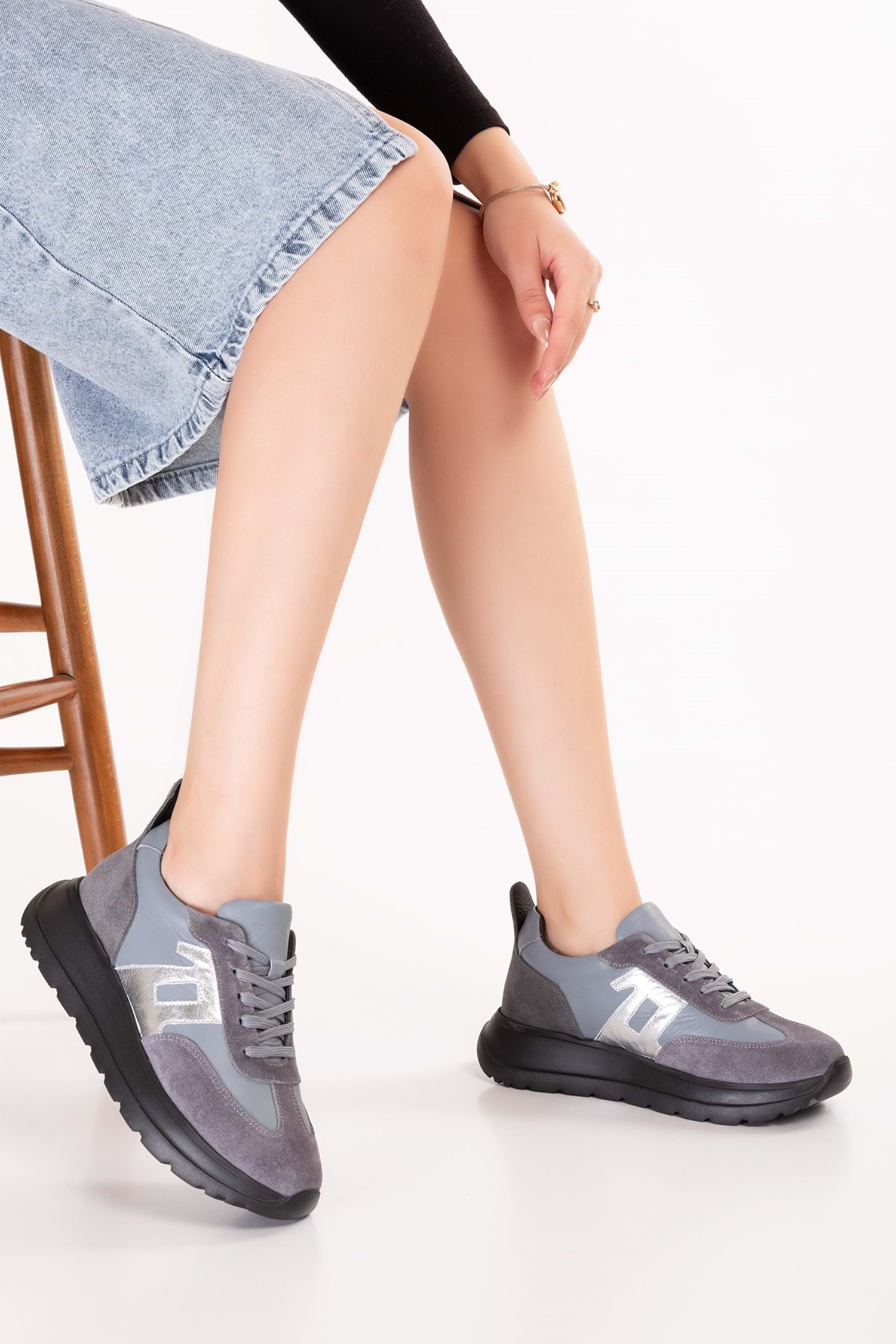 Hakiki Deri Kadın Hafif Spor Ayakkabıı – Hafif Tabanı Modern Çizgilerle Birleştirip Tasarlandı