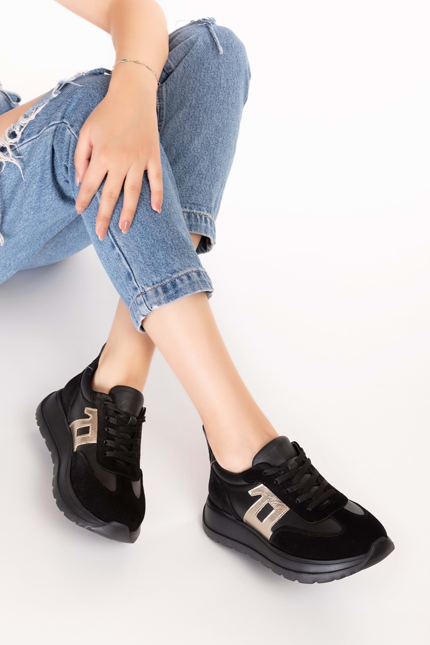 Hakiki Deri Kadın Hafif Spor Ayakkabıı – Hafif Tabanı Modern Çizgilerle Birleştirip Tasarlandı