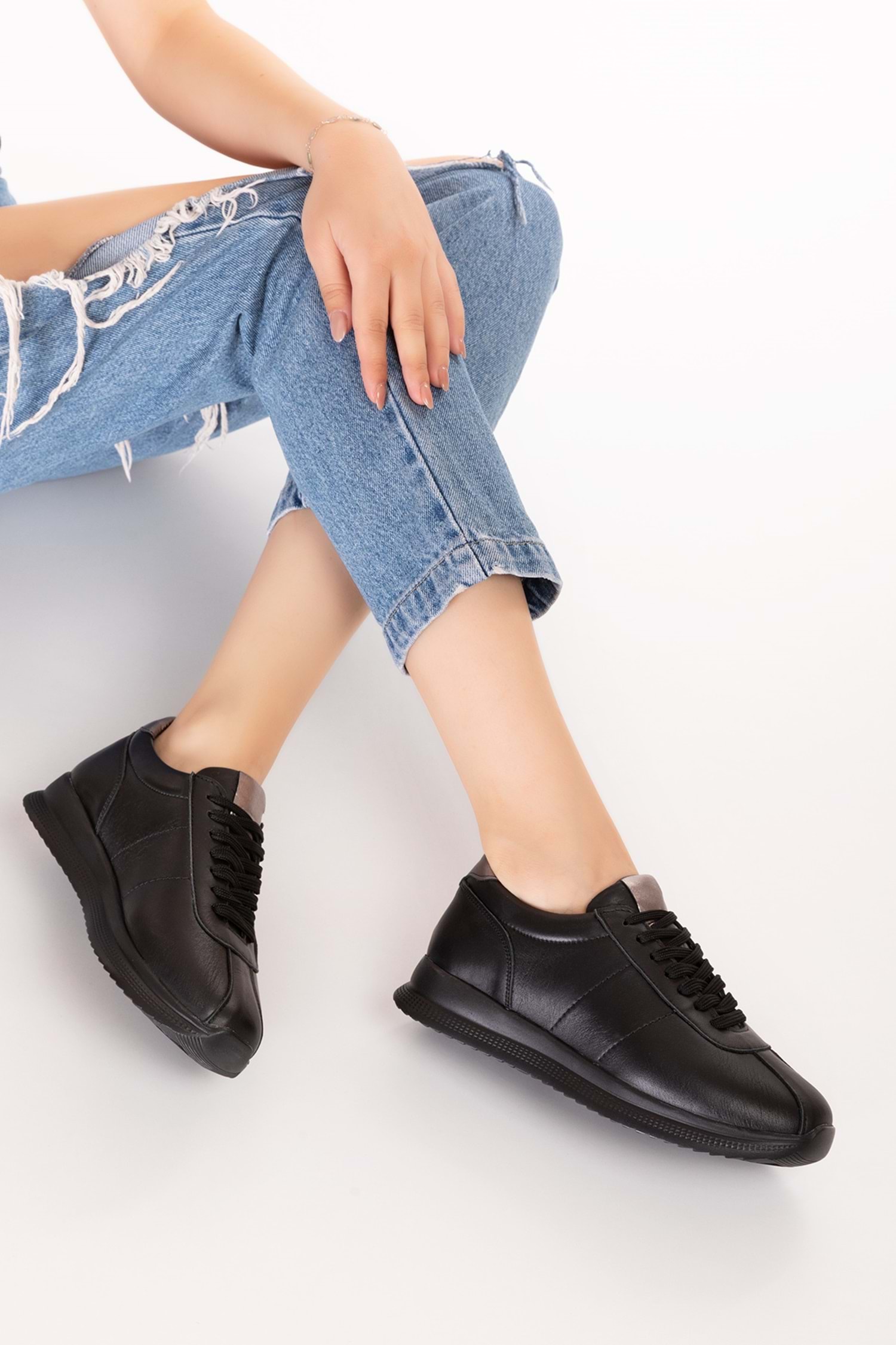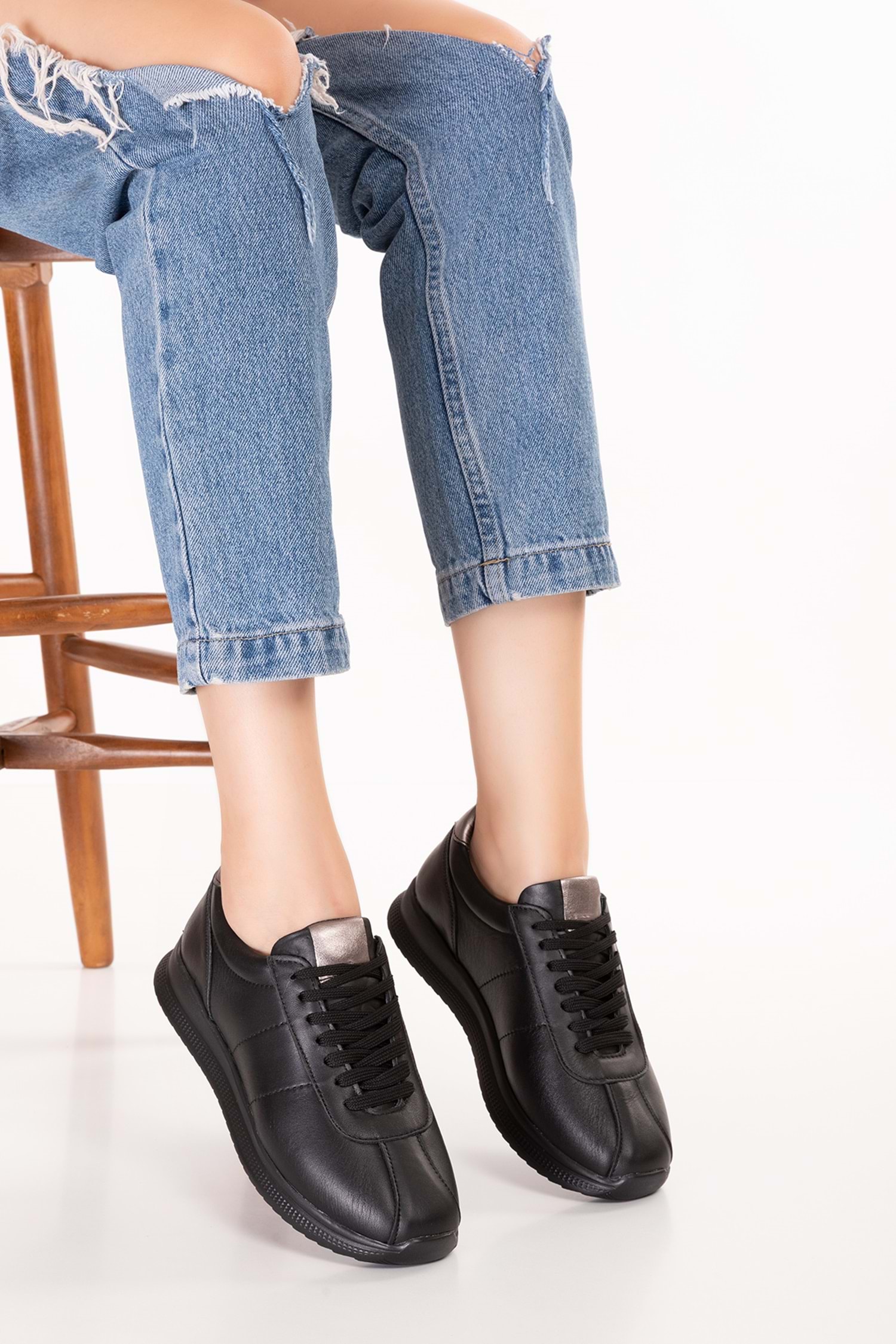 Gondol Içi Dışı Hakiki Deri Anatomik Taban Hafif Spor Ayakkabı kla.1616 - Siyah - 37