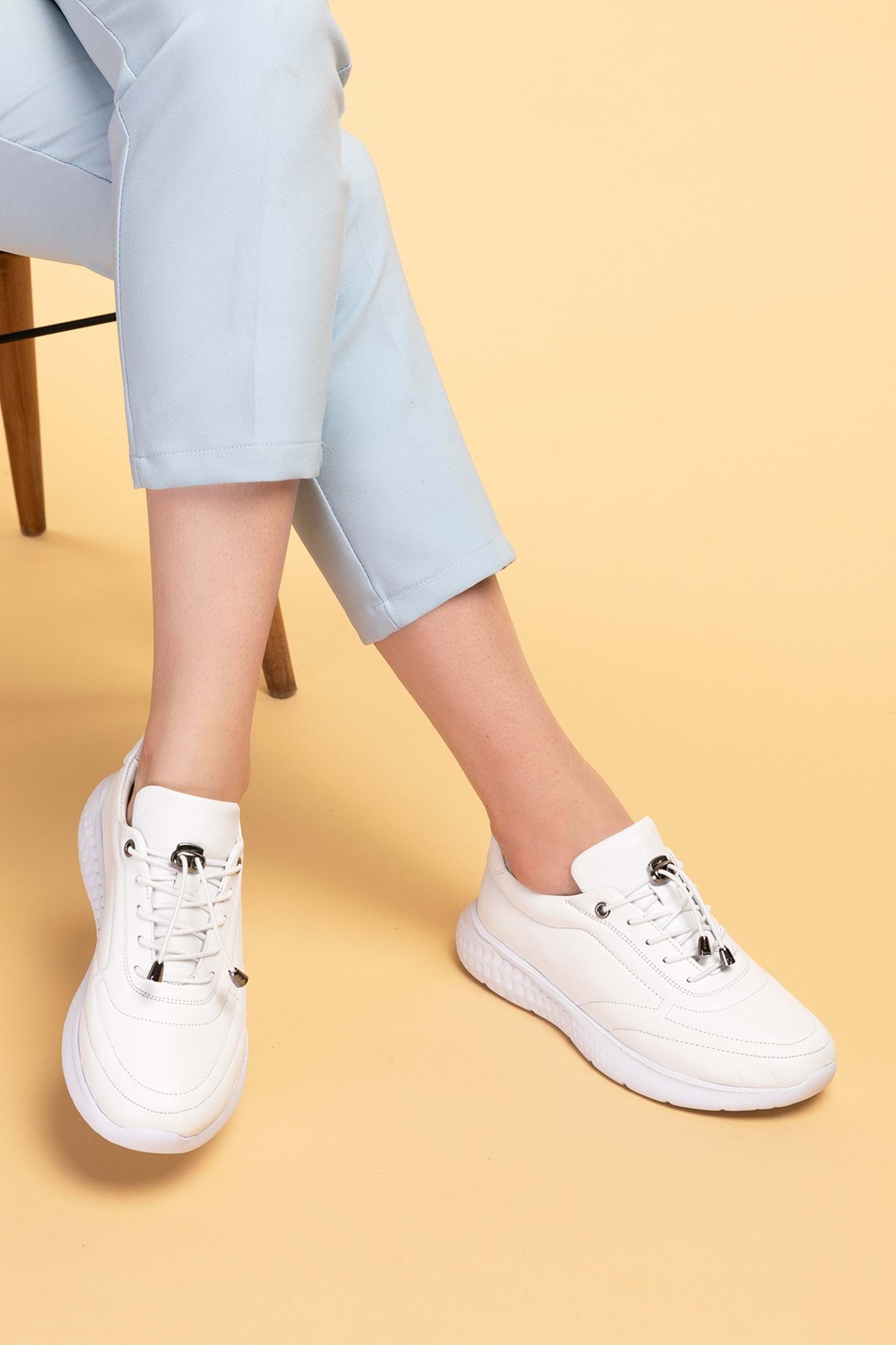 Gondol Içi Dışı Hakiki Deri Faylon Taban Hafif Spor Ayakkabı es.110 - Beyaz - 36
