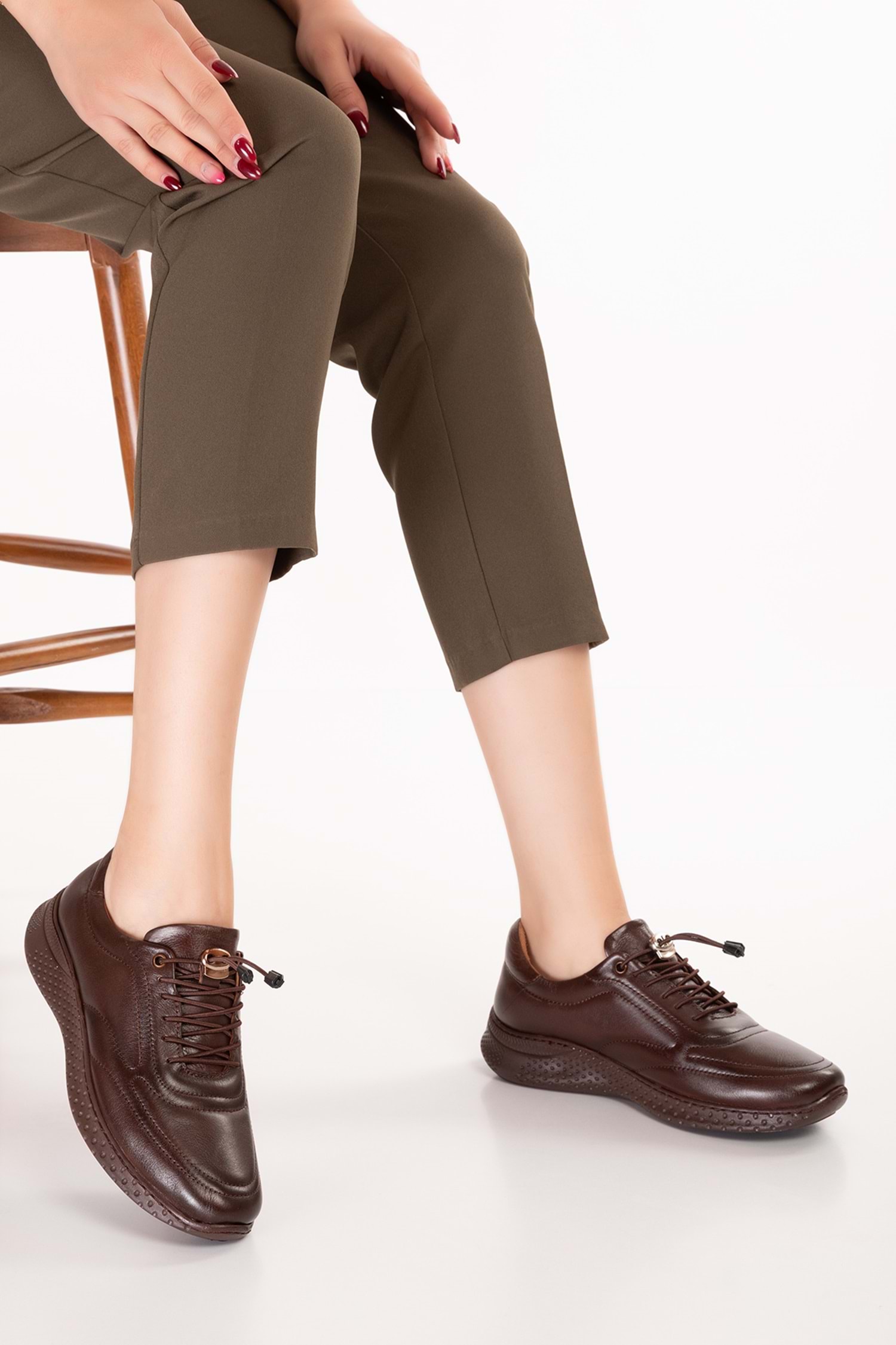 Gondol Içi Dışı Hakiki Deri Faylon Taban Hafif Spor Ayakkabı es.110 - Kahverengi - 37
