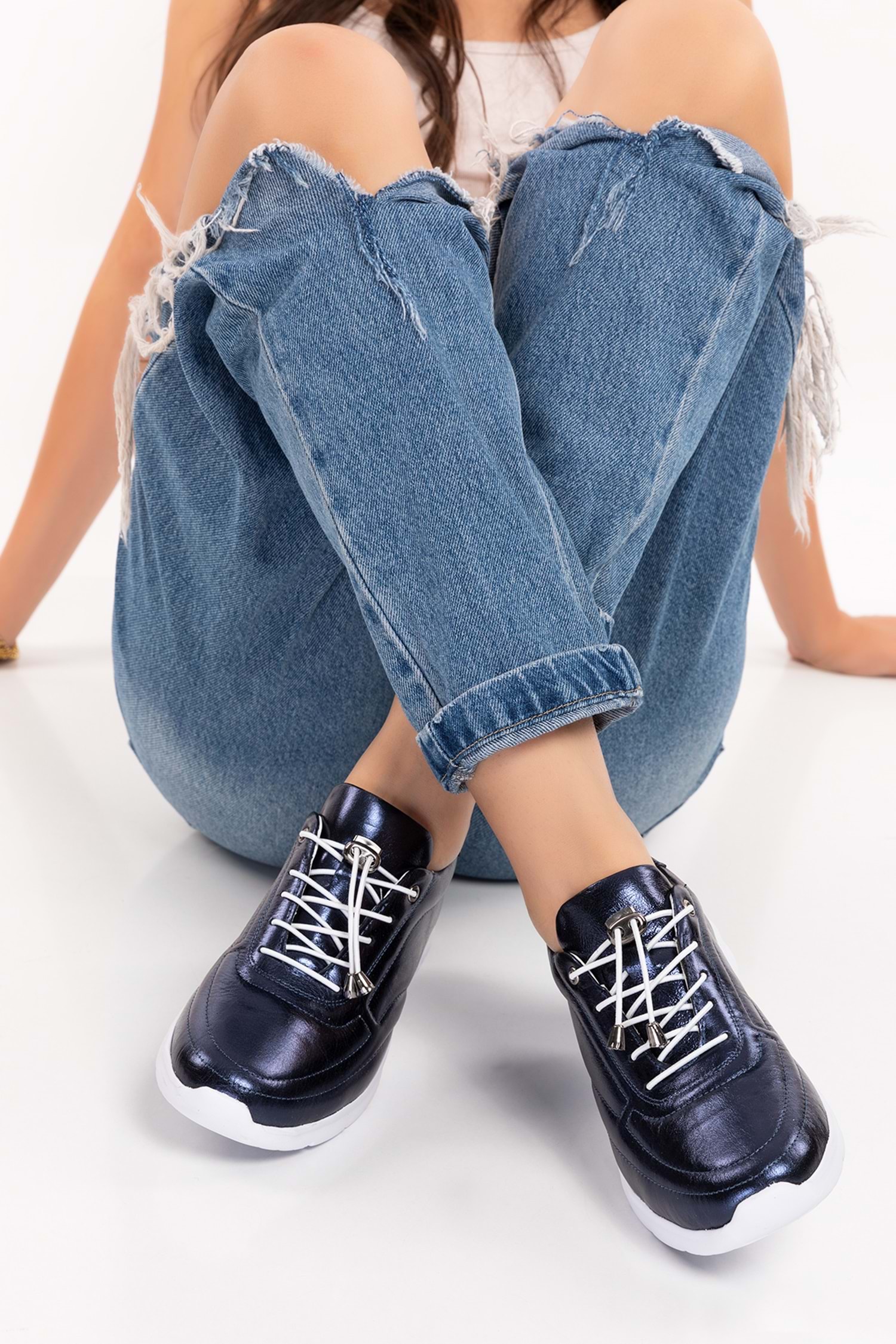 Gondol Içi Dışı Hakiki Deri Faylon Taban Hafif Spor Ayakkabı es.110 - Lacivert - 36