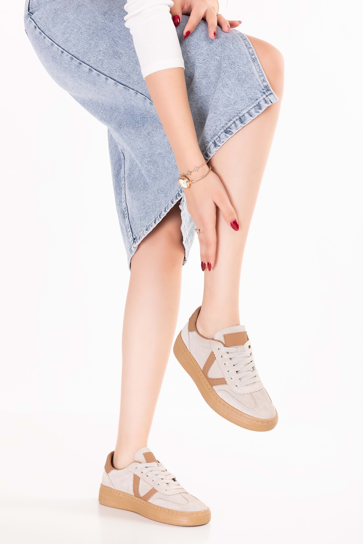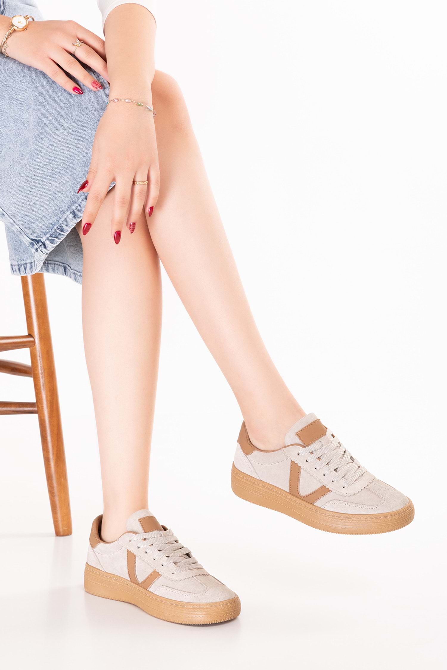 Gondol Içi Dışı Hakiki Deri Süet Anatomik Taban Hafif Spor Ayakkabı es.170 - Bej Süet - 36