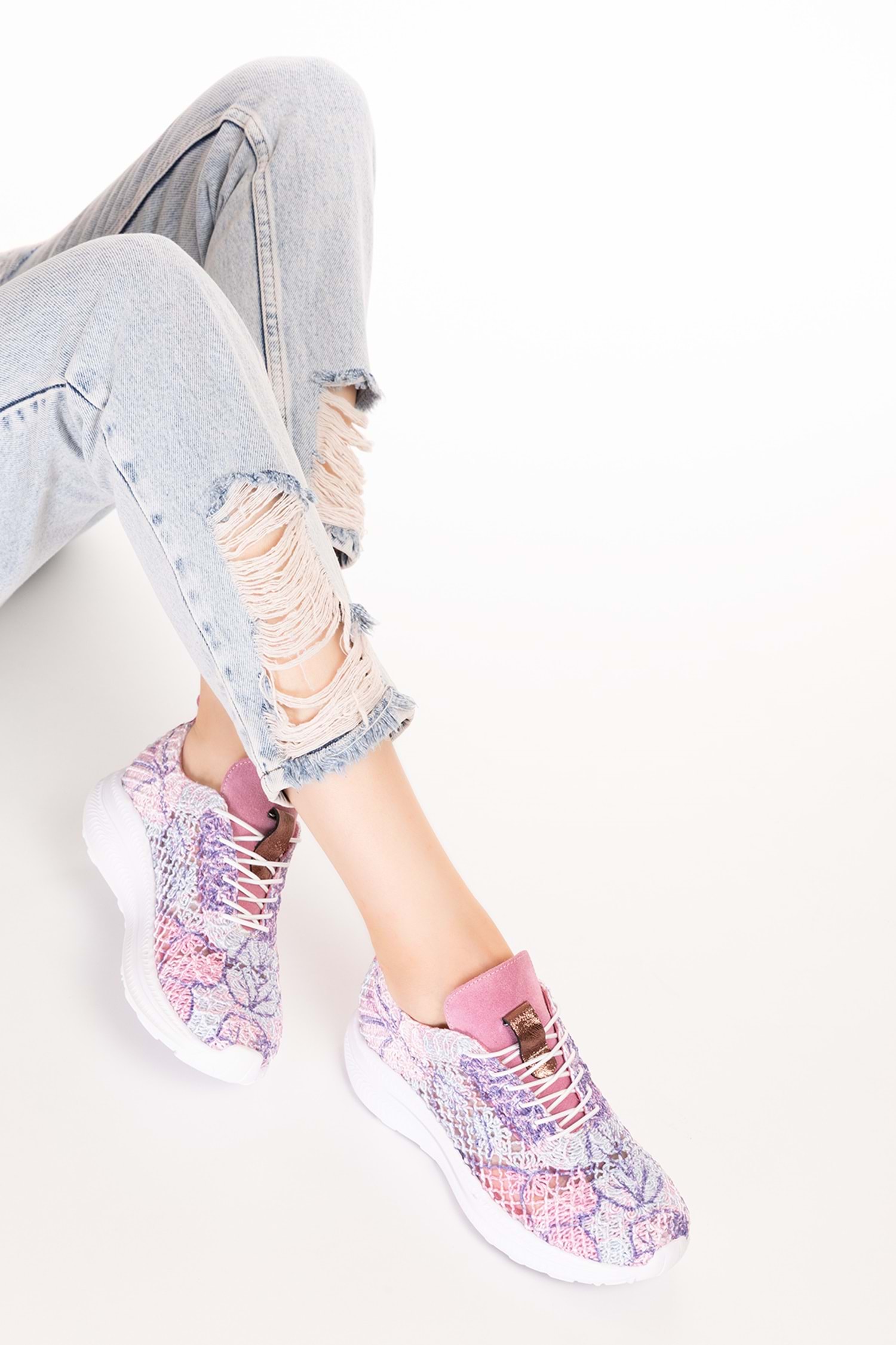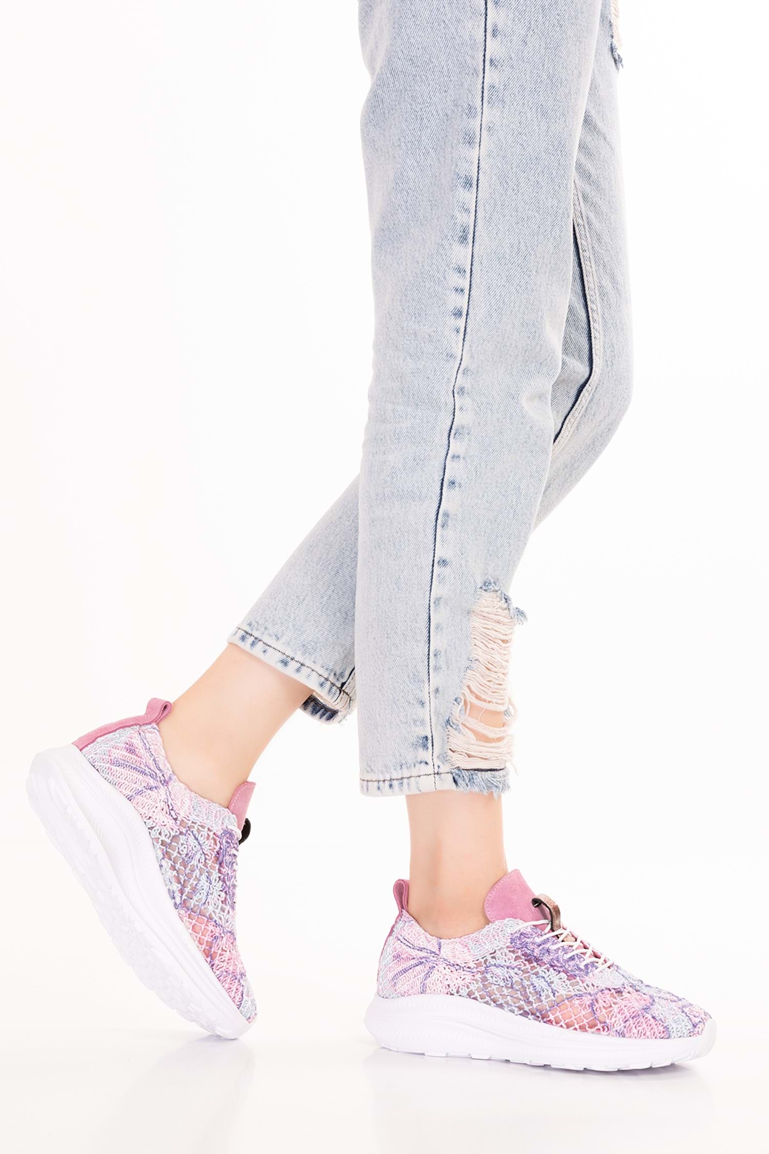 Gondol Kadın İçi Deri Dışı Dantel Hafif Spor Ayakkabı belx.4391 - Pembe Desen - 36