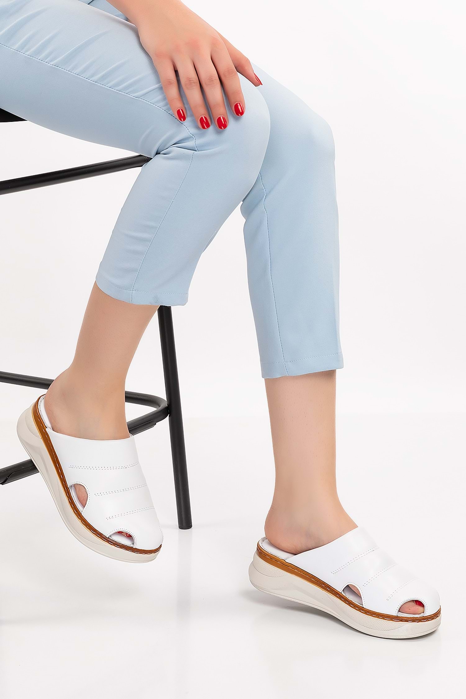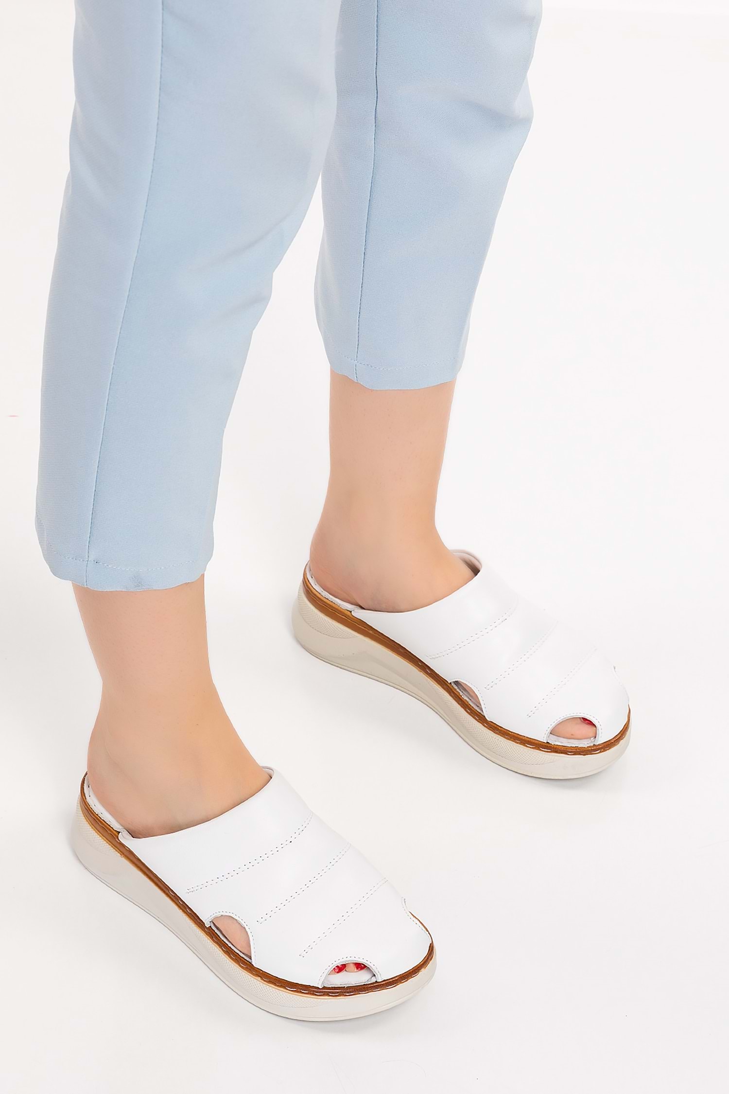 Gondol Hakiki Deri Anatomik Taban Dolgu Topuk Sabo Terlik slt.227 - Beyaz - 36