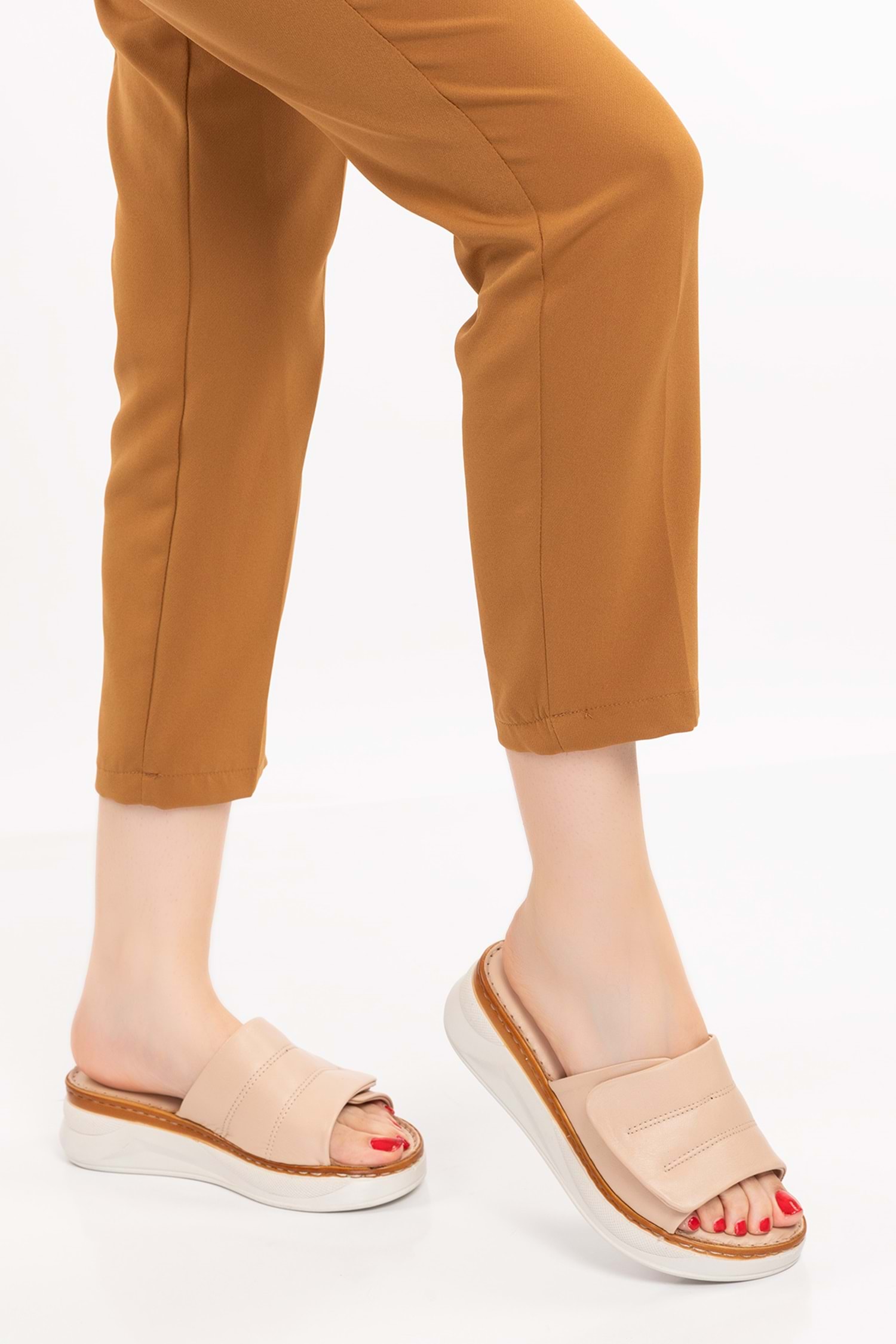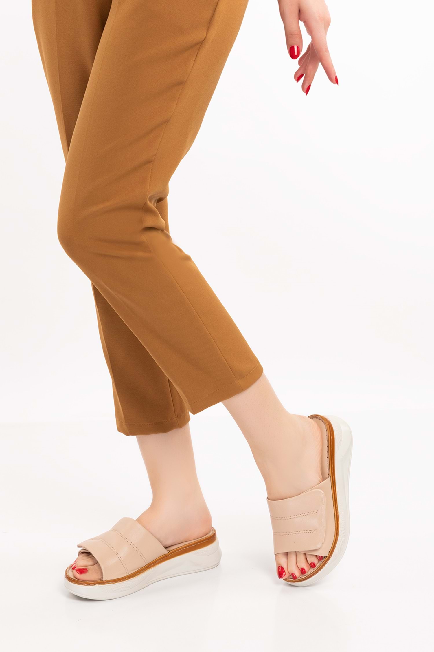 Gondol Hakiki Deri Anatomik Taban Dolgu Topuk Terlik slt.225 - Bej - 36