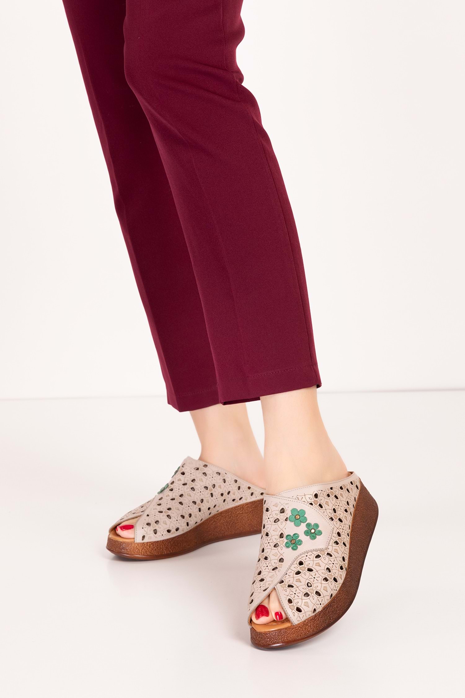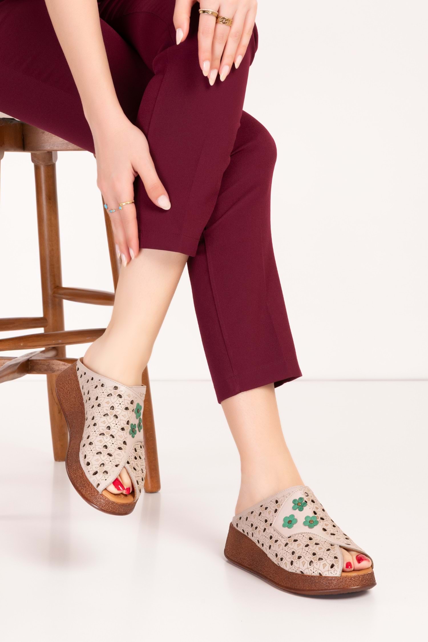 * İçi Dışı Hakiki Deri * Topuk 5 cm * Çiçek Detaylı * Standart Kalıp