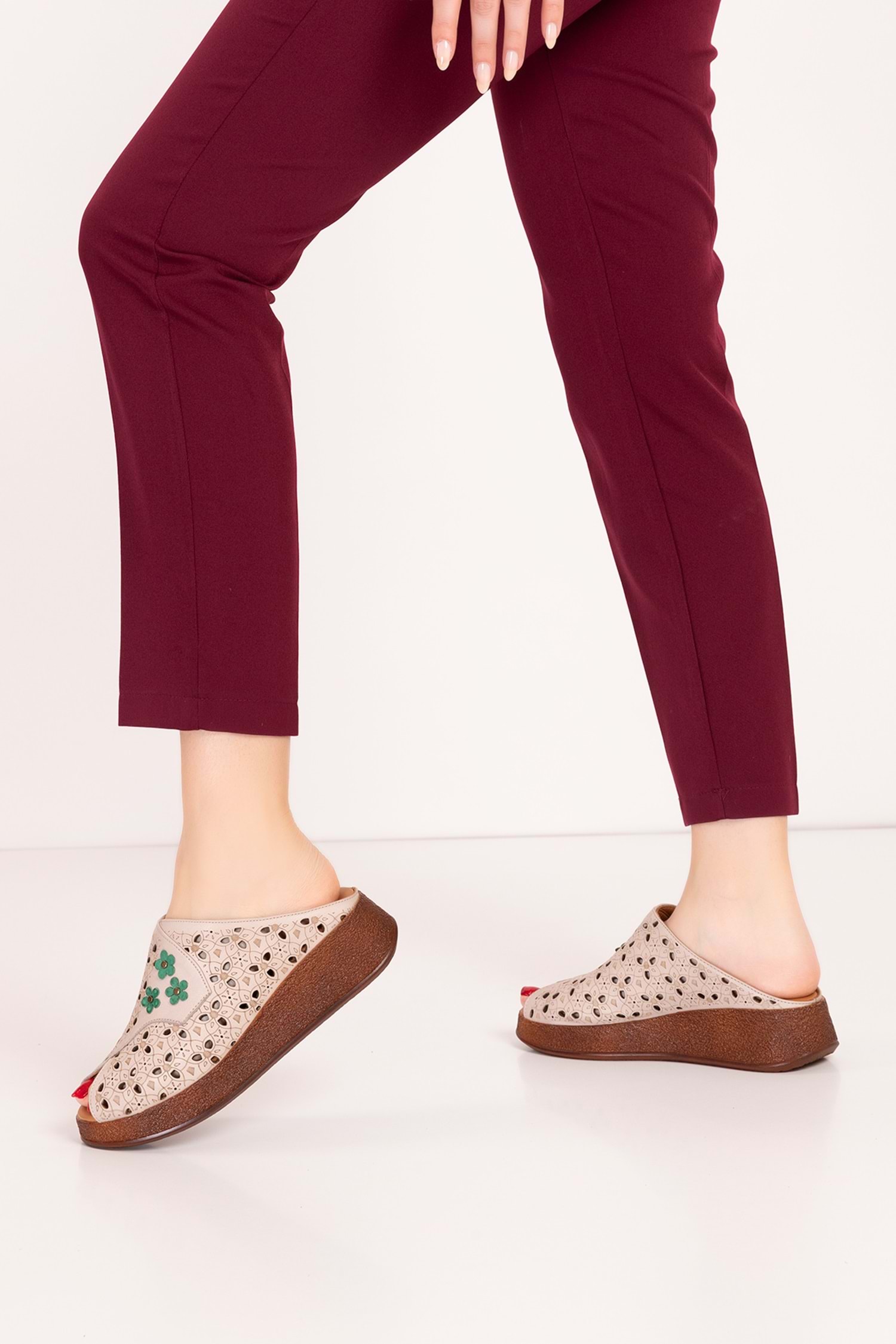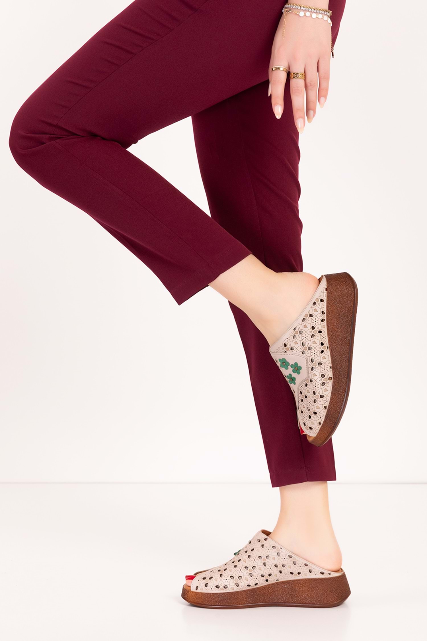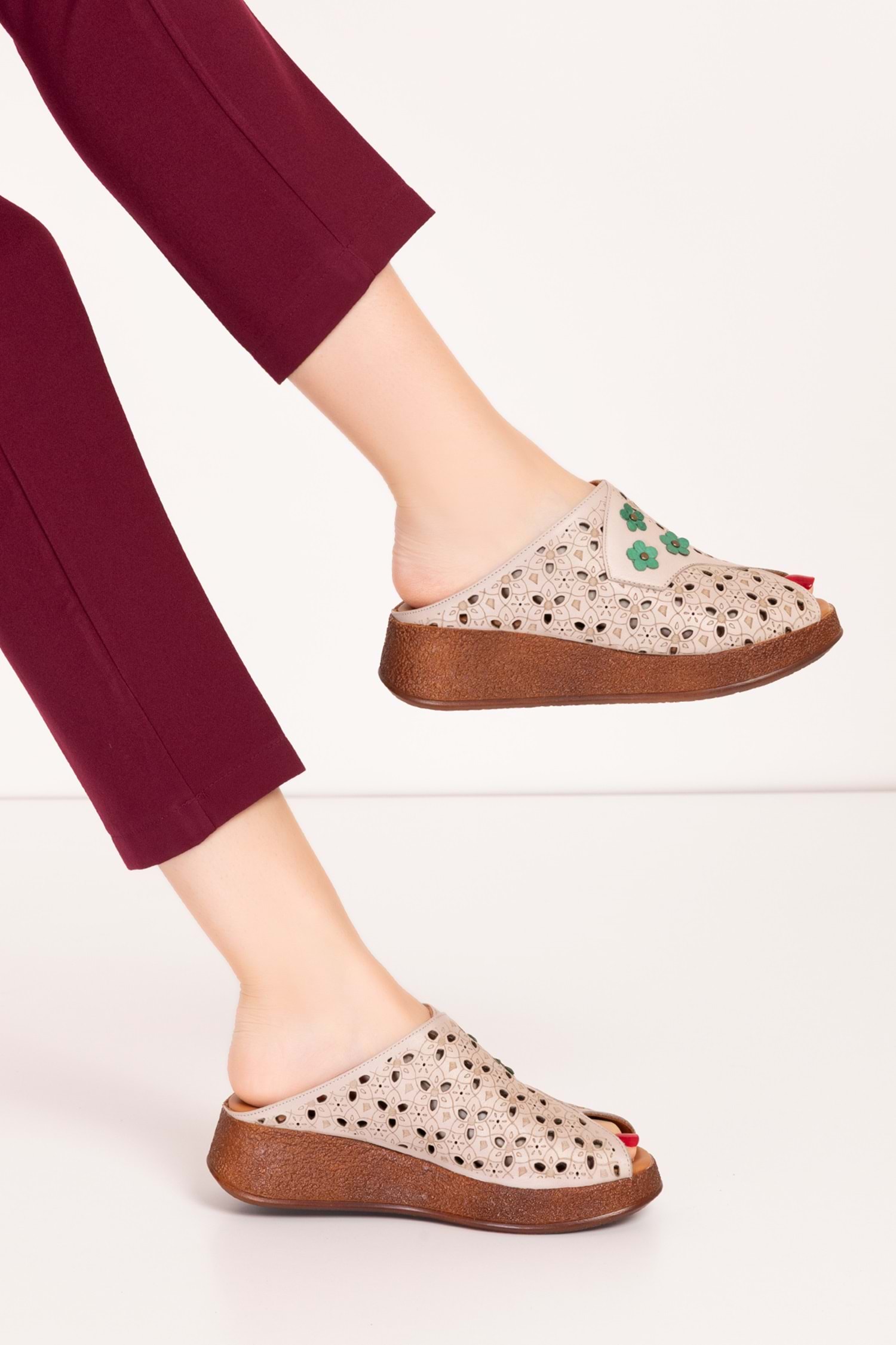* İçi Dışı Hakiki Deri * Topuk 5 cm * Çiçek Detaylı * Standart Kalıp