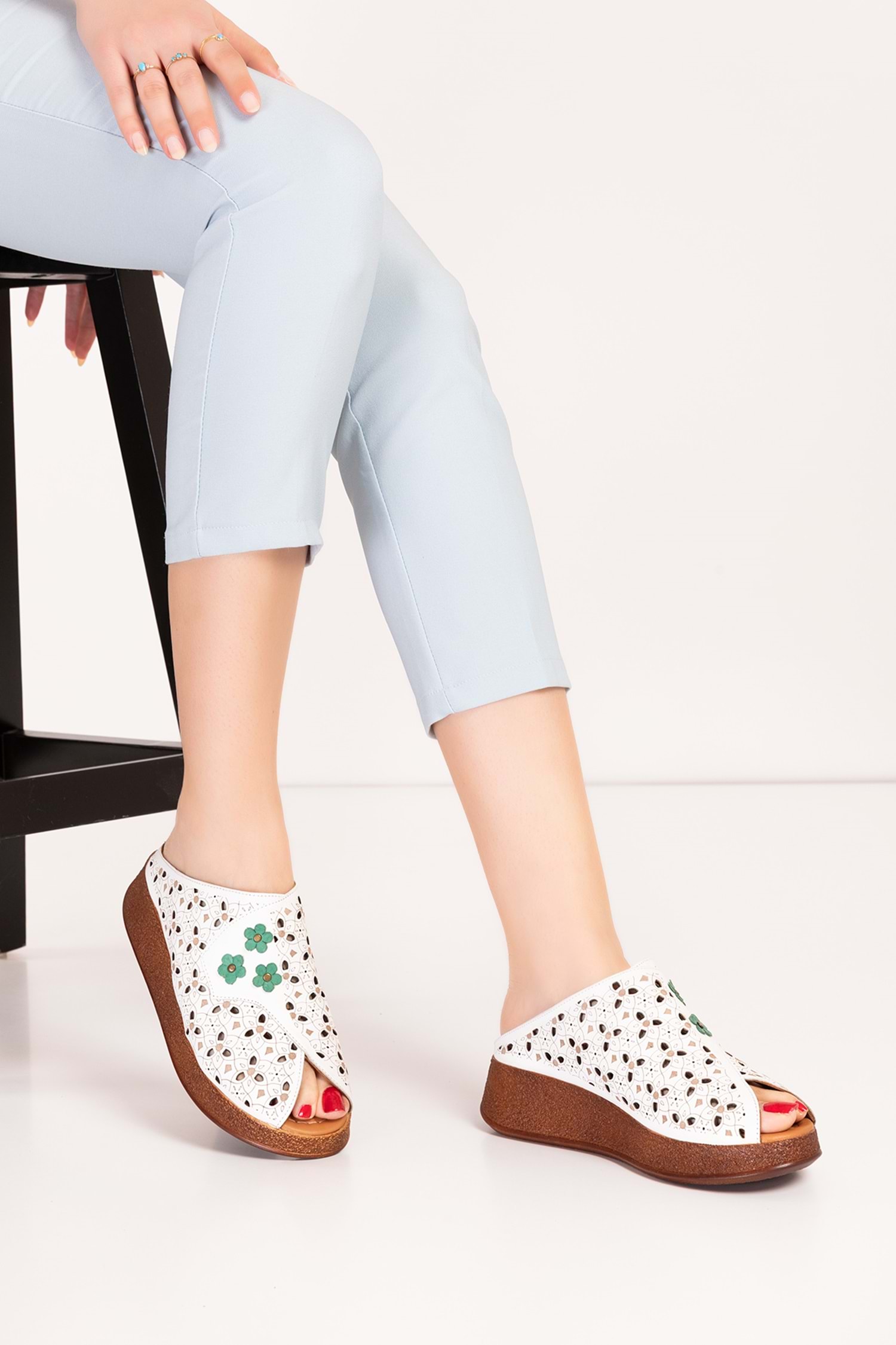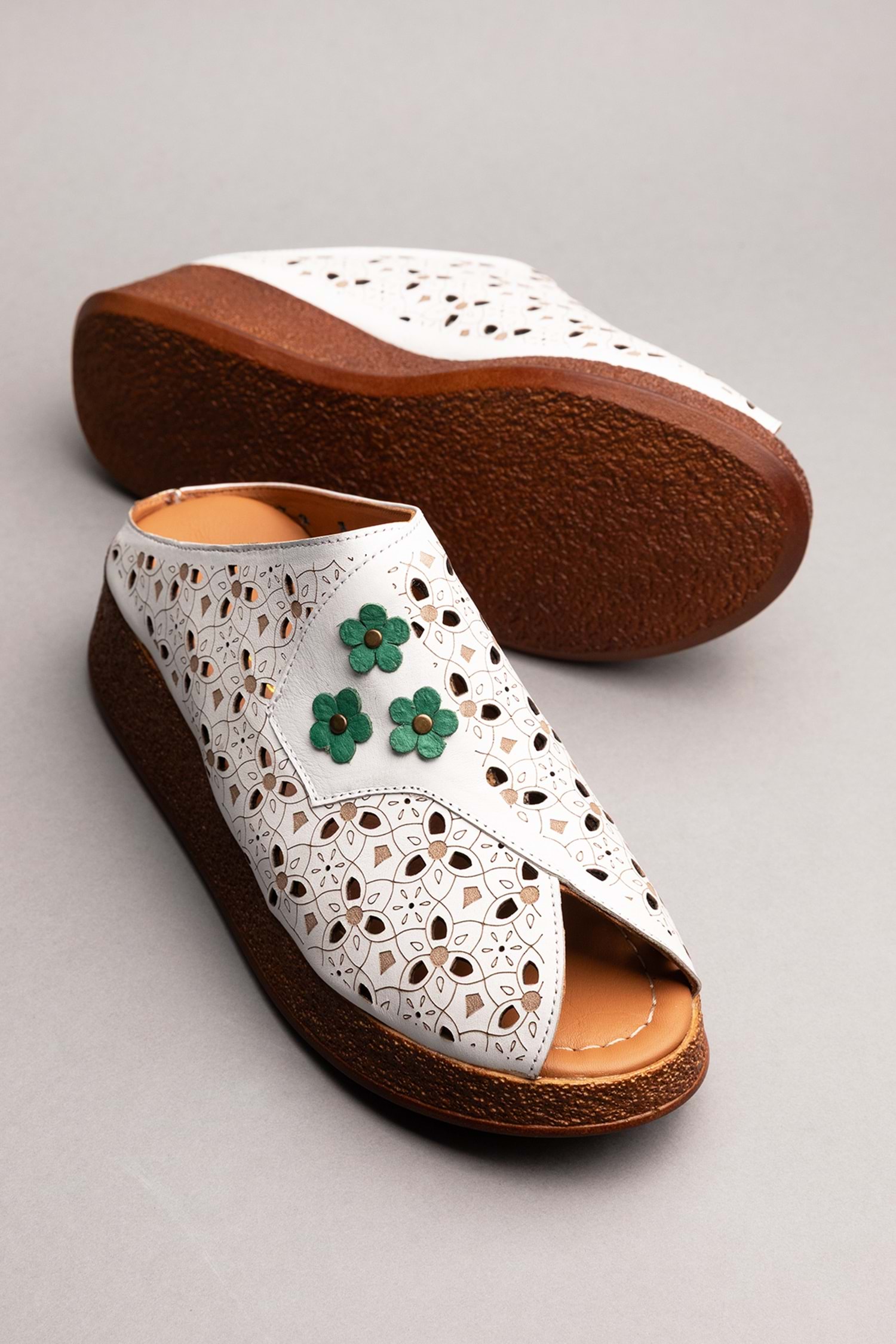 * İçi Dışı Hakiki Deri * Topuk 5 cm * Çiçek Detaylı * Standart Kalıp