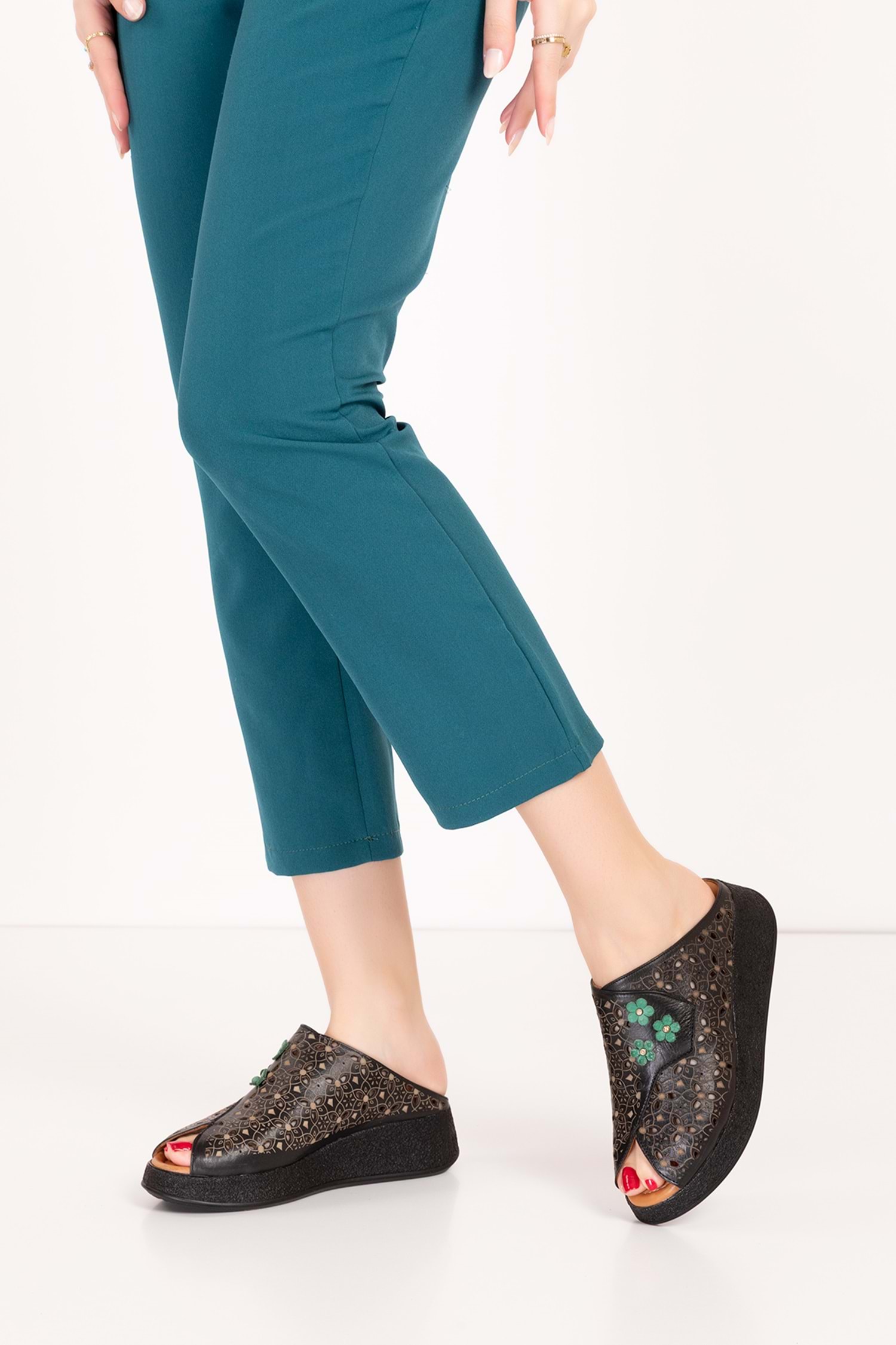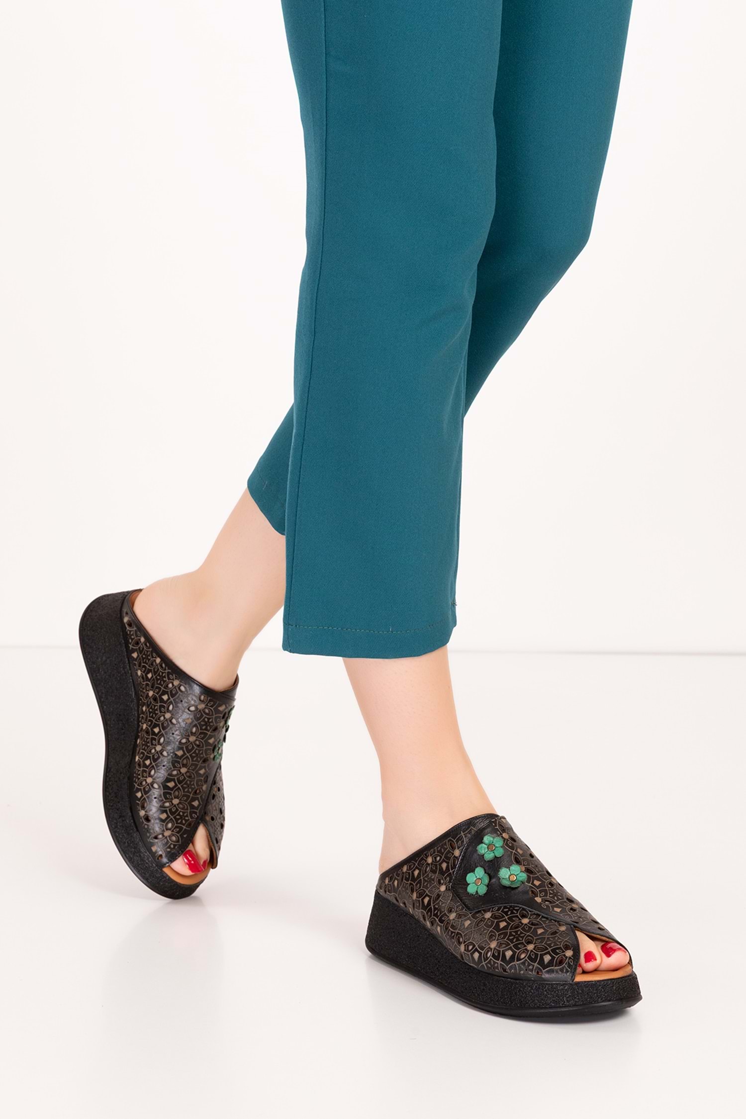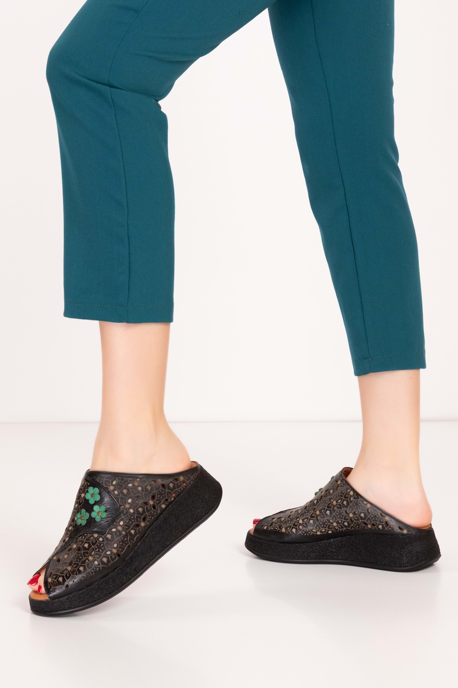 * İçi Dışı Hakiki Deri * Topuk 5 cm * Çiçek Detaylı * Standart Kalıp