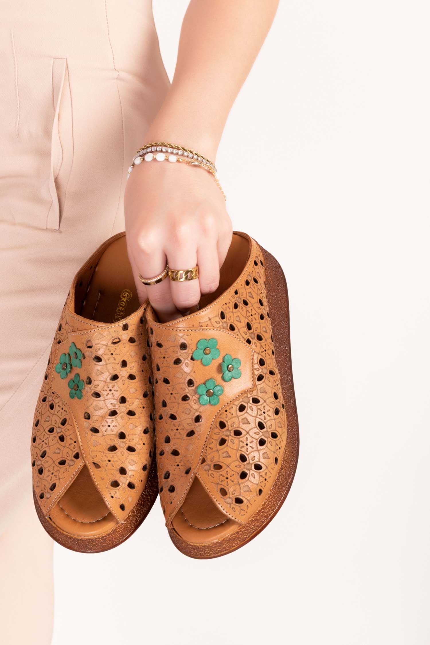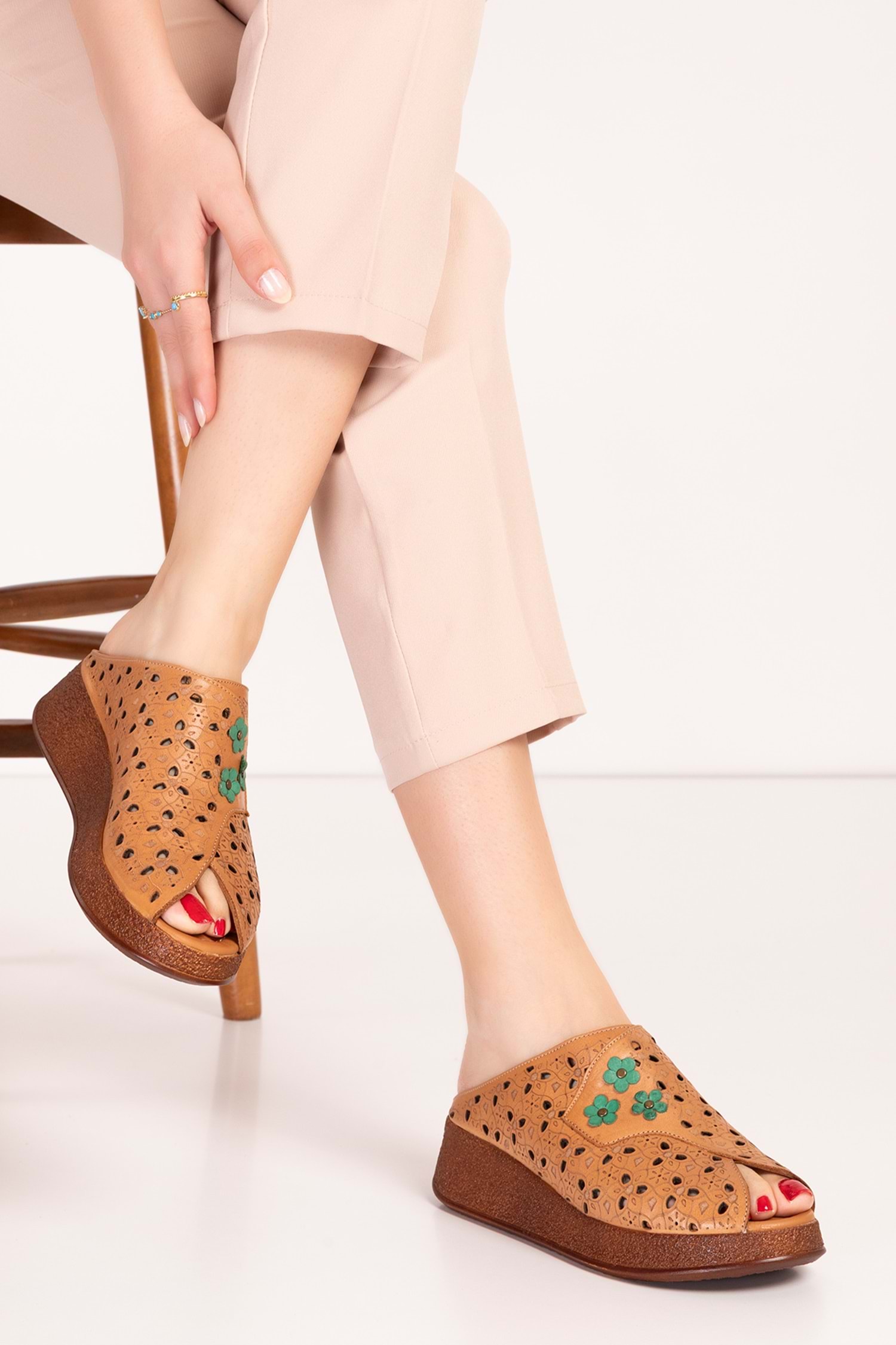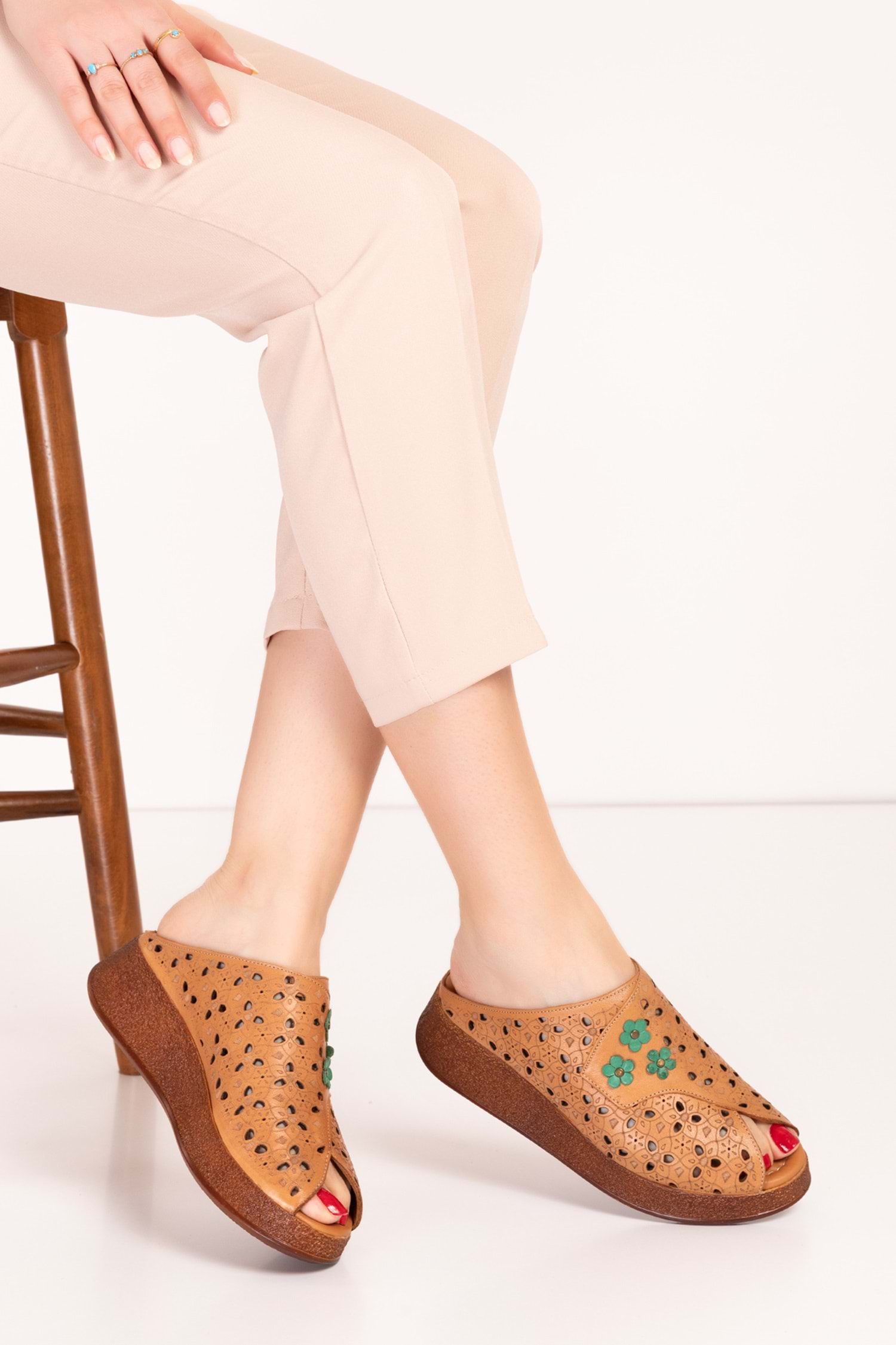 * İçi Dışı Hakiki Deri * Topuk 5 cm * Çiçek Detaylı * Standart Kalıp