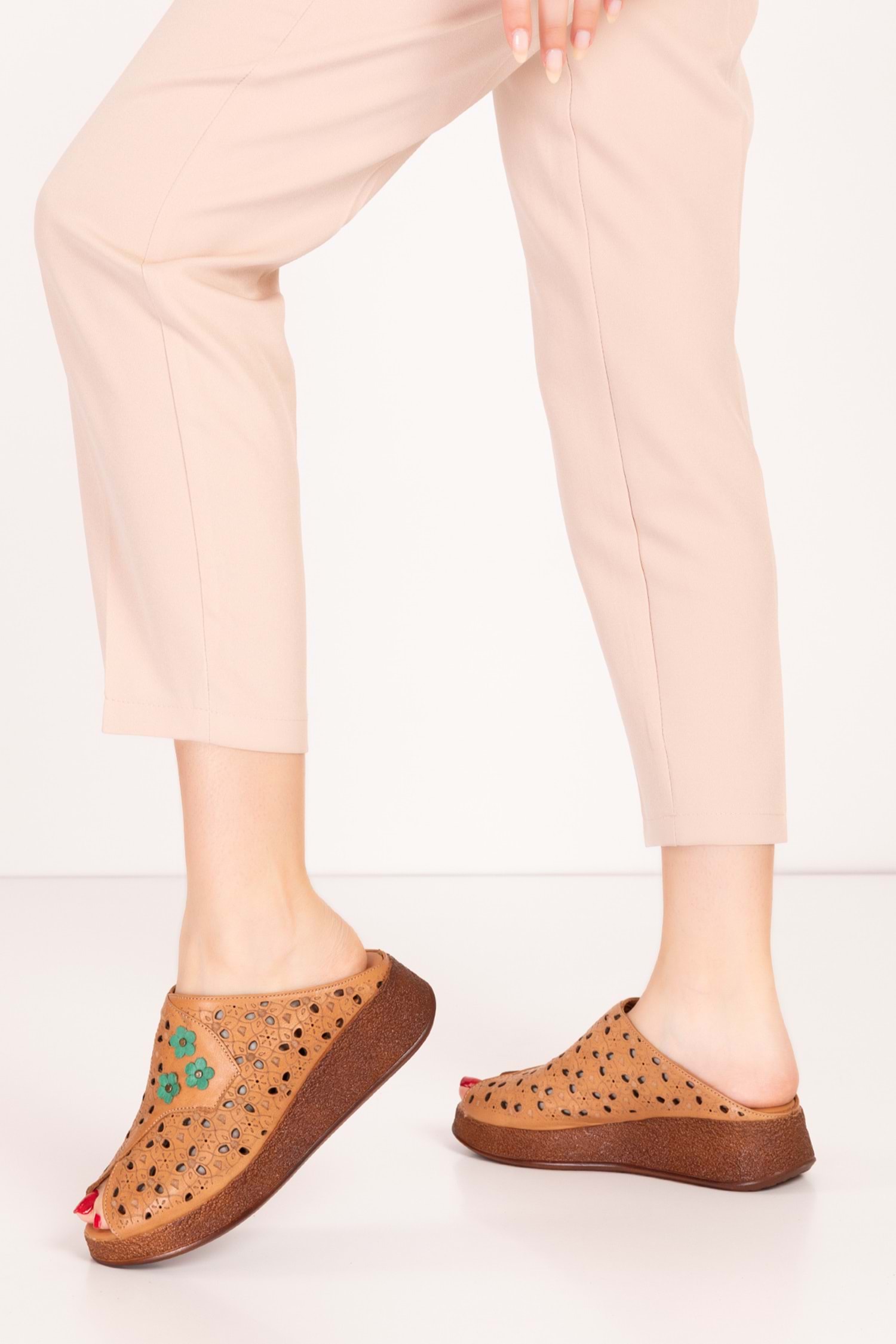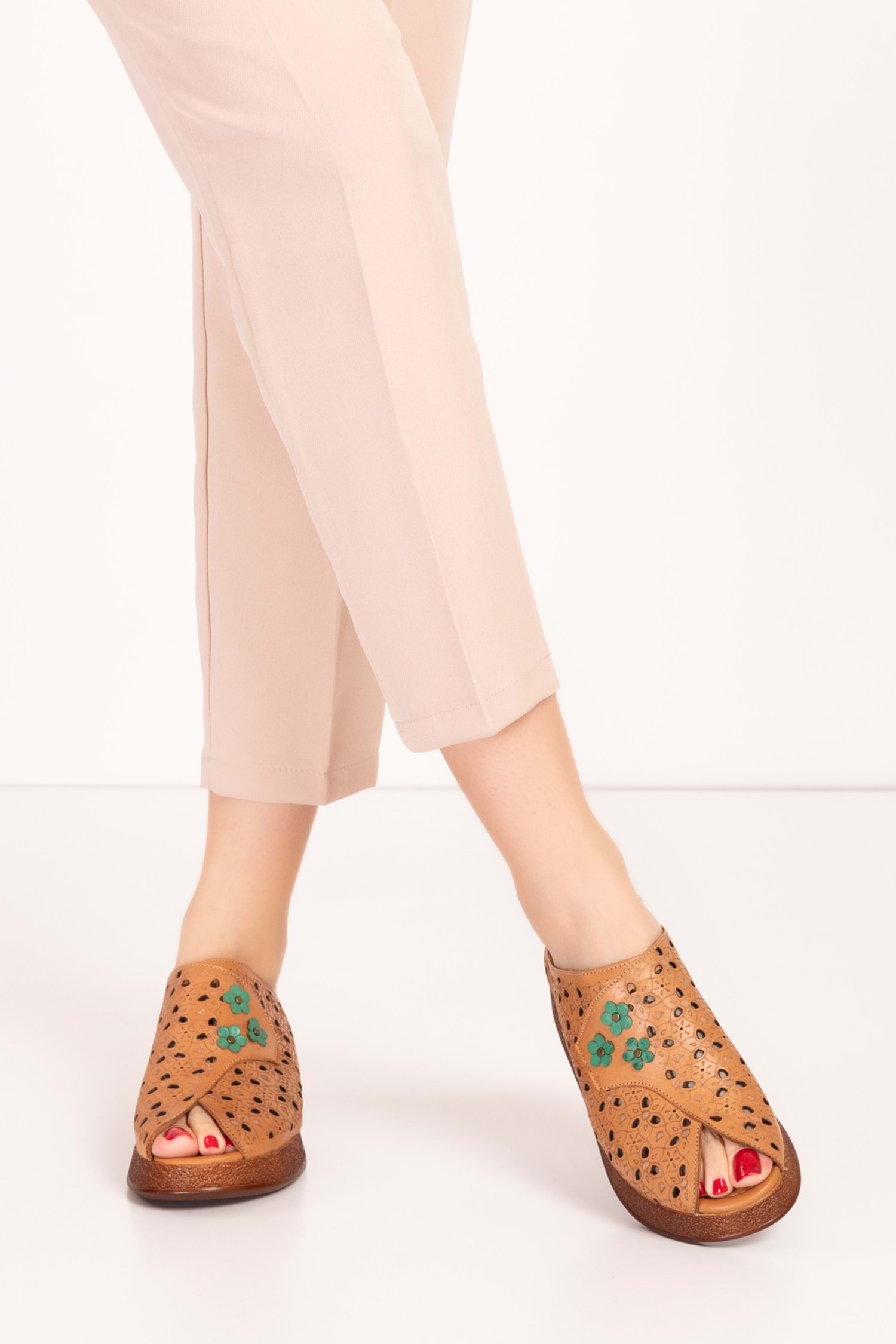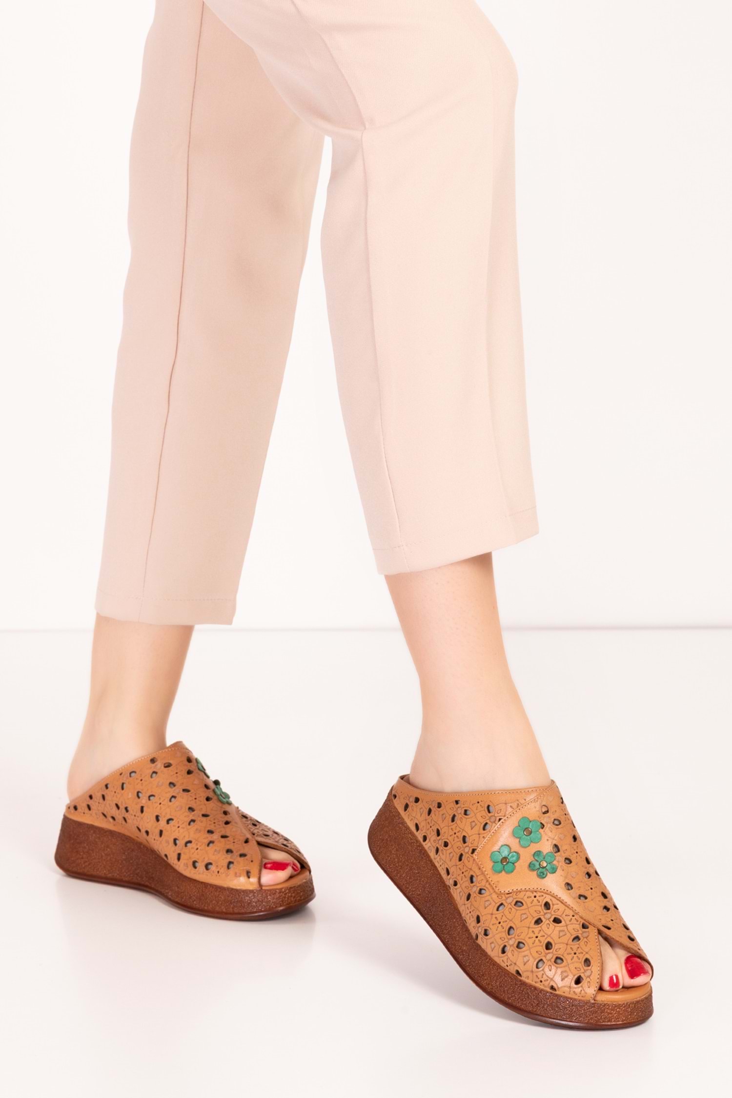 * İçi Dışı Hakiki Deri * Topuk 5 cm * Çiçek Detaylı * Standart Kalıp