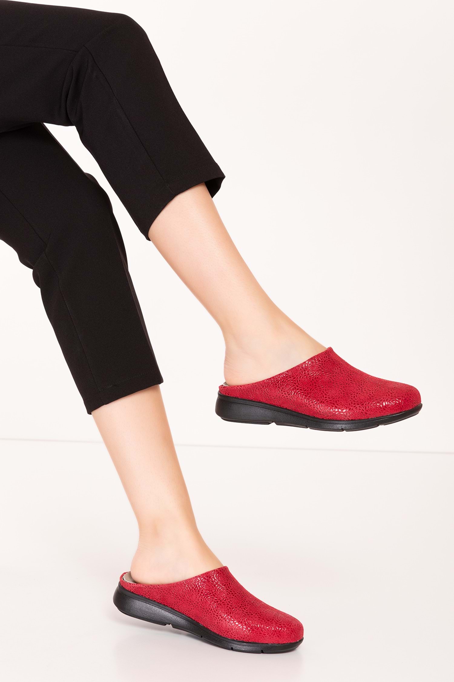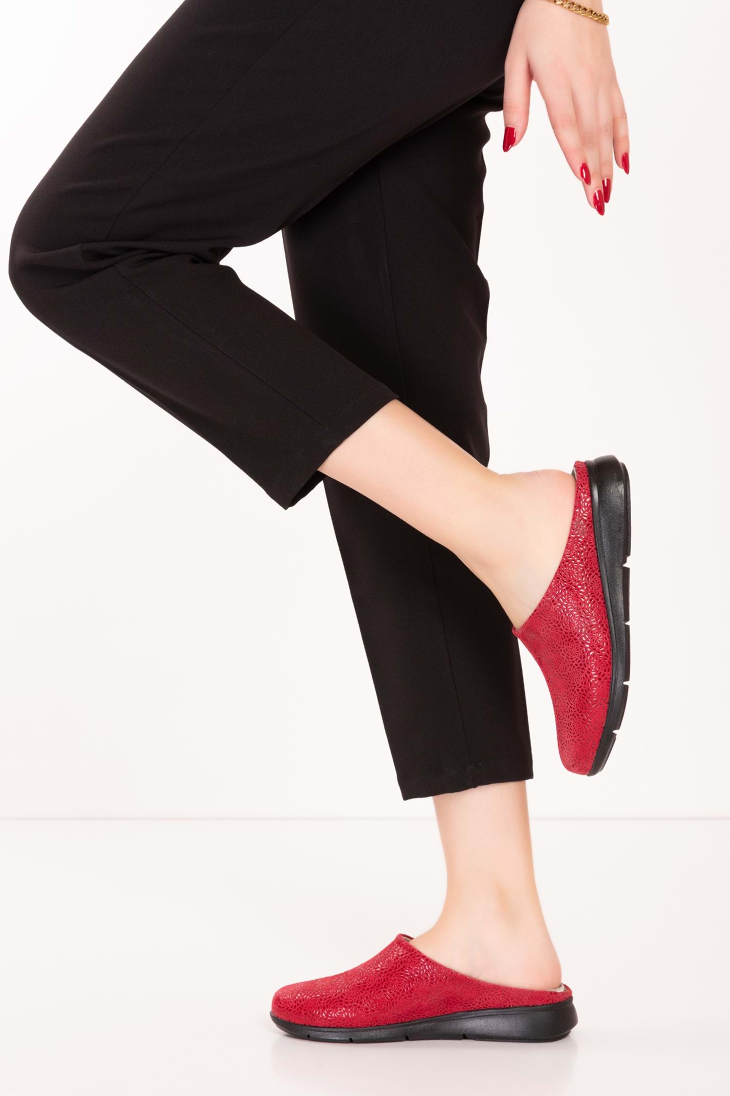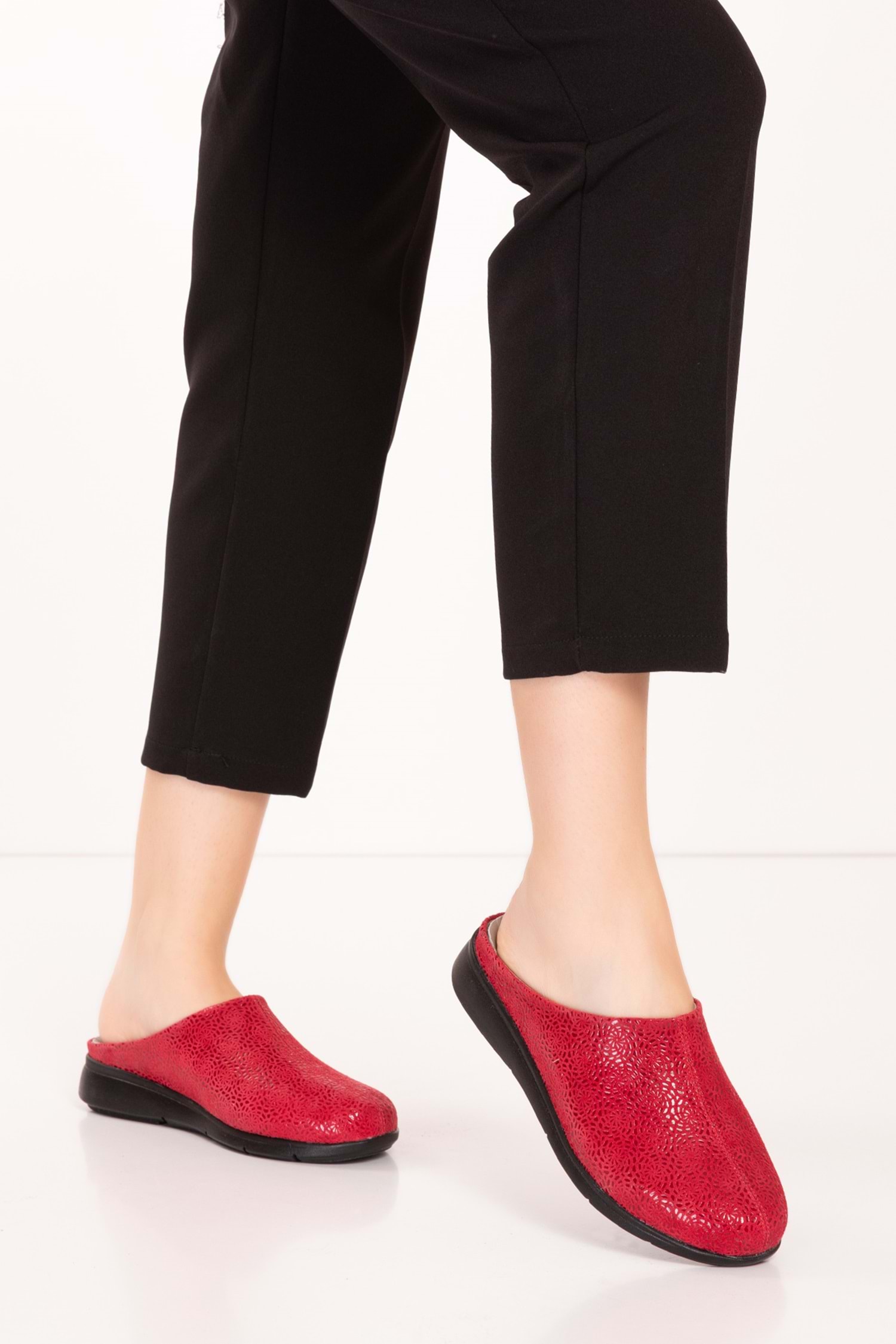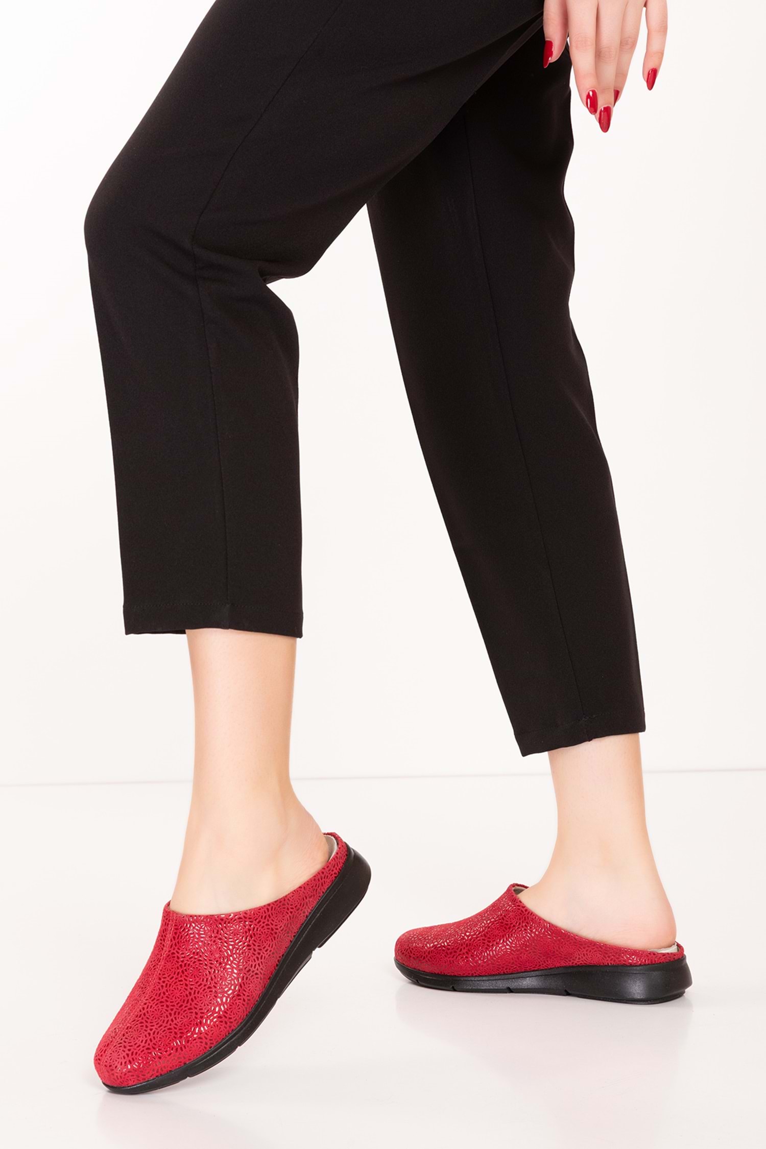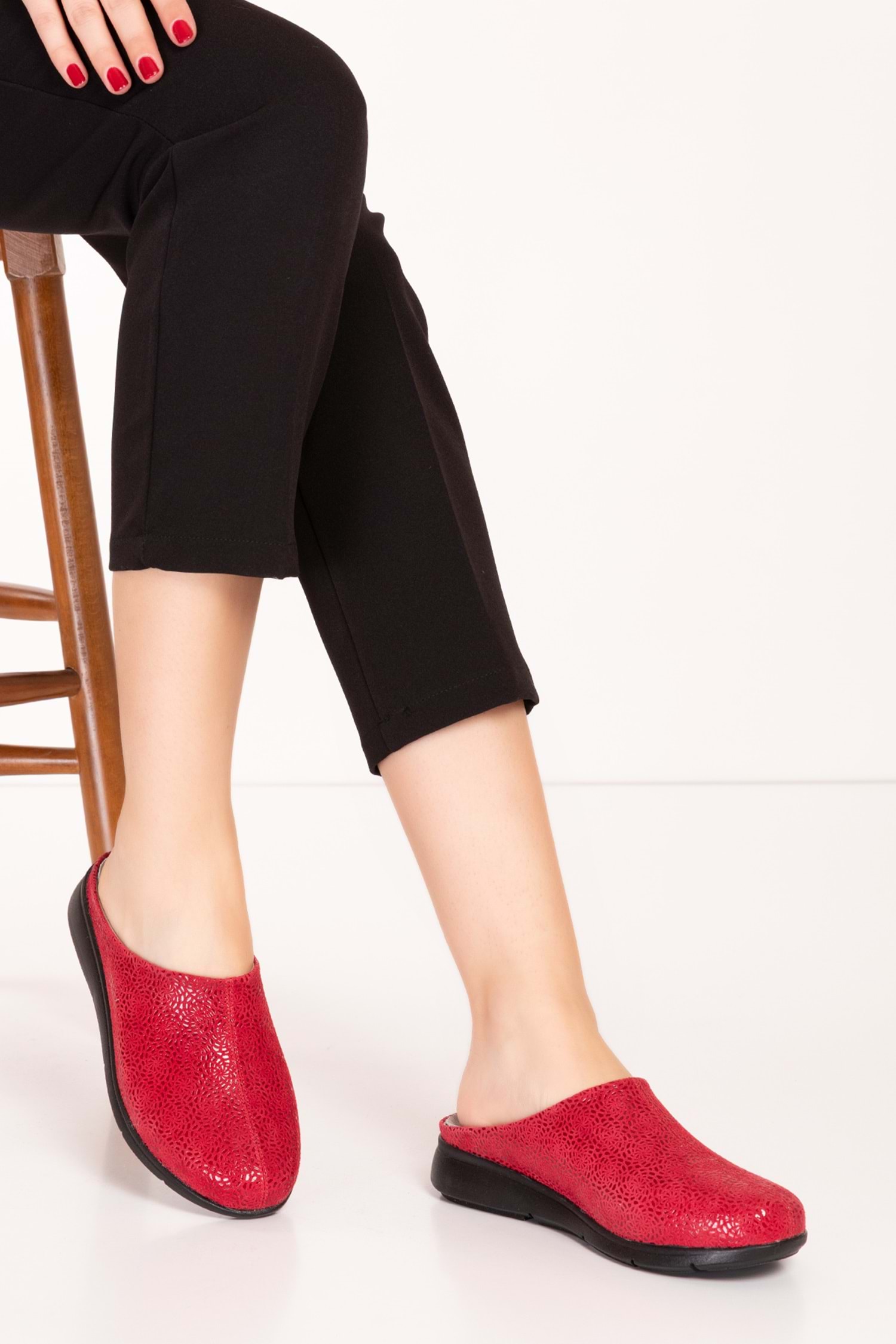 Gondol Hakiki Deri Günlük Rahat Hafif Sabo Gondol Terlik vdt.916 - kırmızı - 36