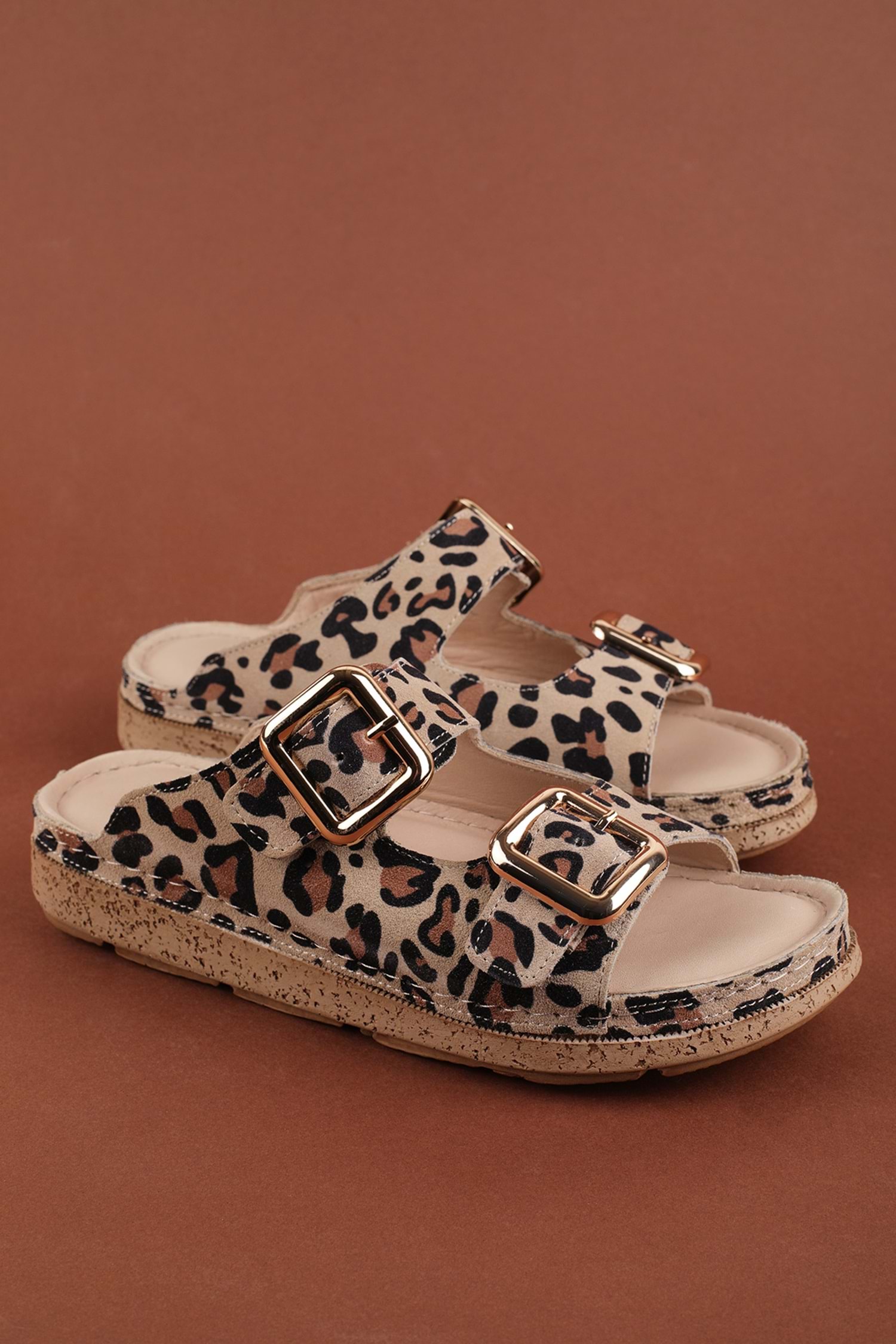 Hakiki Deri Çift Tokalı Rahat Terlik – 4 cm Topuklu