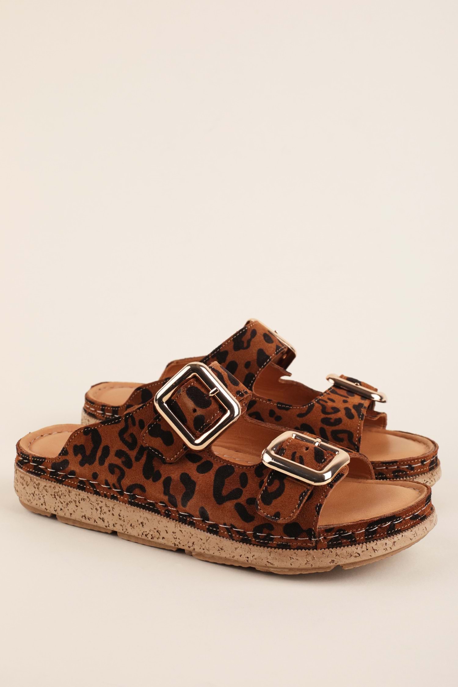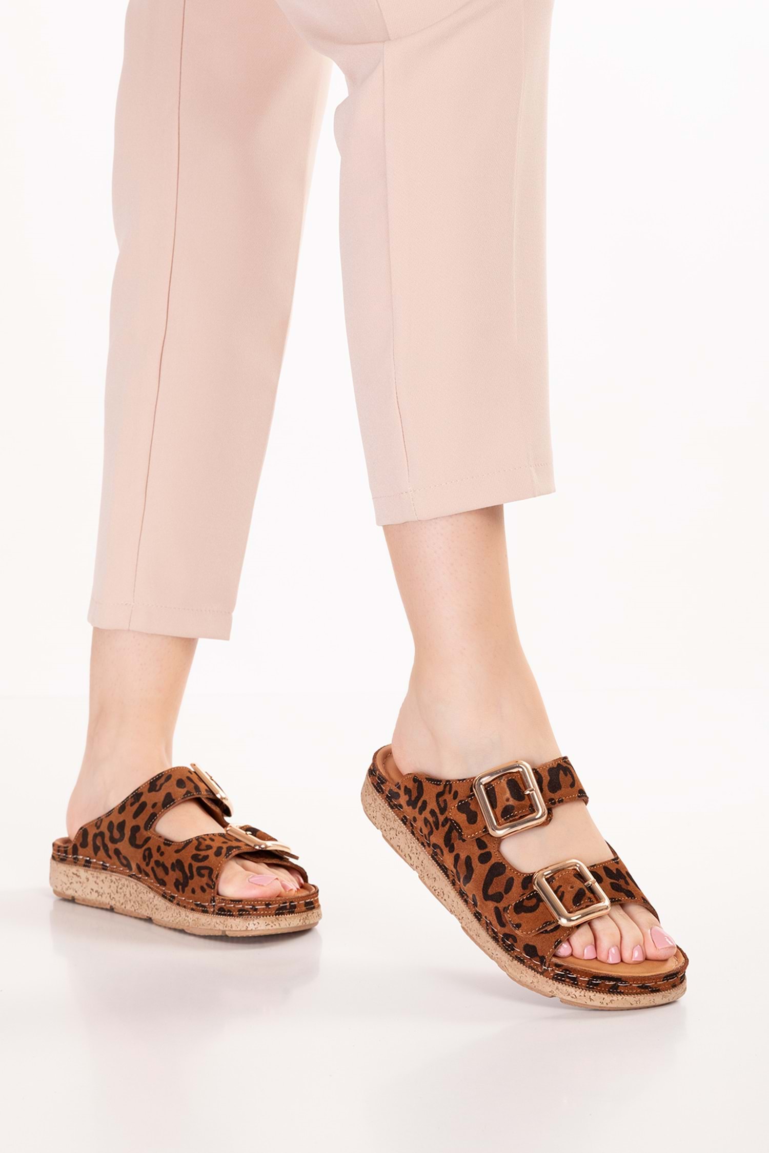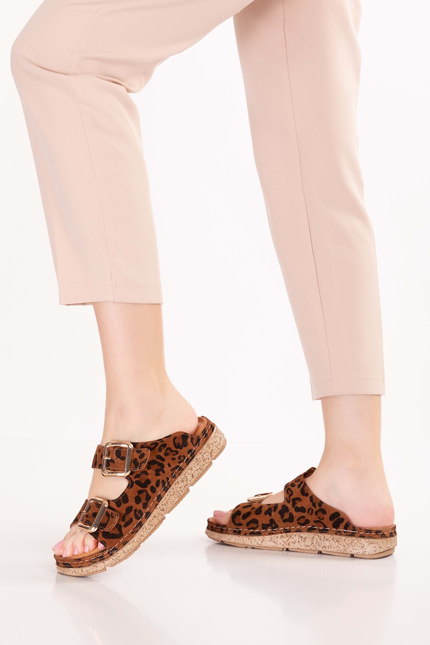 Hakiki Deri Çift Tokalı Rahat Terlik – 4 cm Topuklu