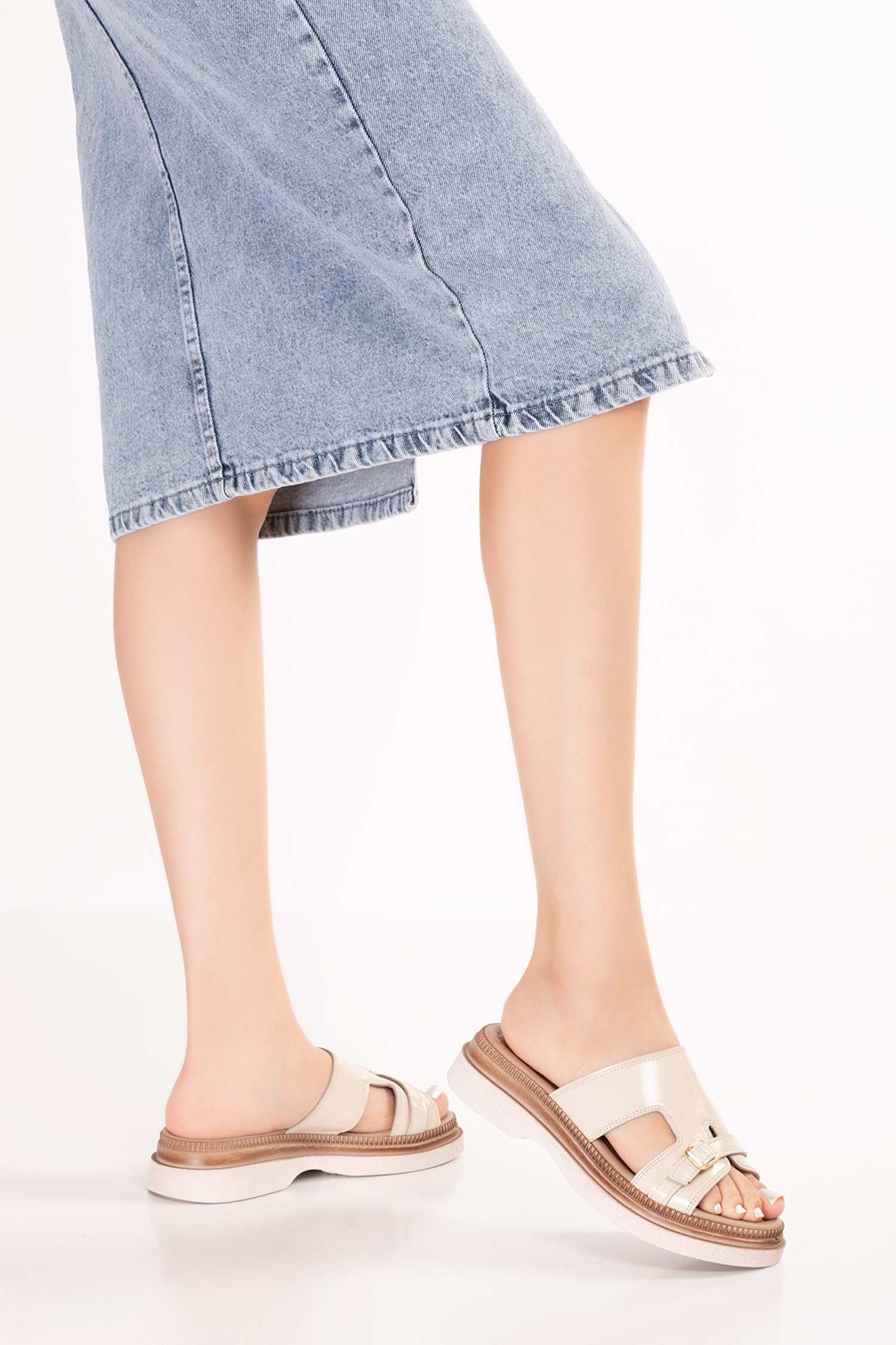 Gondol Hakiki Deri Raht Modern Günlük Terlik ez.6113mt - vizon rugan - 36