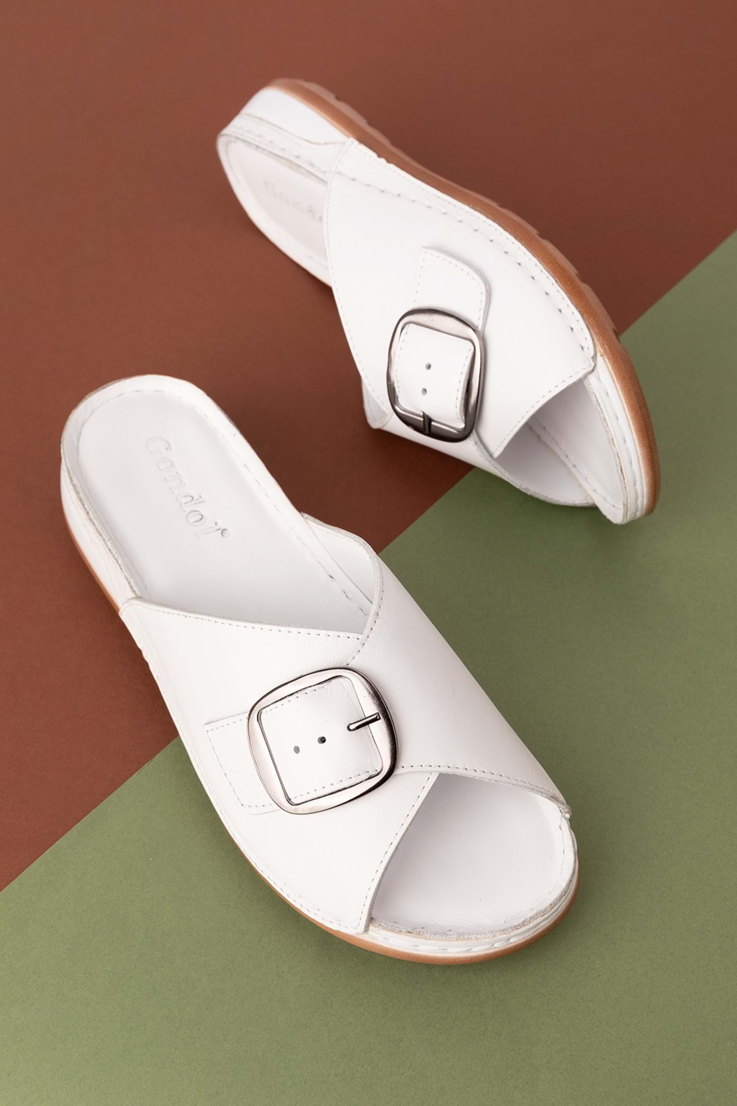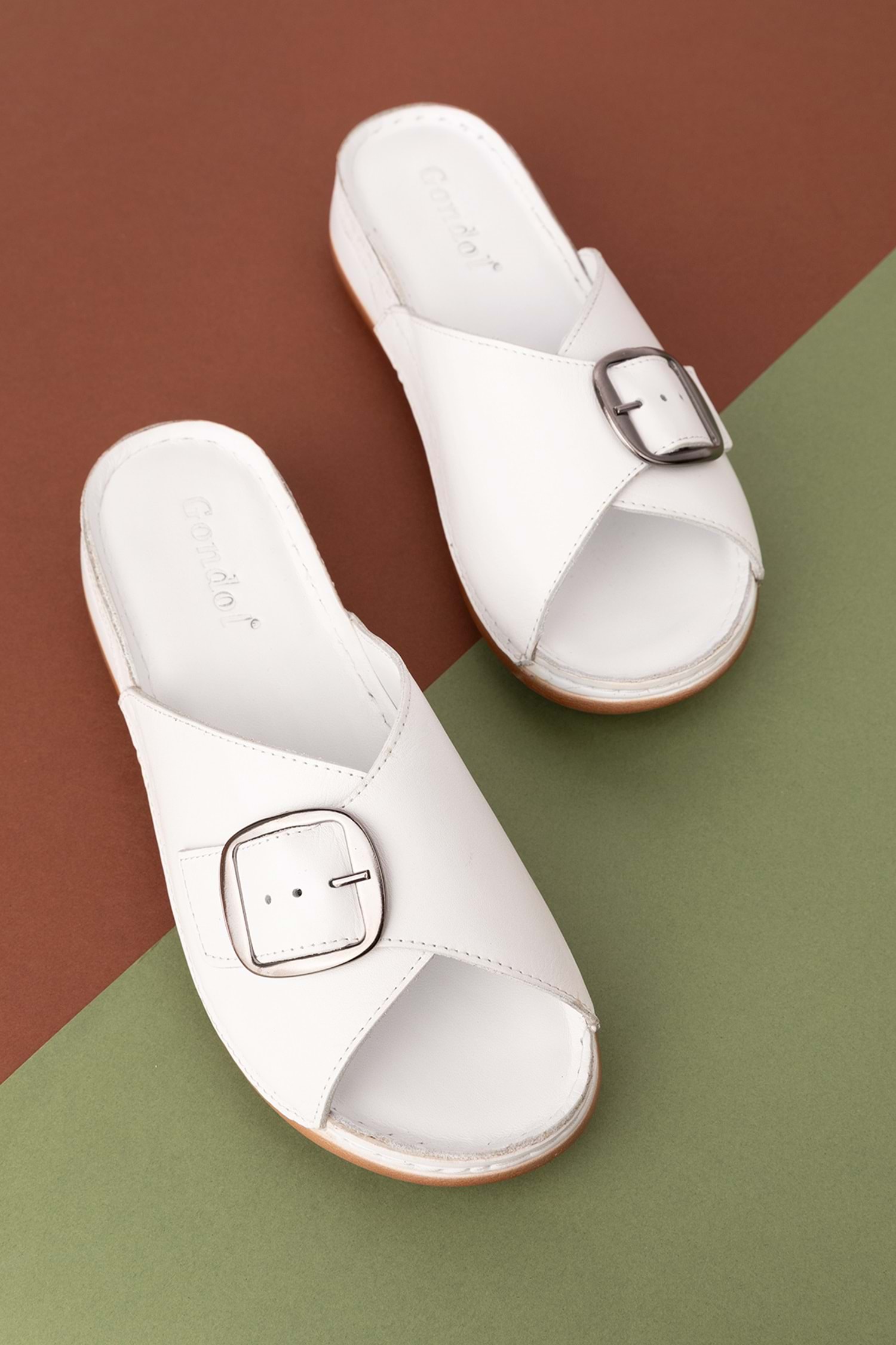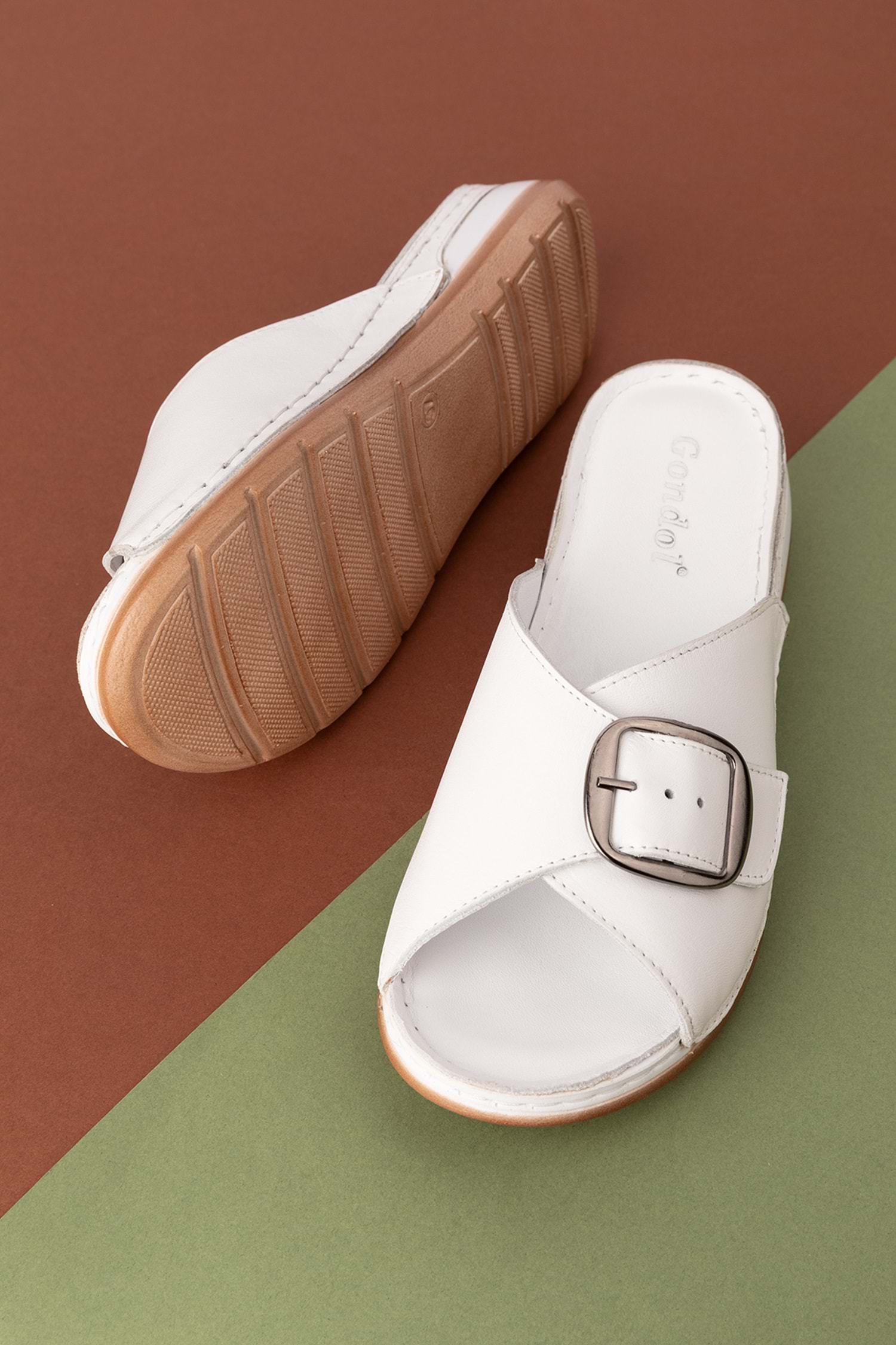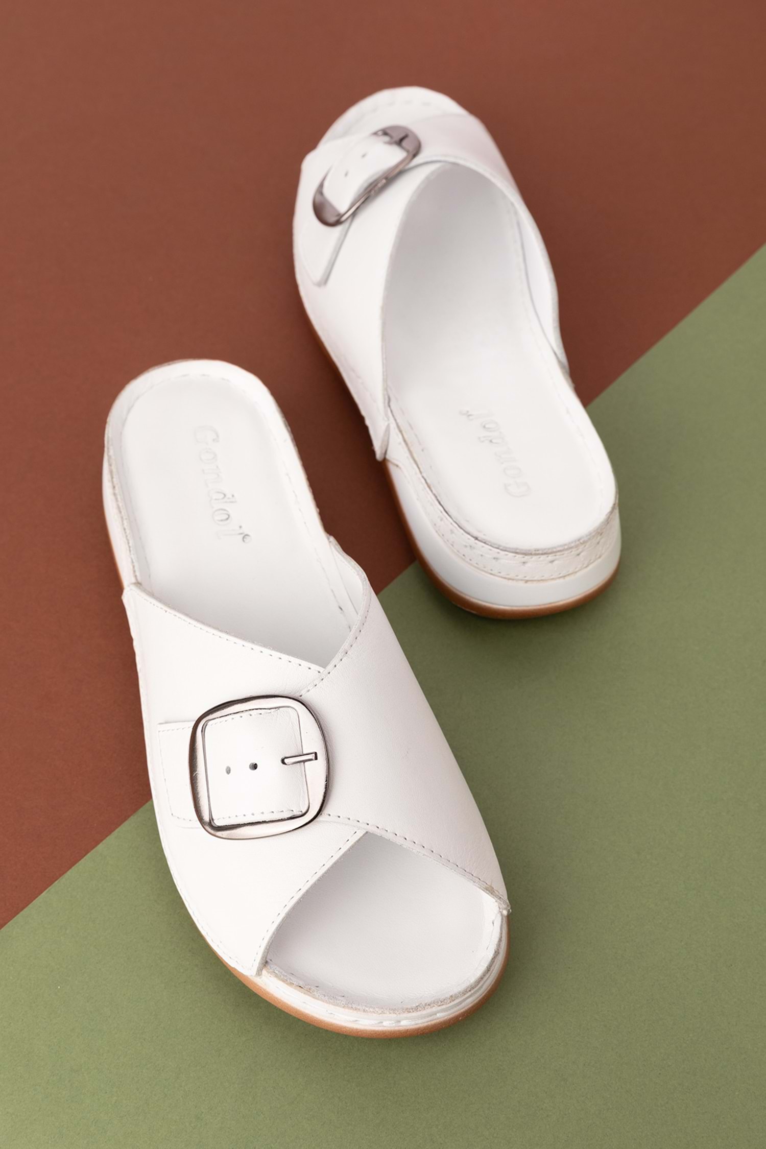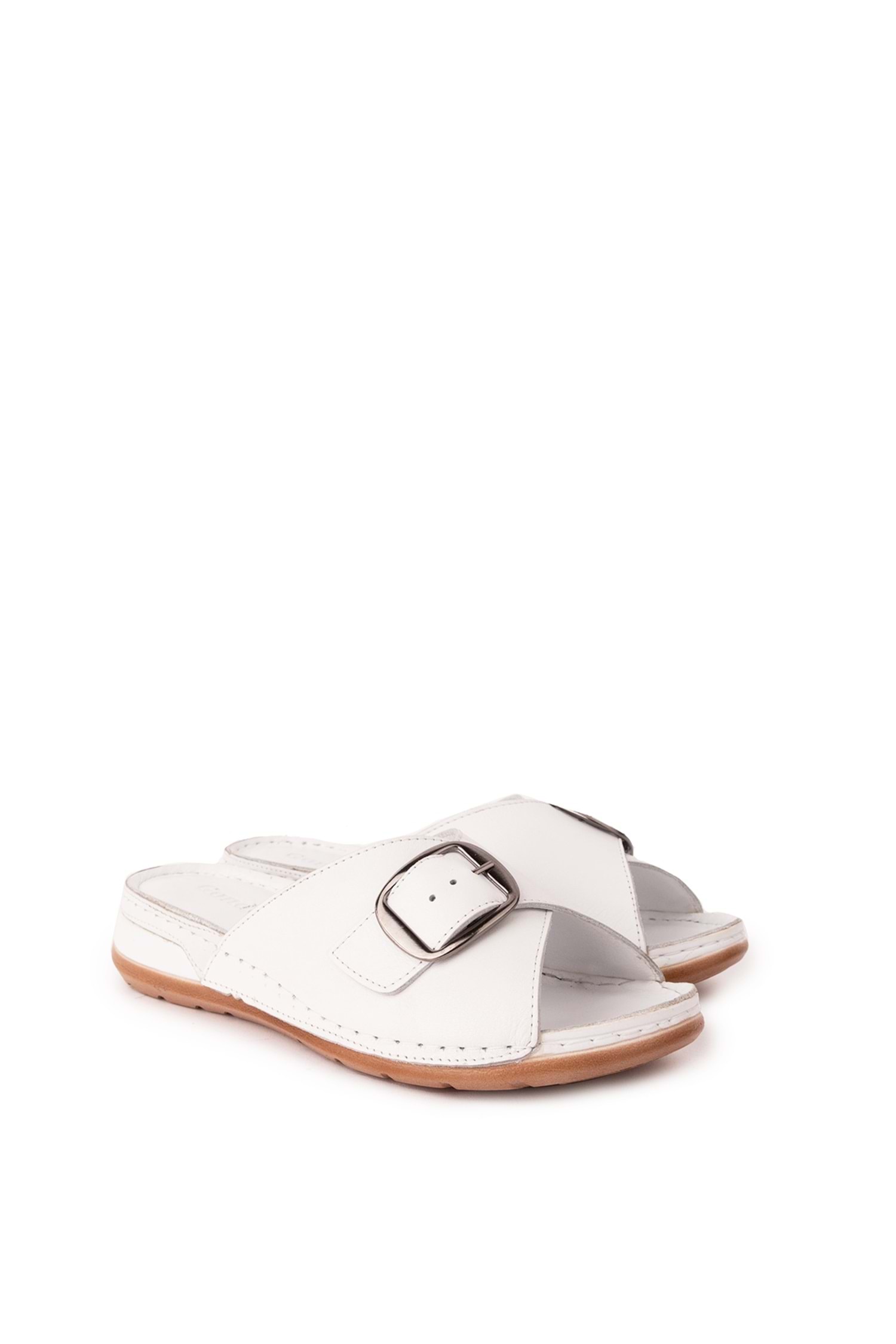 Gondol Kadın Hakiki Deri Anatomik Taban Terlik iz.4608 - Beyaz - 37