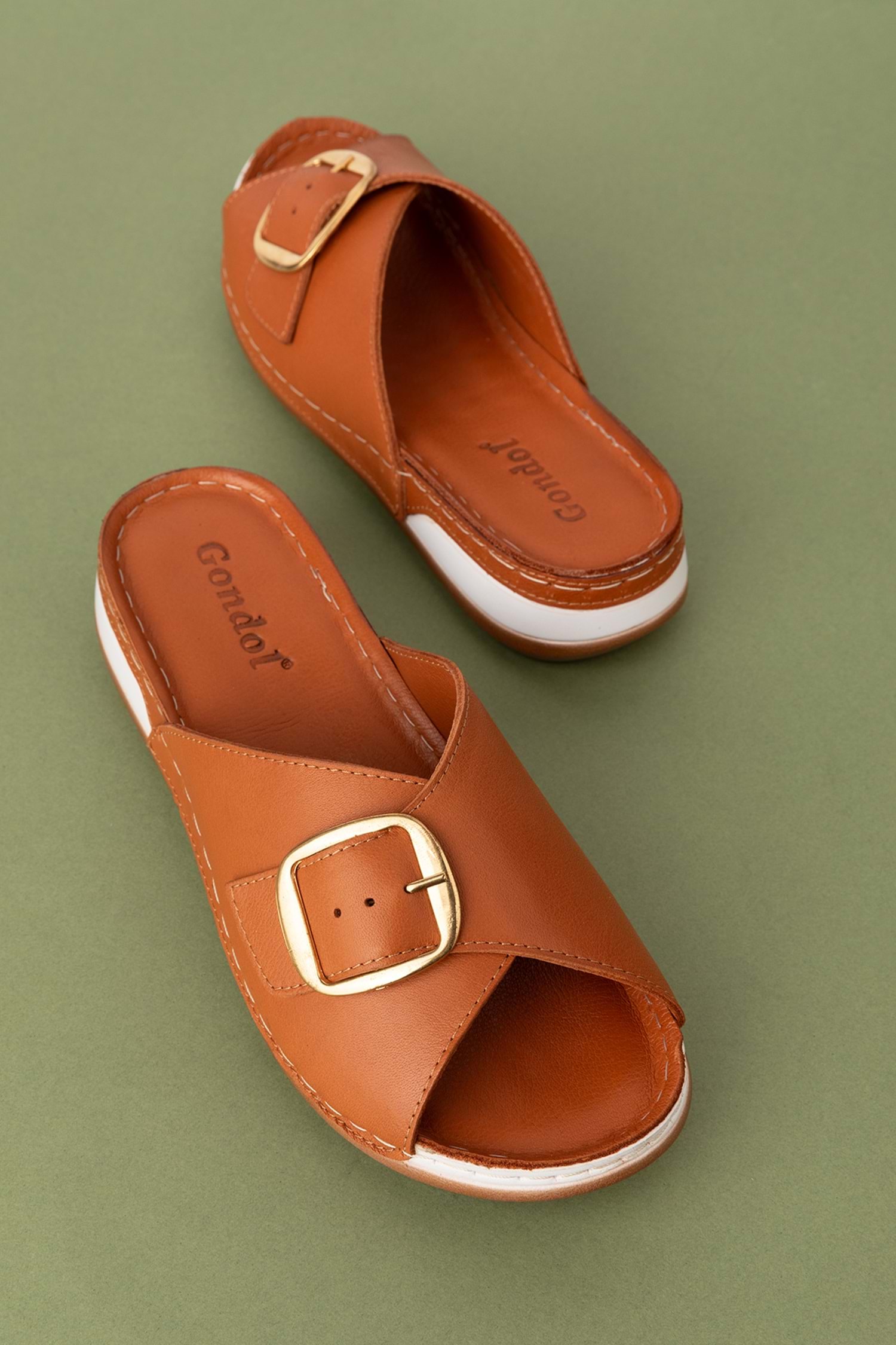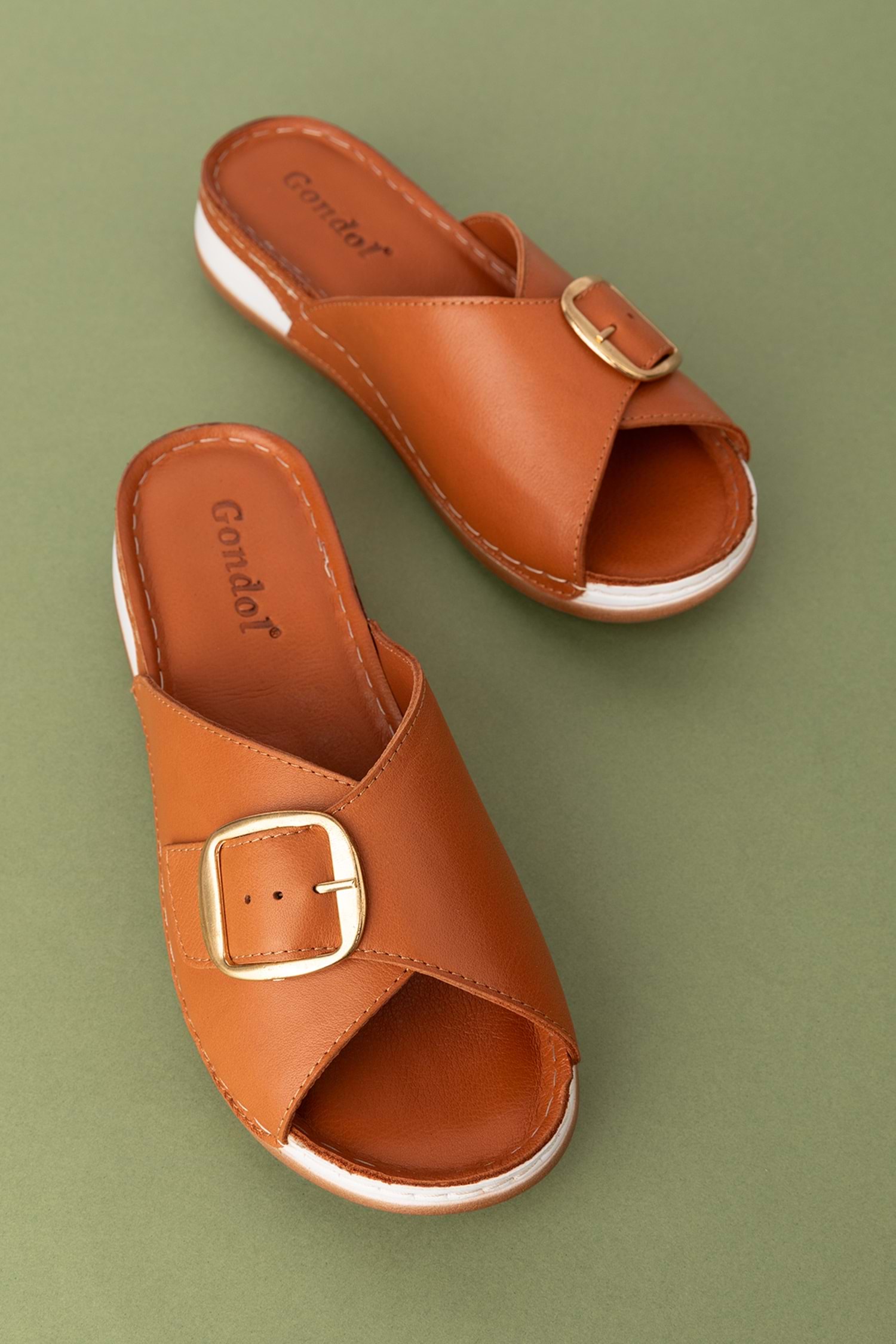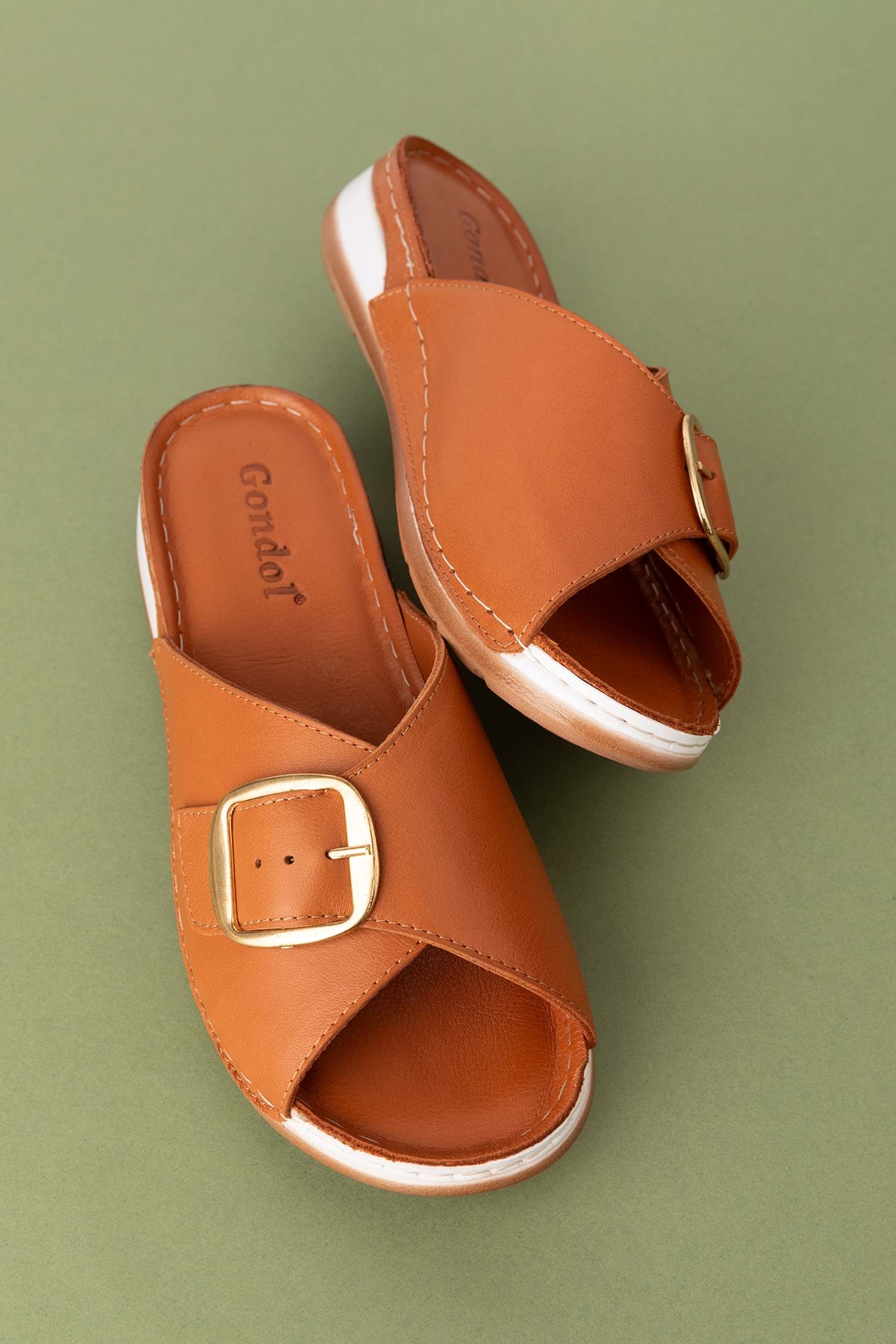 Gondol Kadın Hakiki Deri Anatomik Taban Terlik iz.4608 - Taba - 36