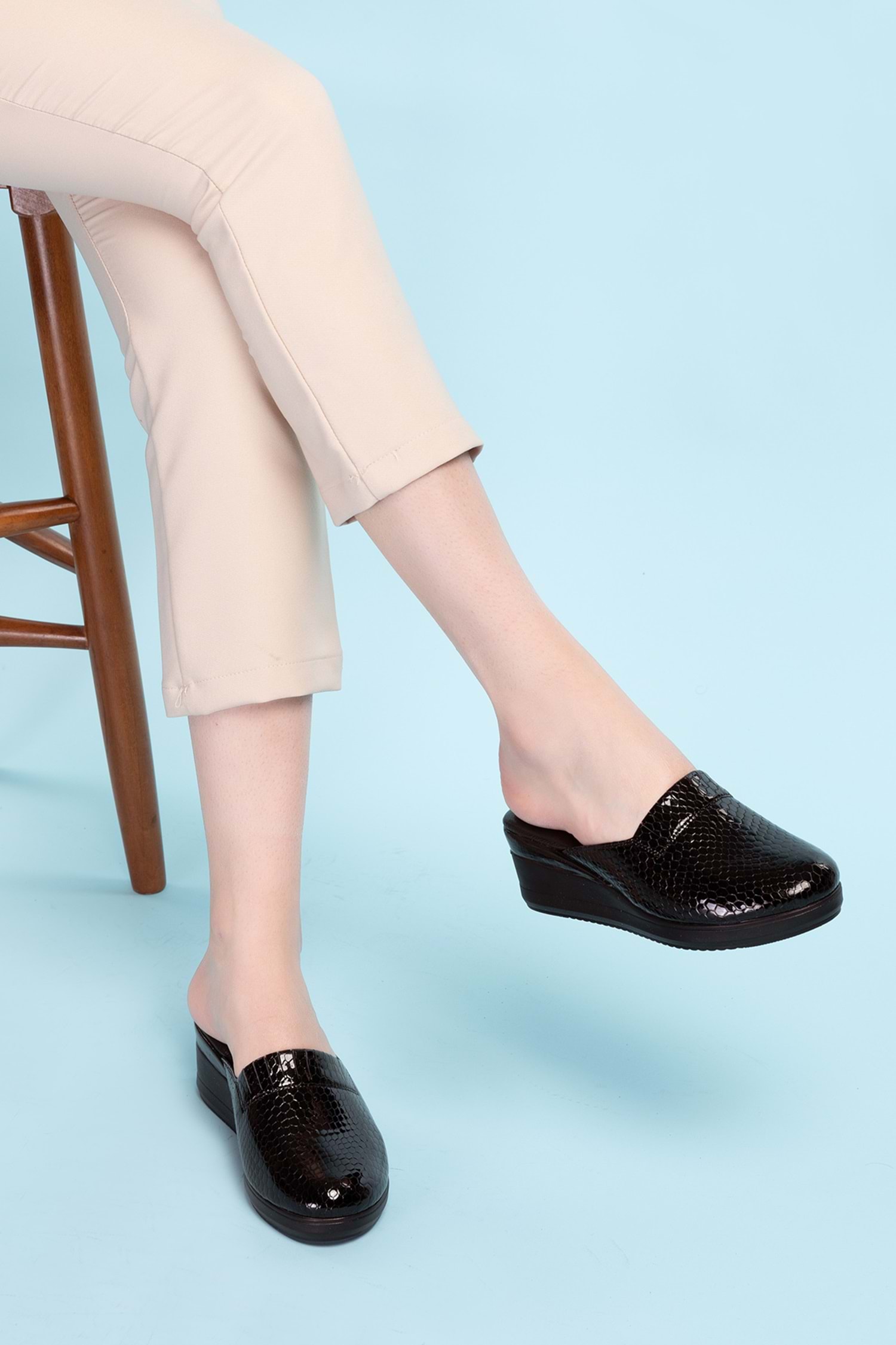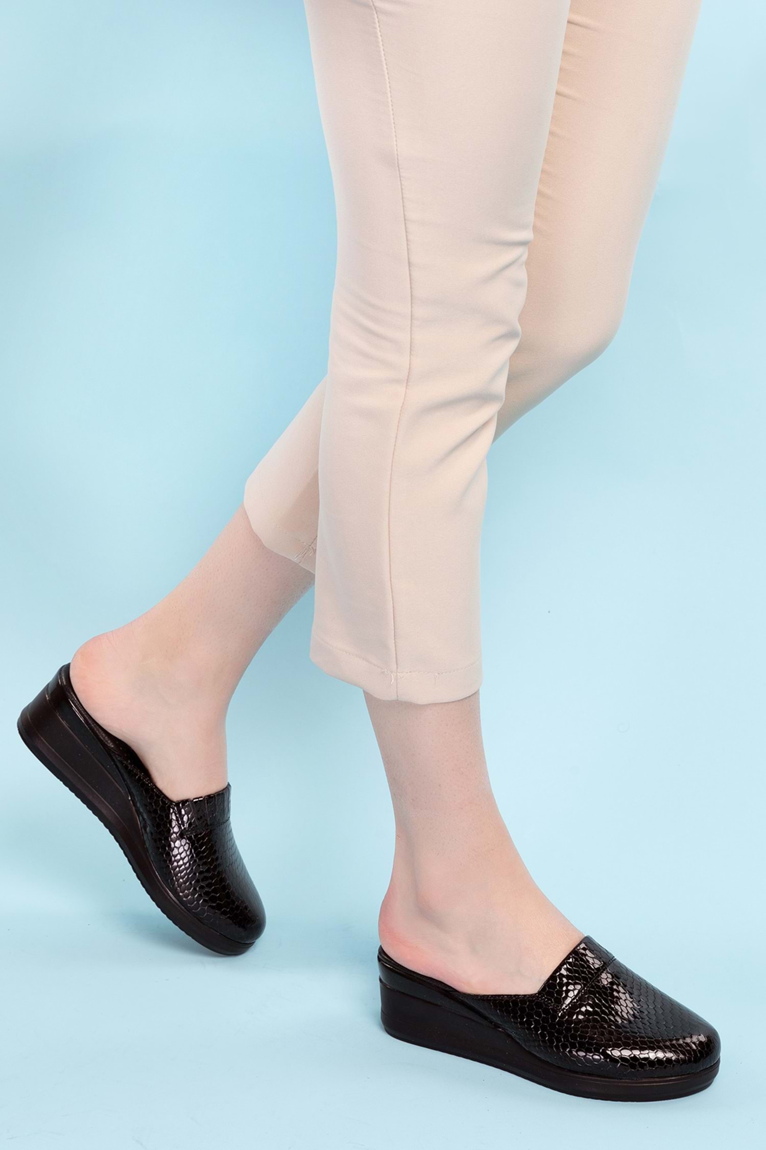 Gondol Kadın Hakiki Deri Dolgu Topuk Sabo Terlik özl.906YT - Siyah Petek - 41