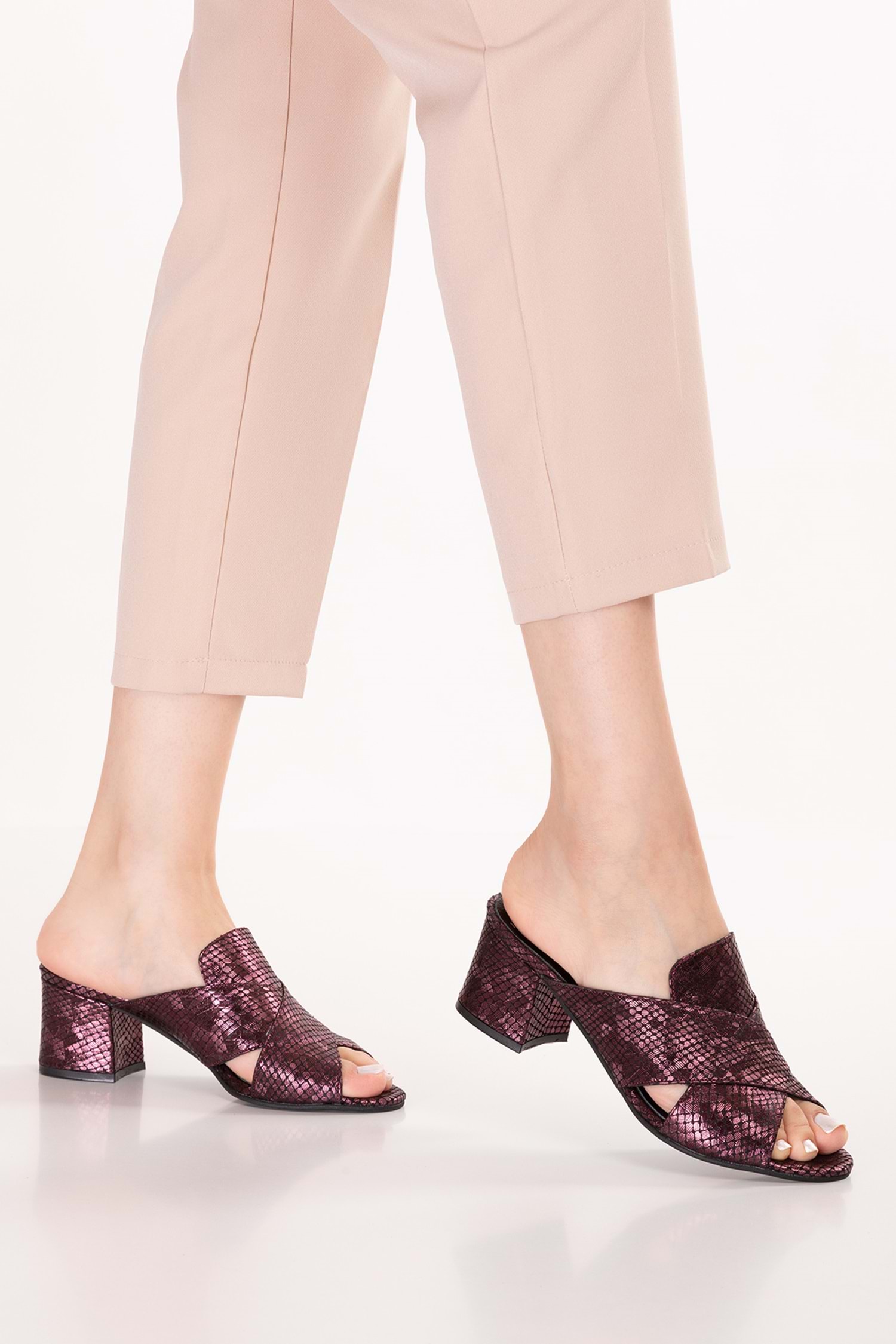 Gondol Kadın Hakiki Deri Orta Bot Topuklu Terlik şhn.1198 - Bordo - 37
