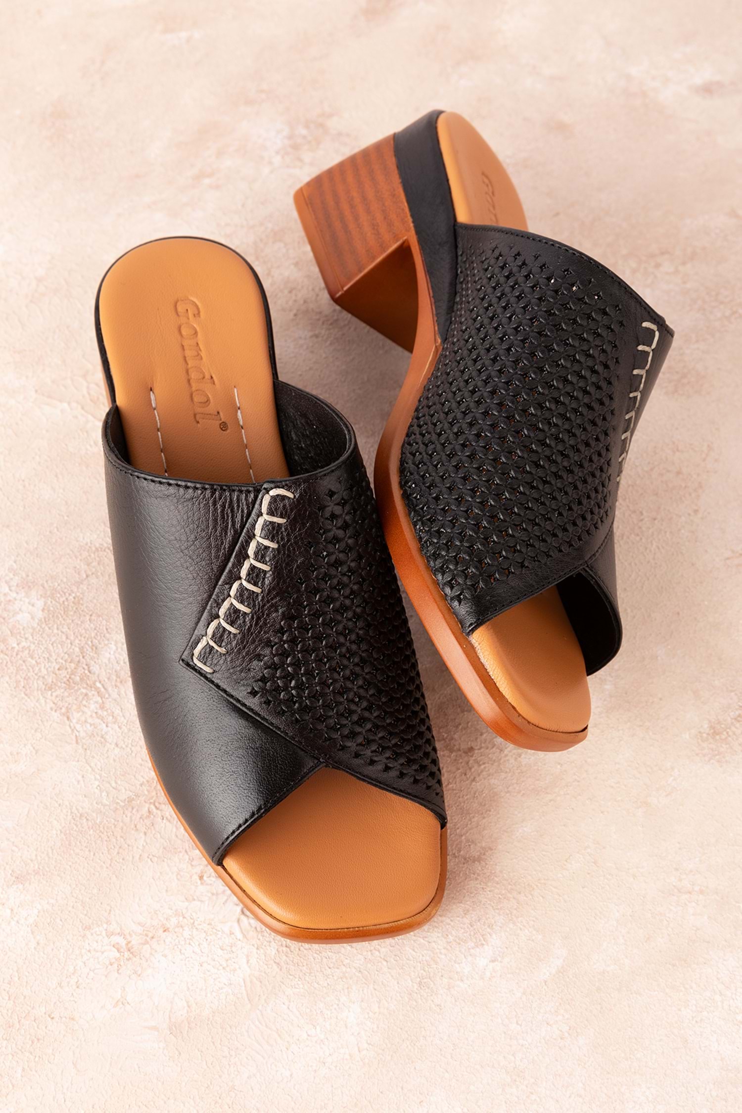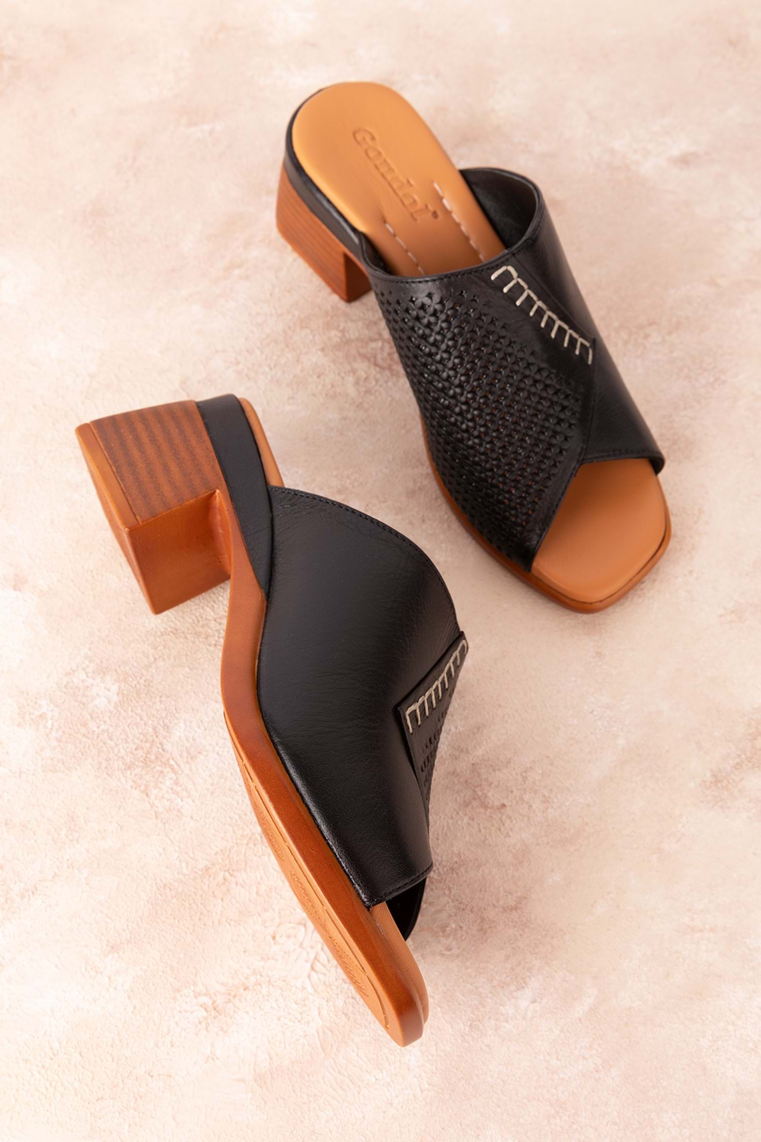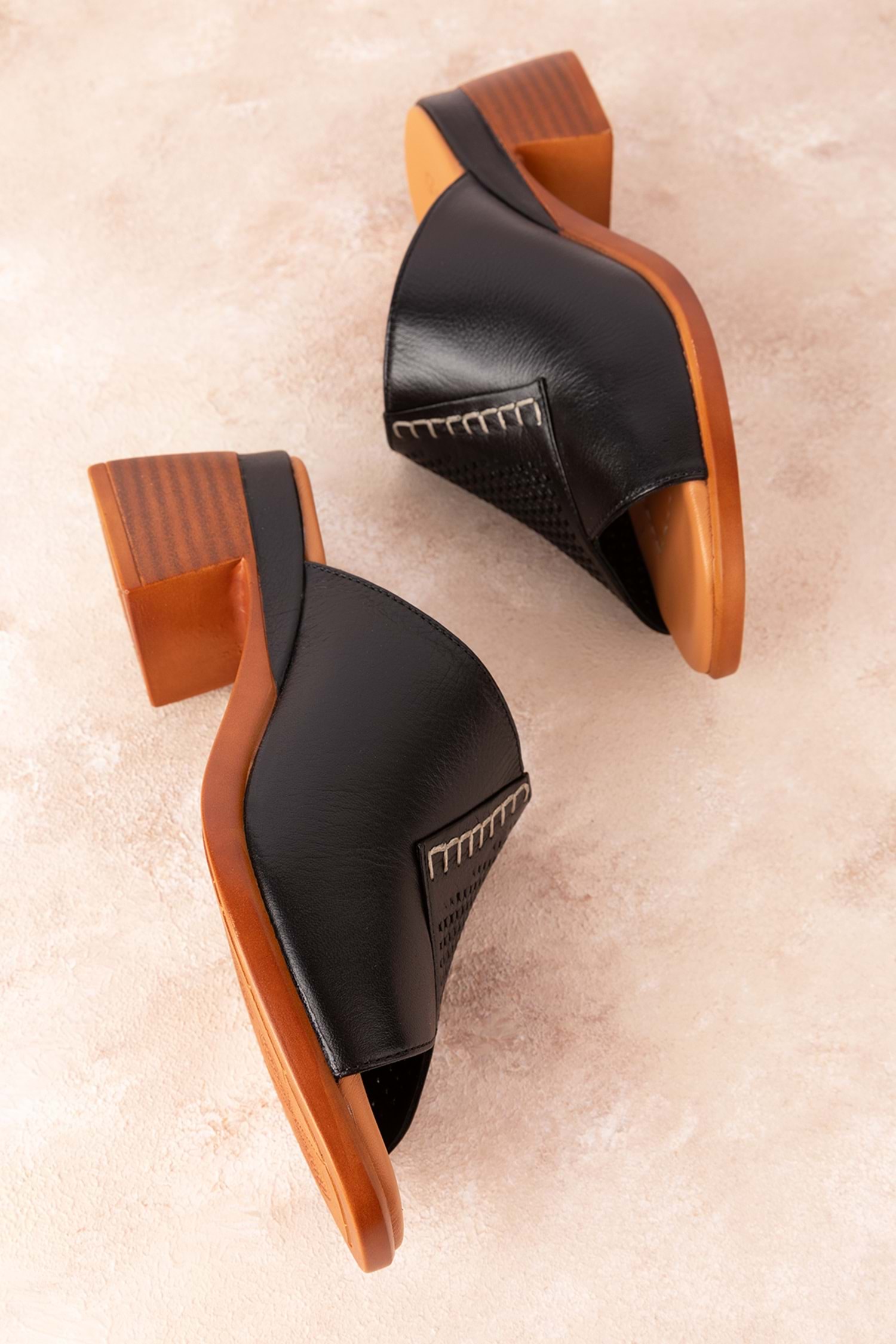 Gondol Kadın Hakiki Deri Orta Topuklu Günlük Şık Terlik iz.12113 - Siyah - 37