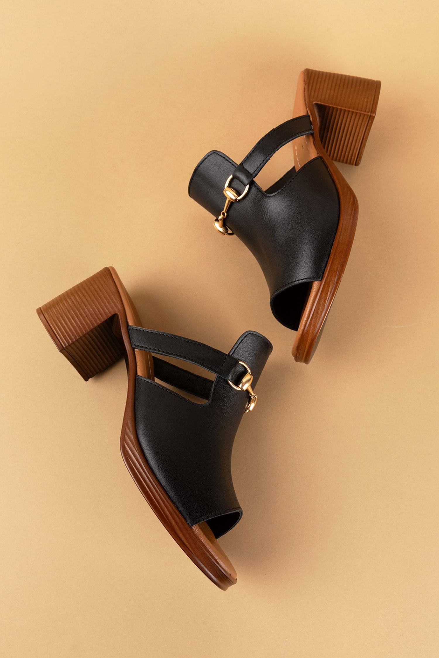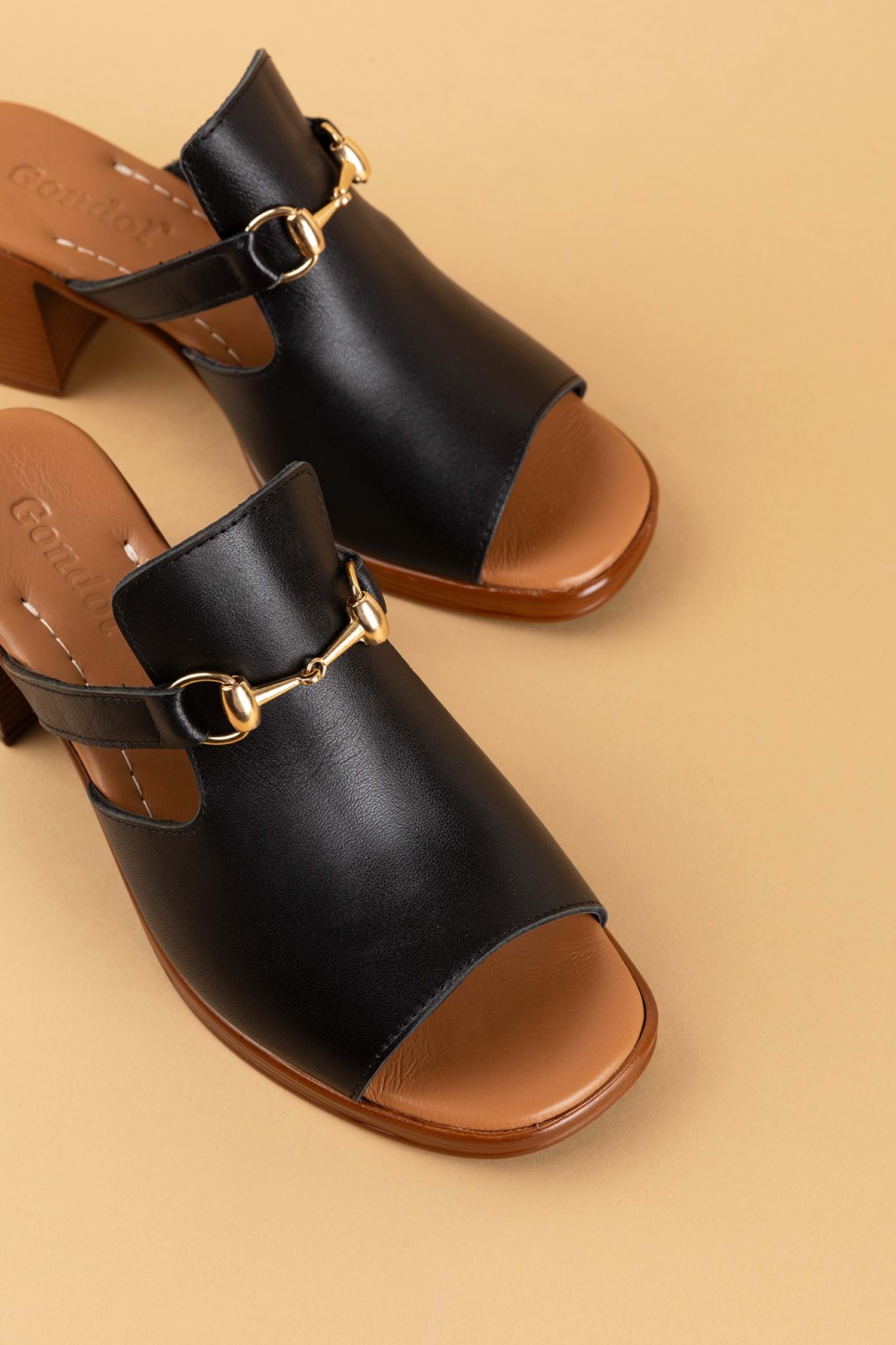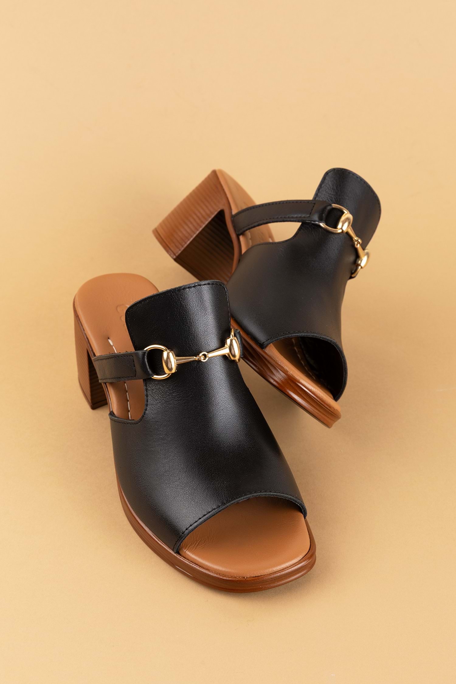 Gondol Kadın Hakiki Deri Orta Topuklu Günlük Şık Terlik iz.1308 - Siyah - 36