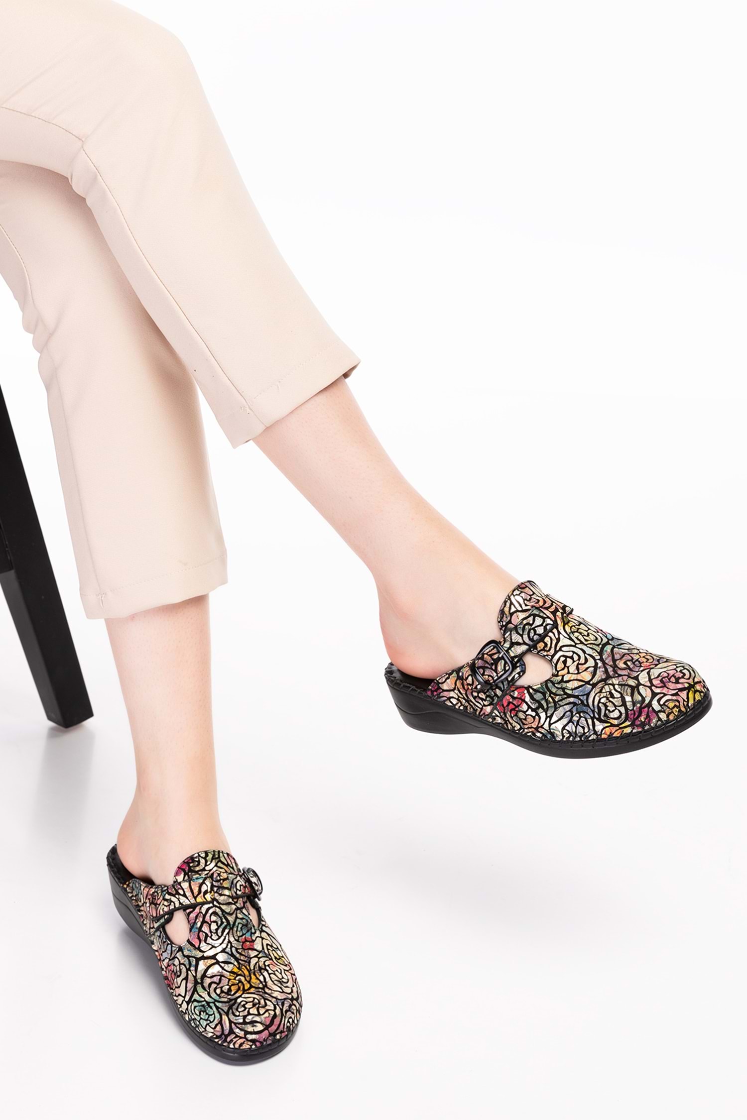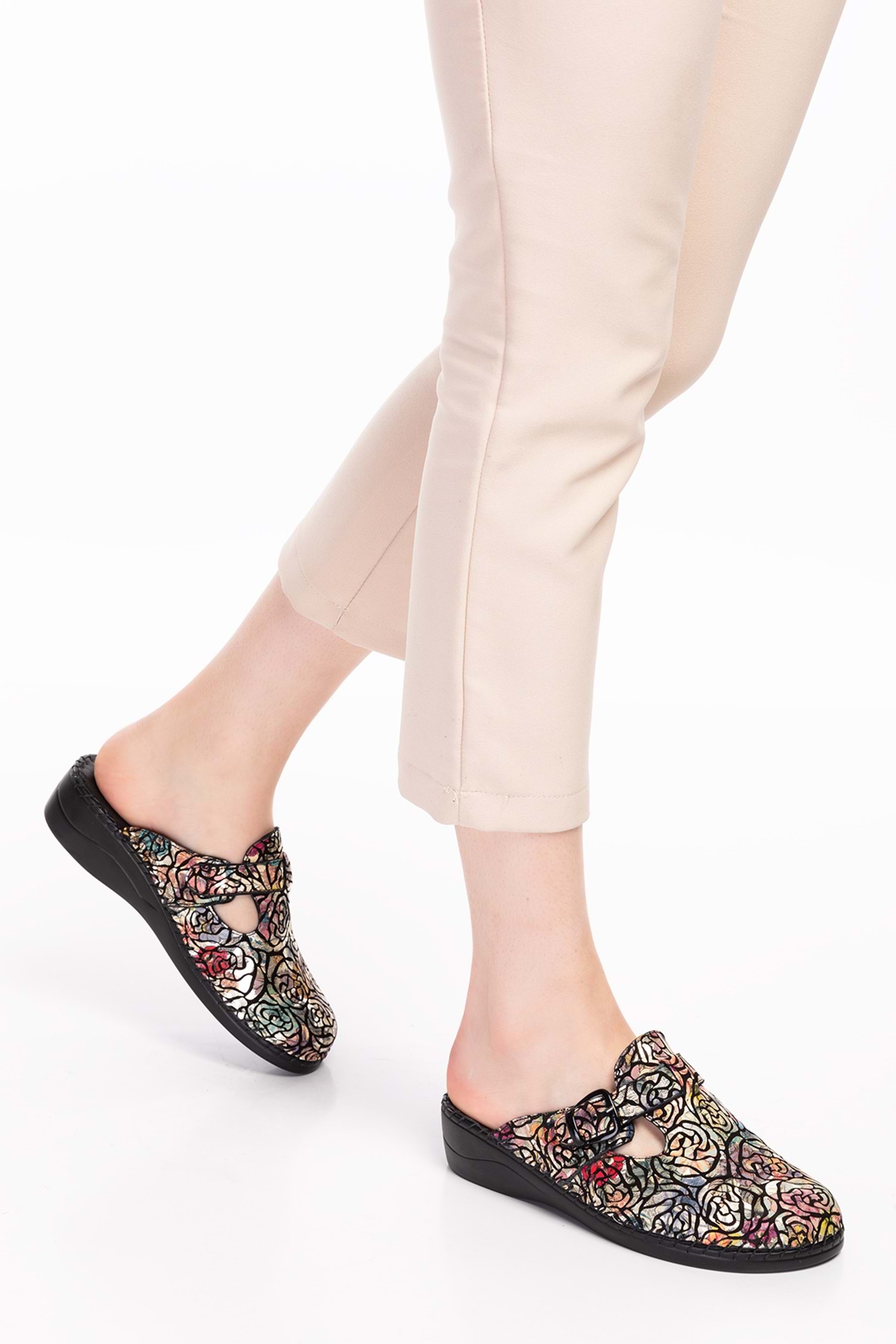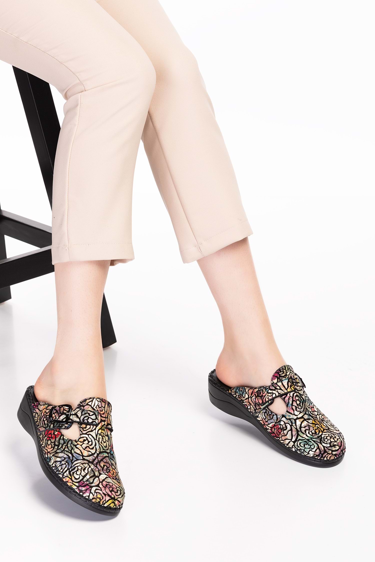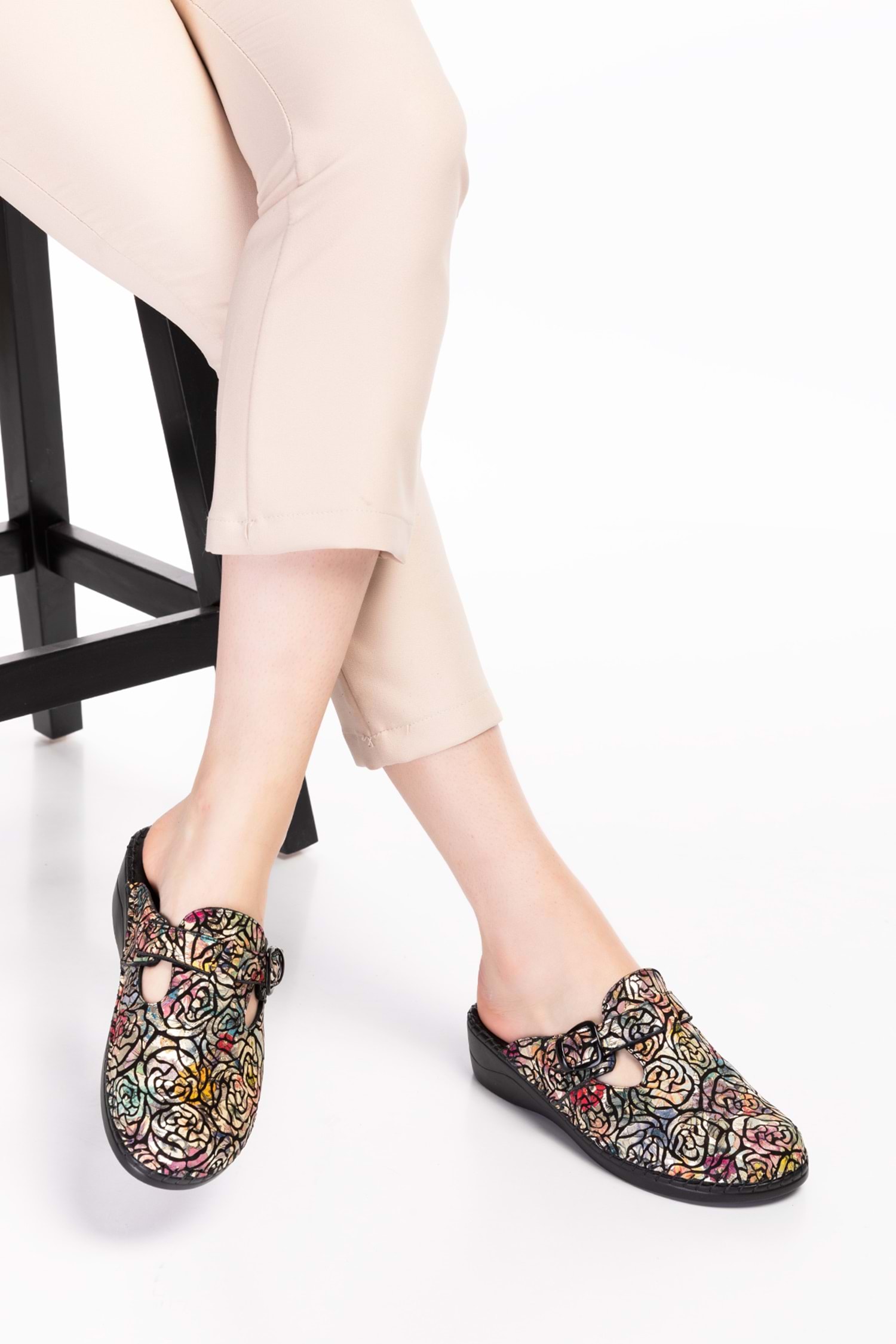 Gondol Kadın Hakiki Deri Ortopedik Sabo Terlik yprk.707 - Siyah Desen - 40