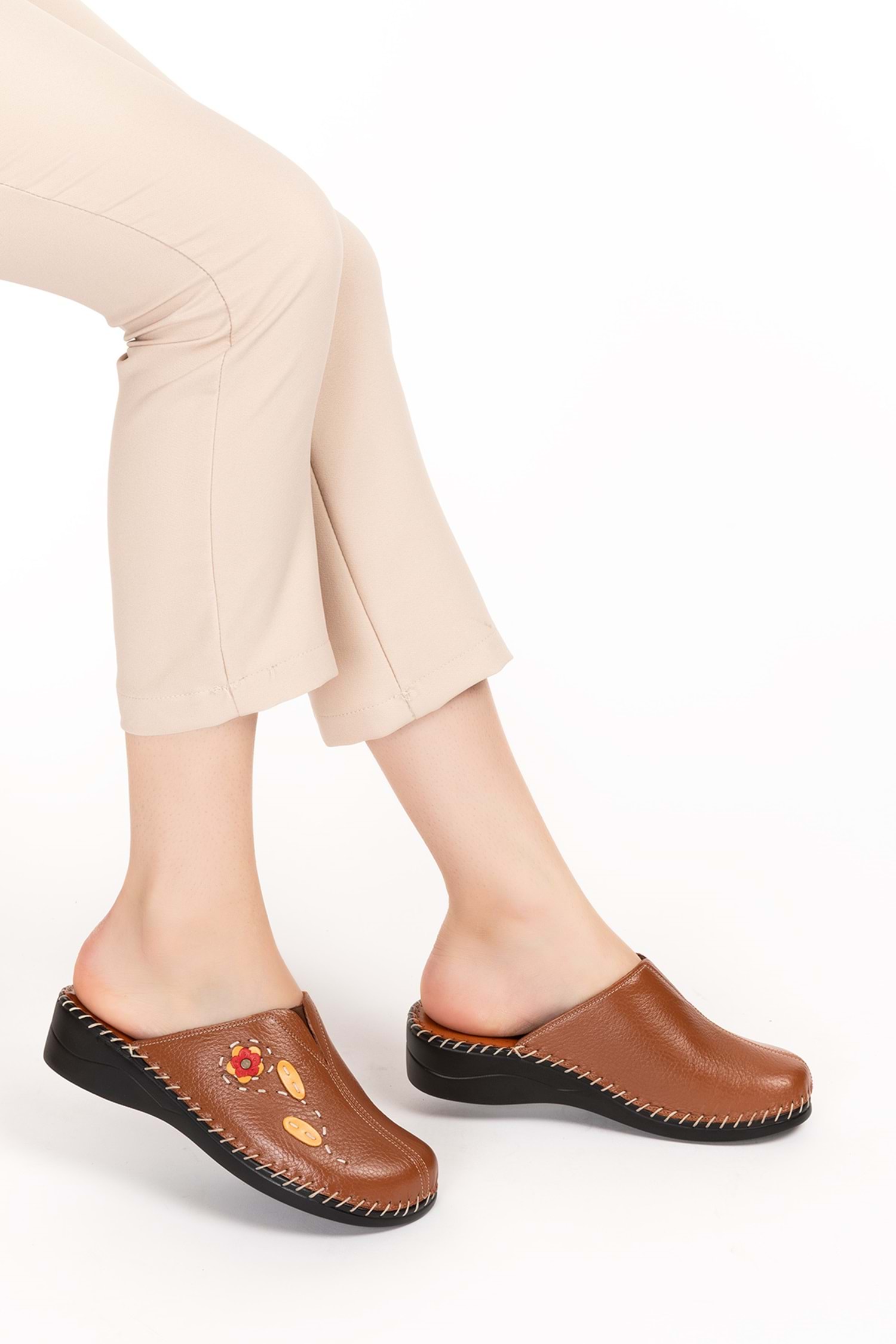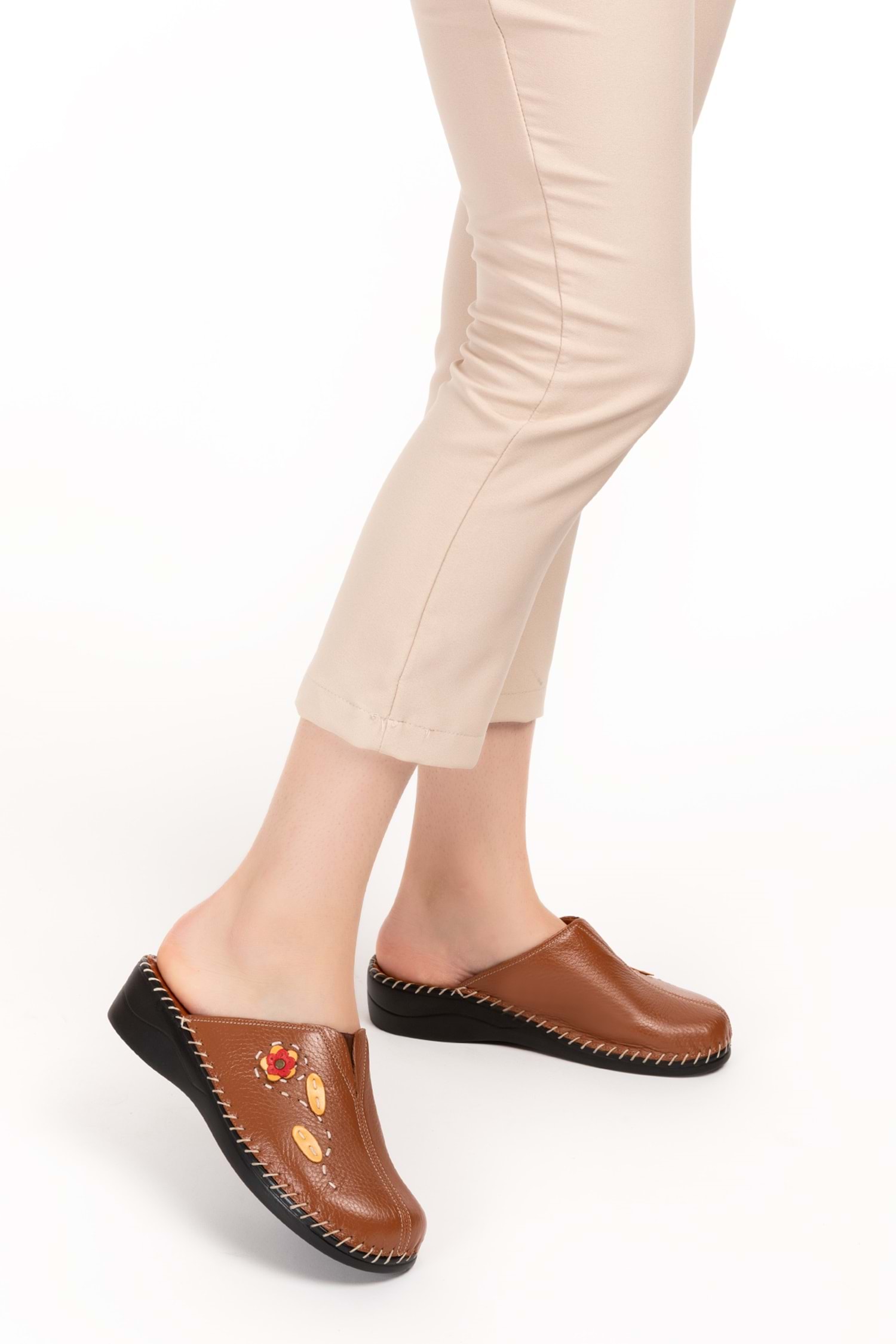 Gondol Kadın Hakiki Deri Ortopedik Sabo Terlik yprk.811 - Taba - 36