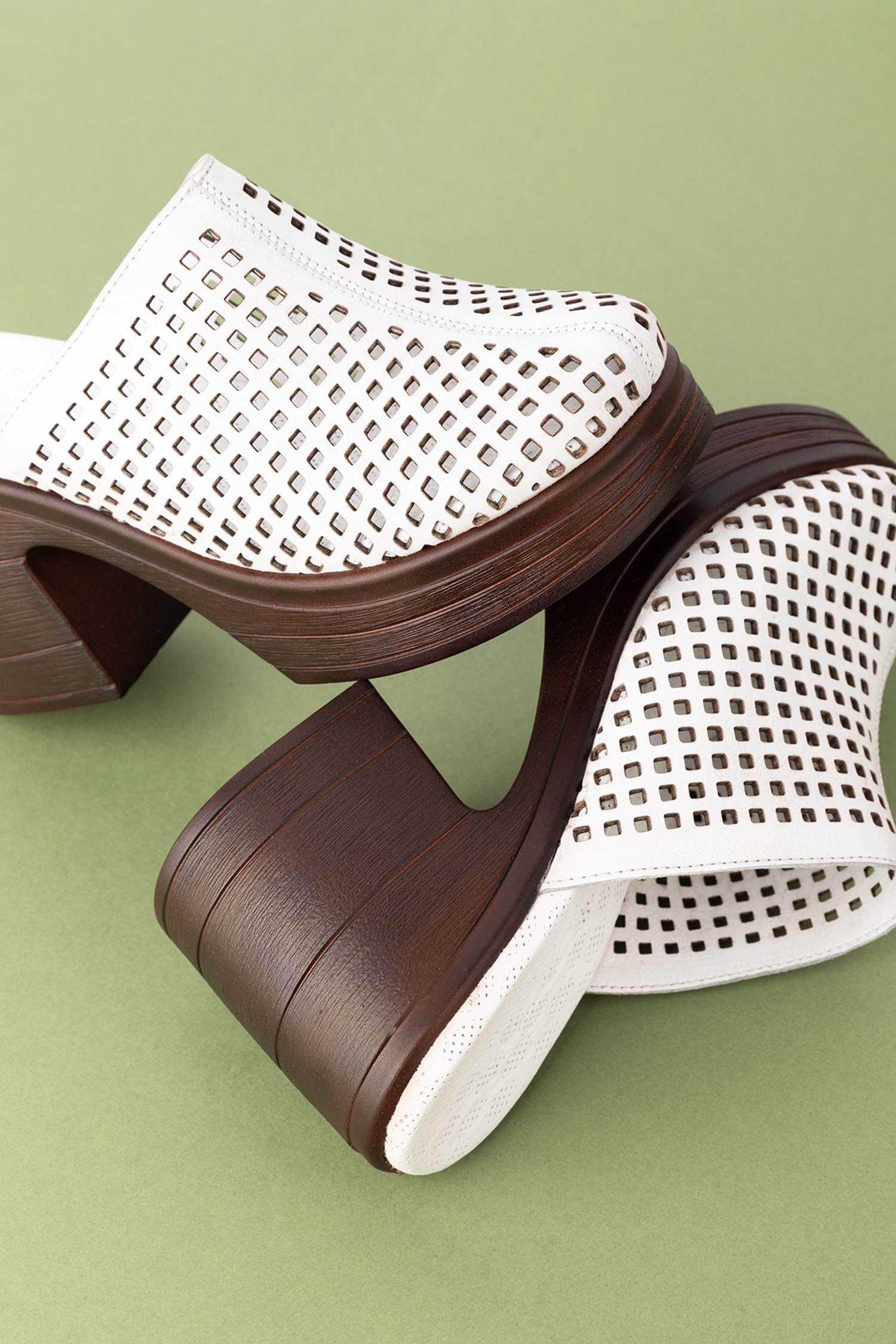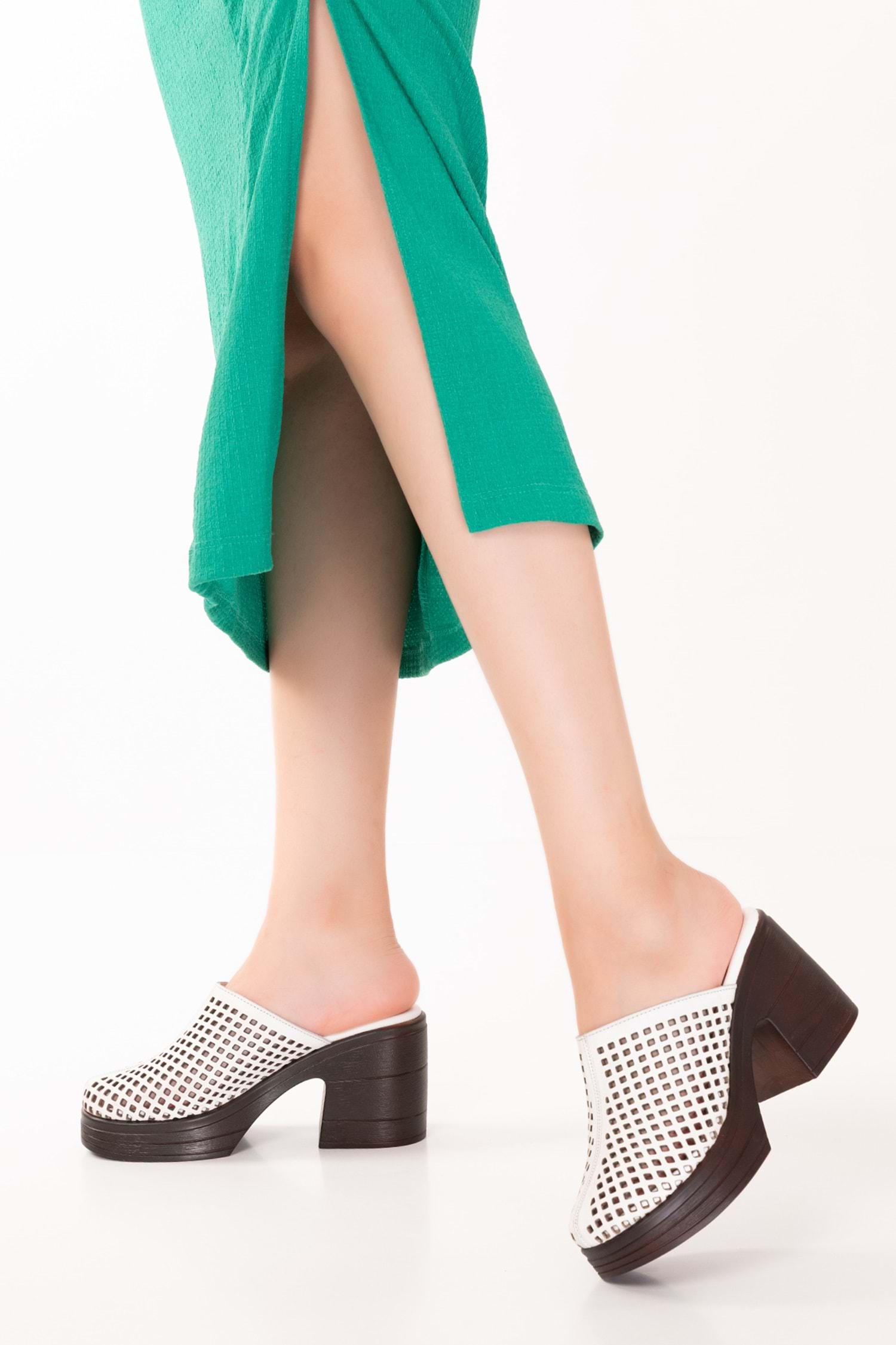 * Hakiki Deri * Standart Kalıp * Topuk Boyu 9 cm * Platform 3 cm *Lazerli Şık Tasarım